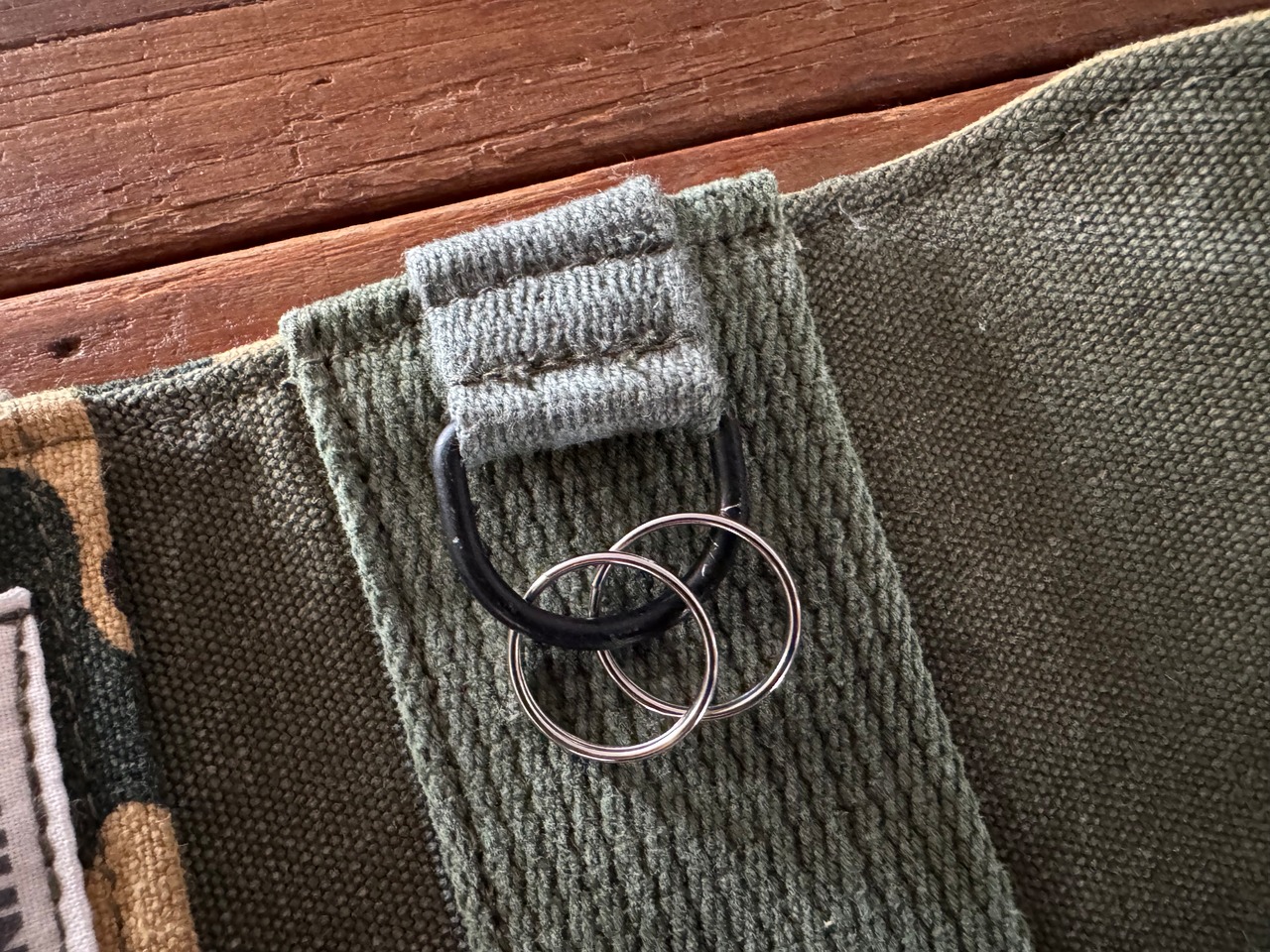 内側中央のキャンバステープも、裏地と同じくアメリカ軍のダッフルバッグから。