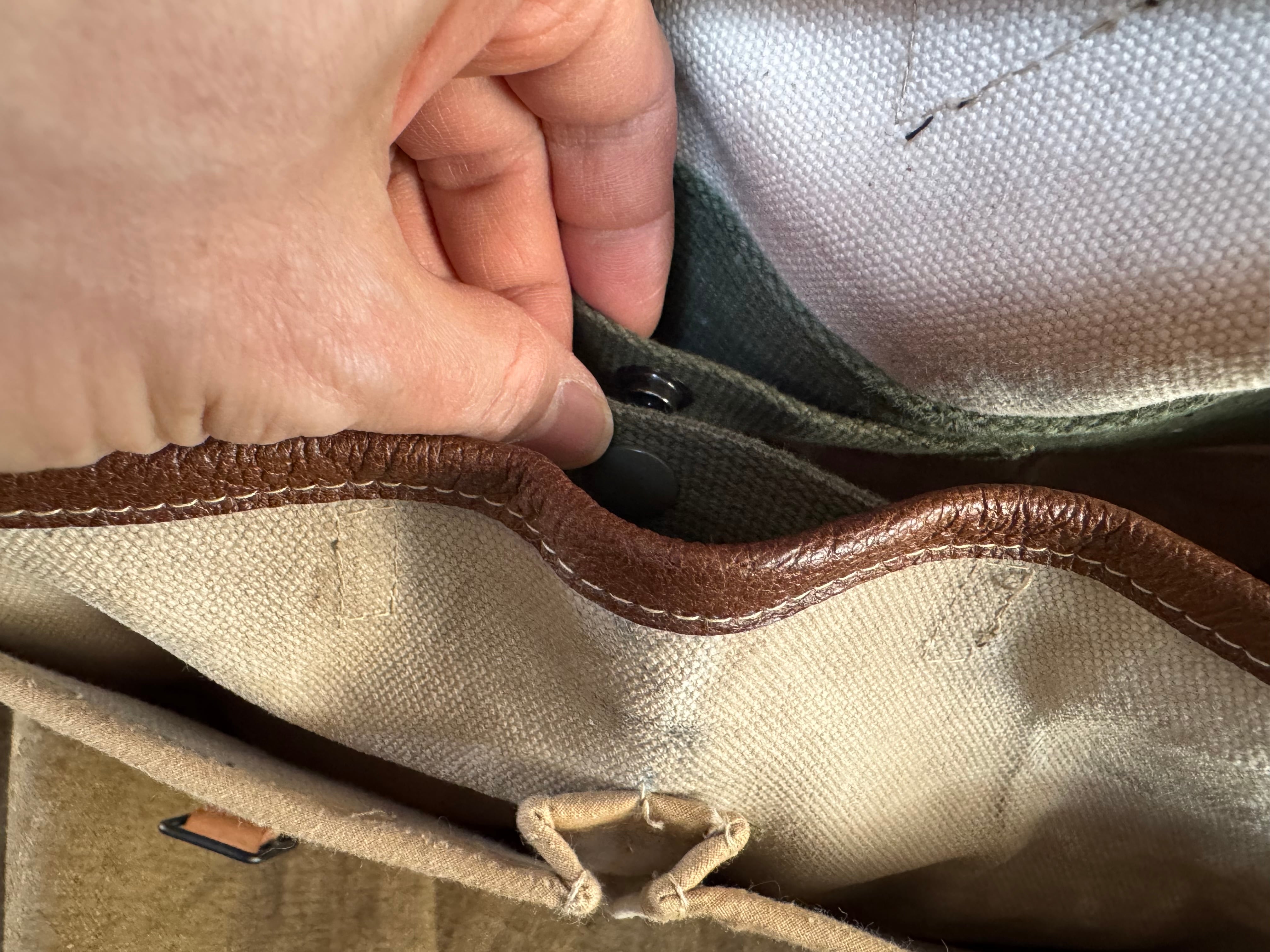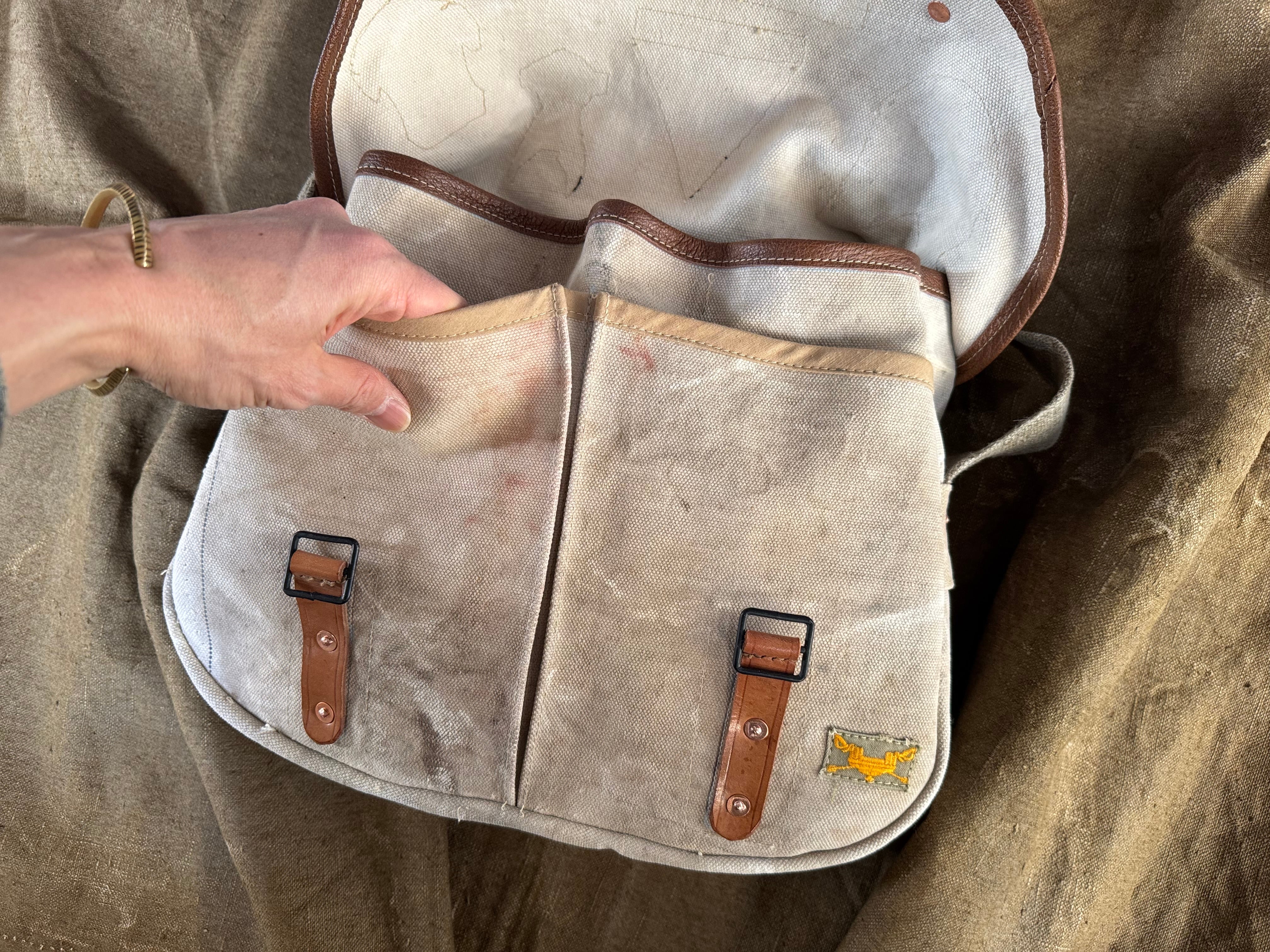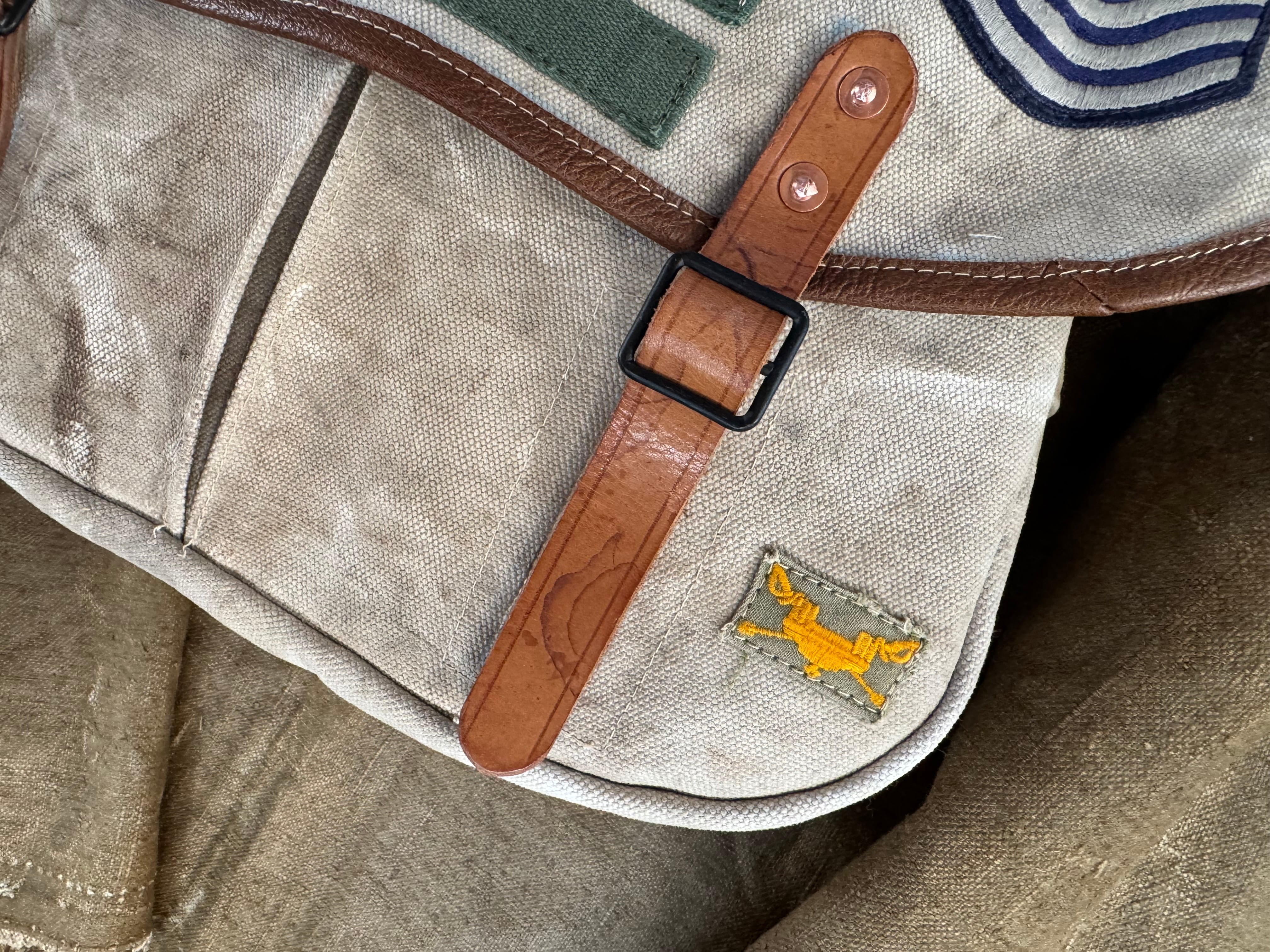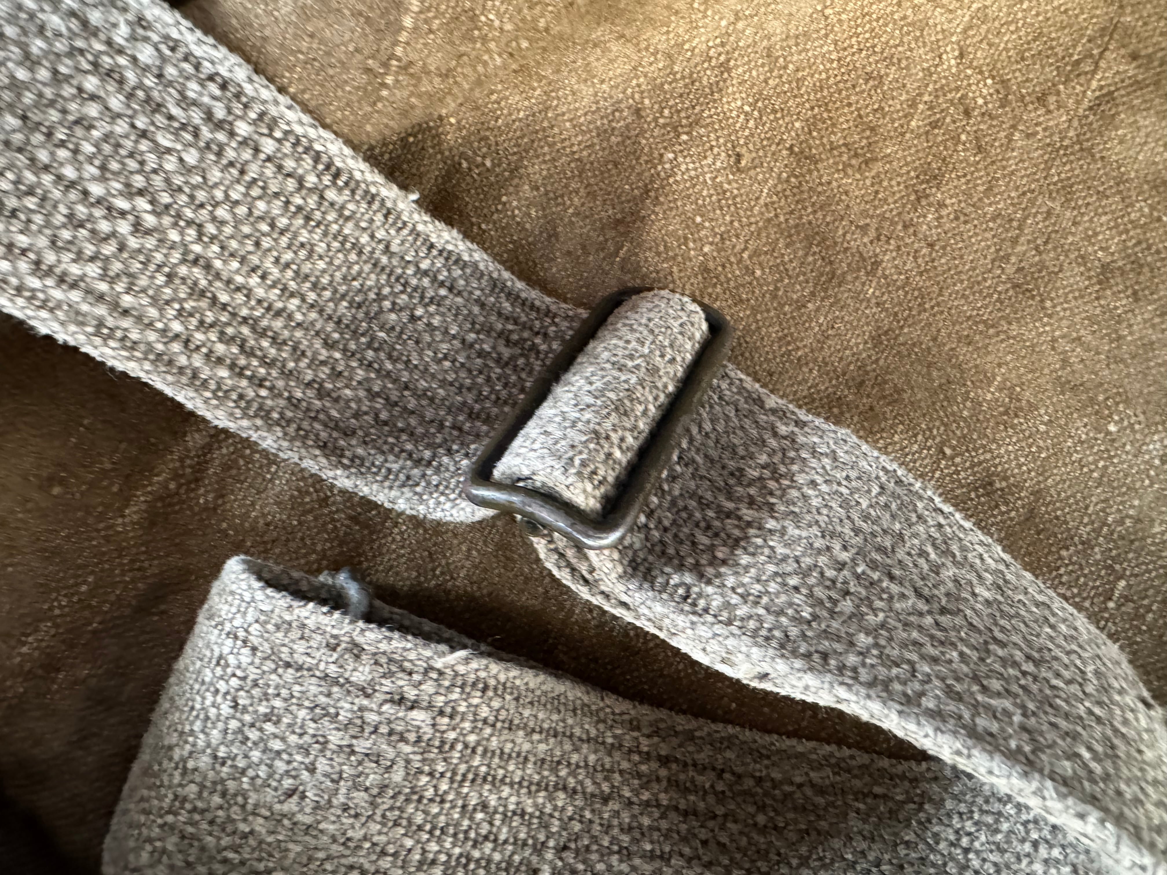 ショルダーベルトには、1950年代にフランス軍のダッフルバッグで採用されていた、かなり色が抜けて味のあるキャンバステープを使用しています。