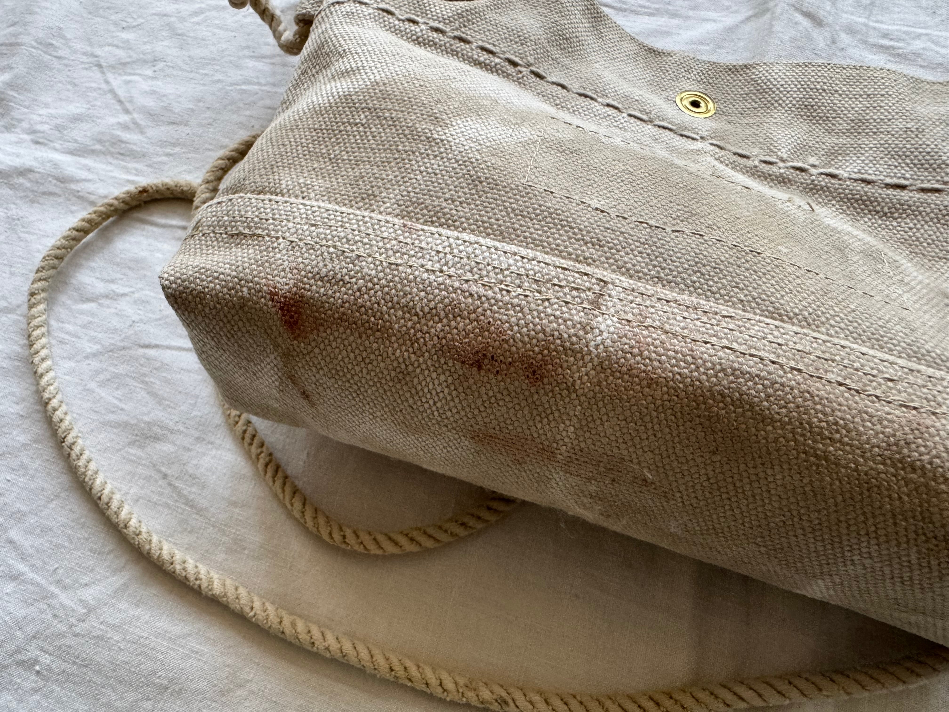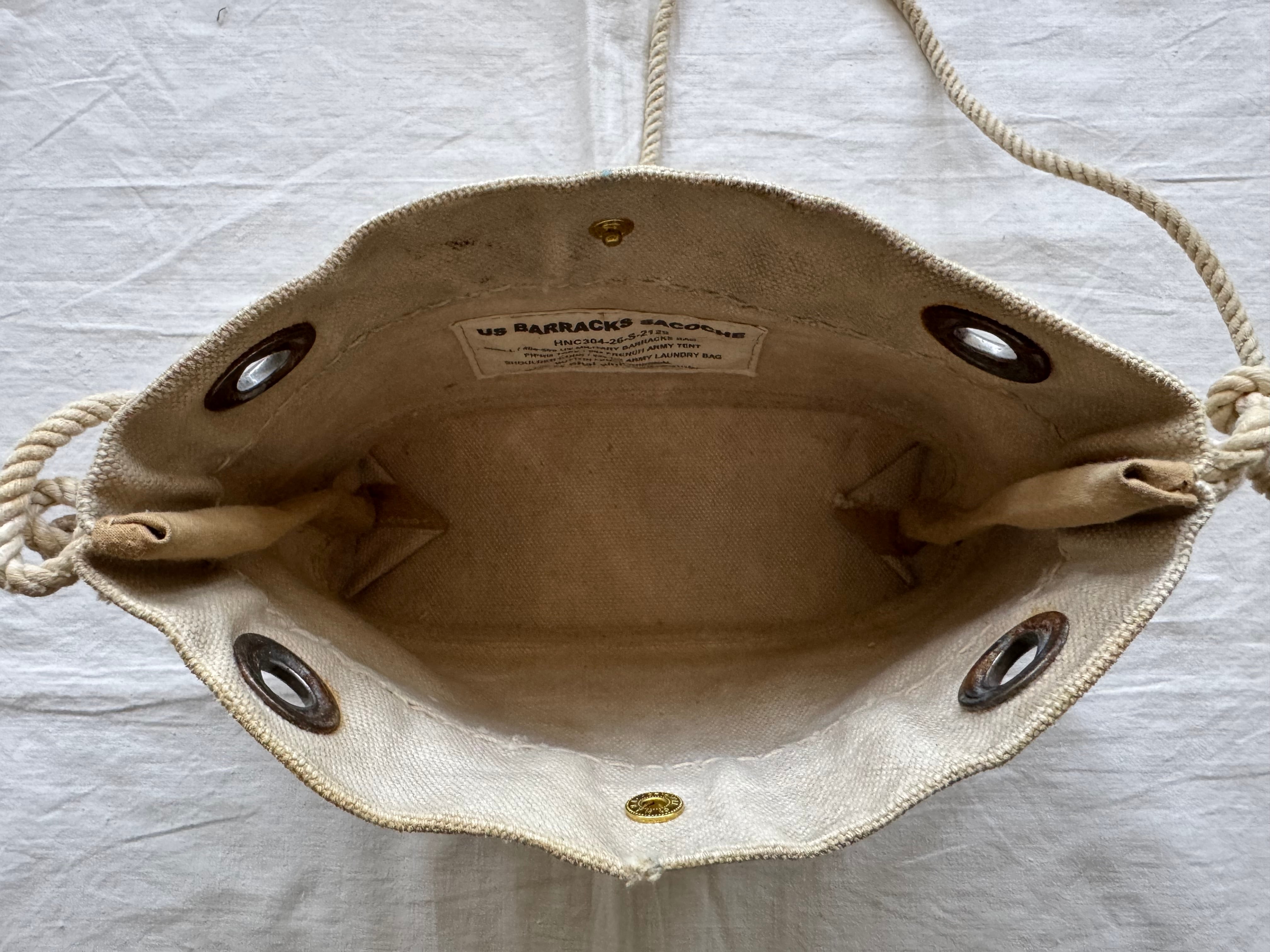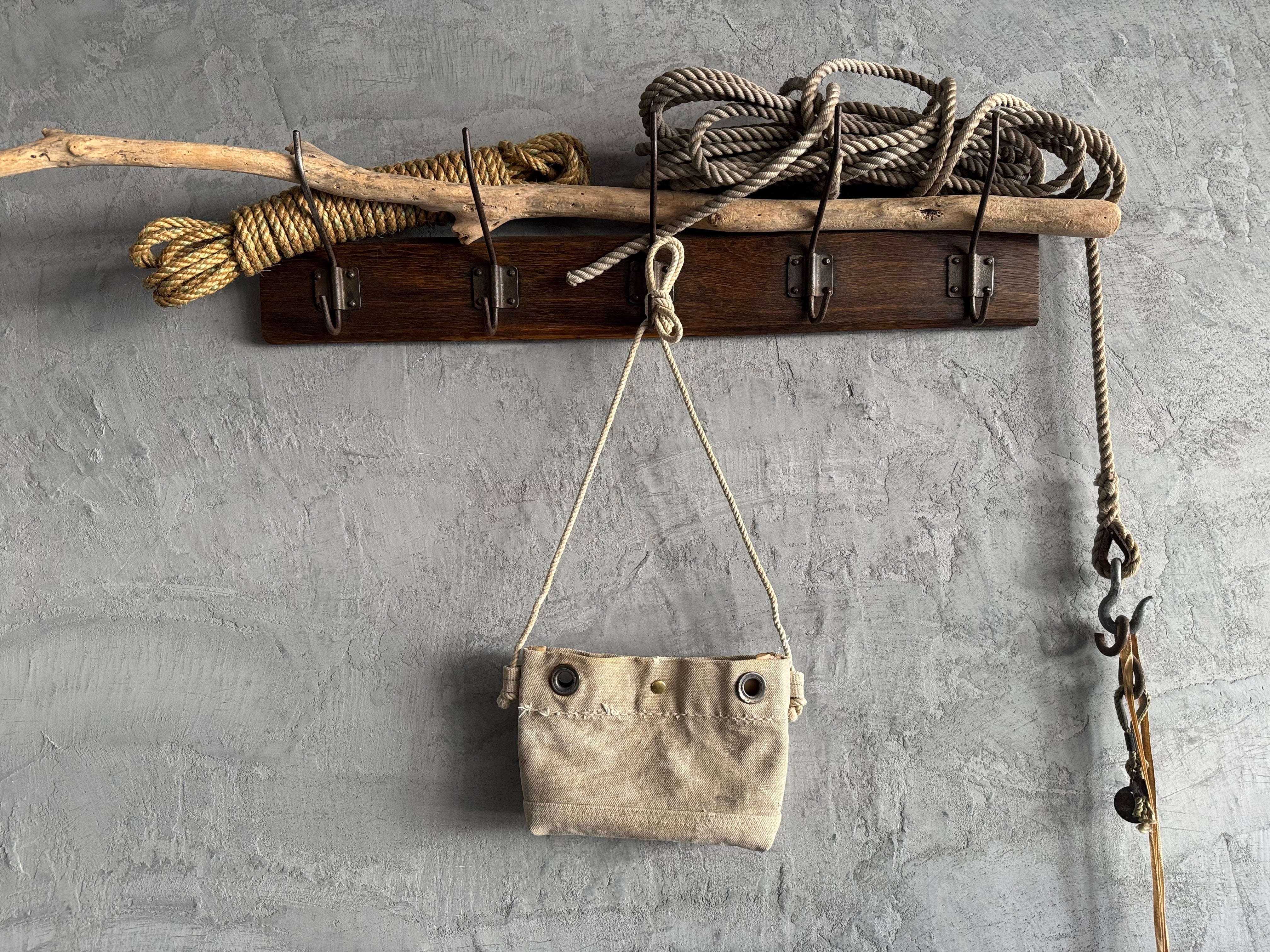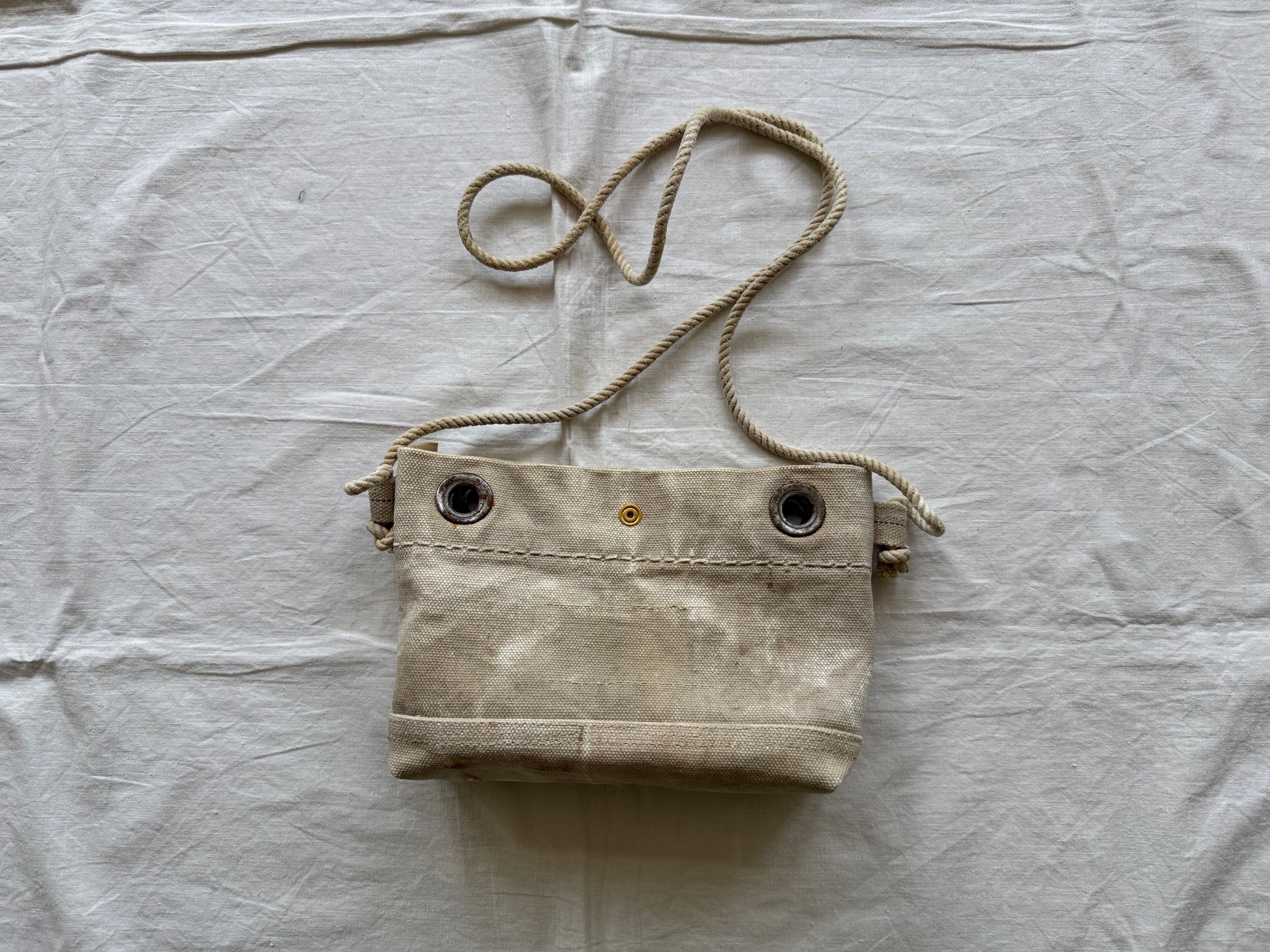 ショルダーの紐はUS ARMYの40年代頃のランドリーバッグから。結び目をつくることでショルダーの長さを調節できます。