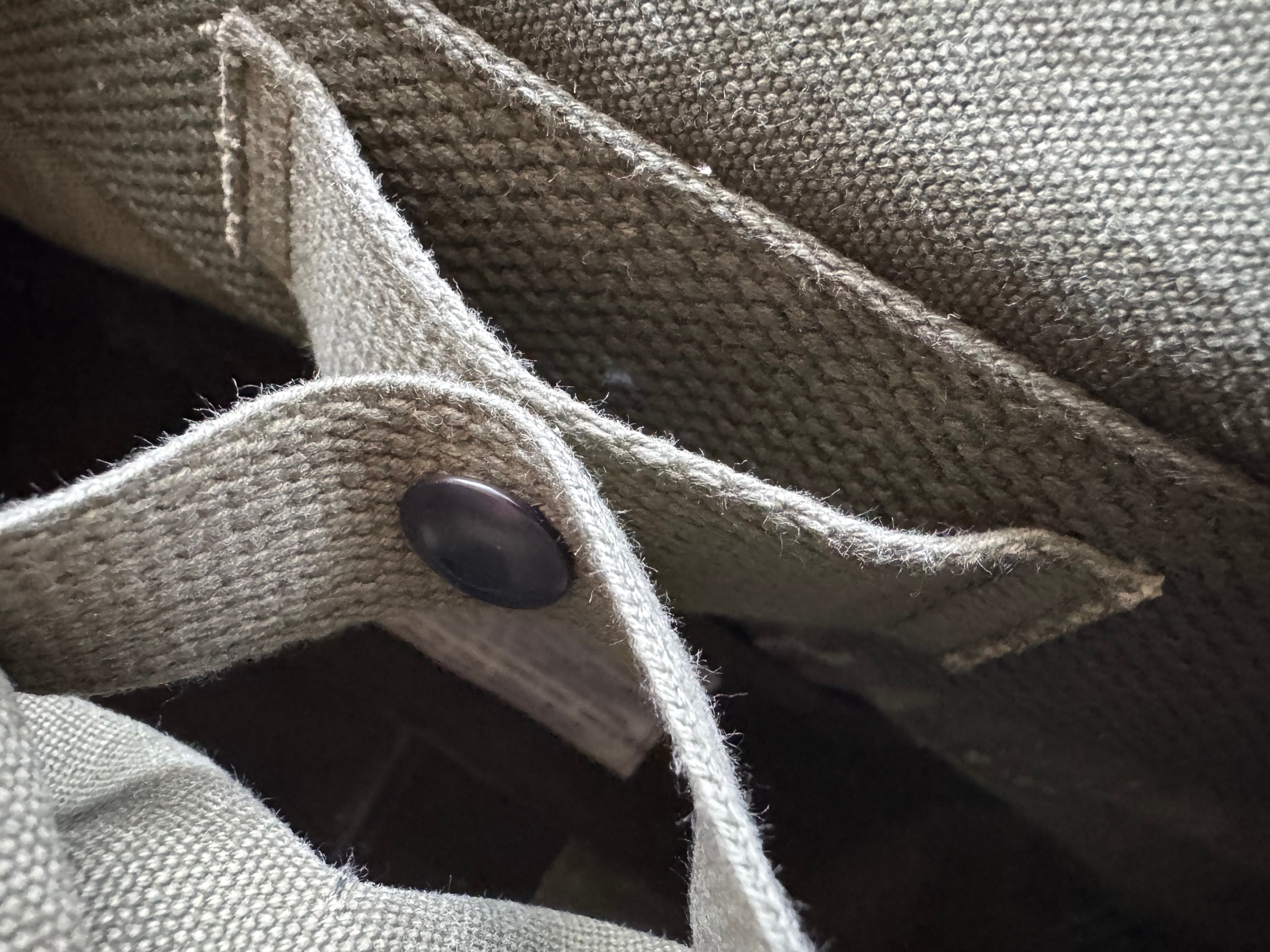 ショルダーベルトのアジャスターはフランス軍のダッフルバッグ。