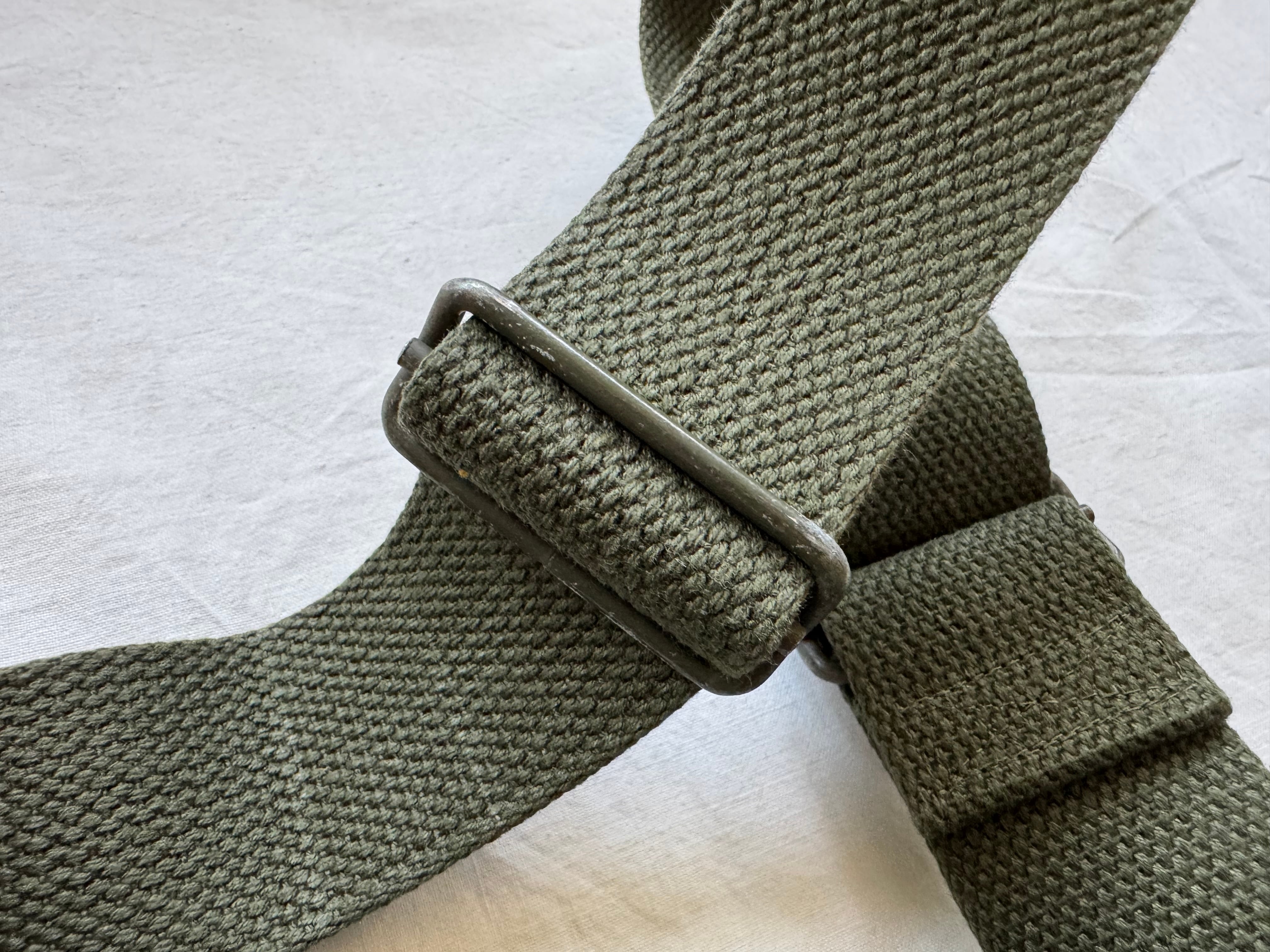 ショルダーベルトには、1950年代にアメリカ軍へ納入されながらも未使用のままロールで残っていたキャンバステープを使用しています。