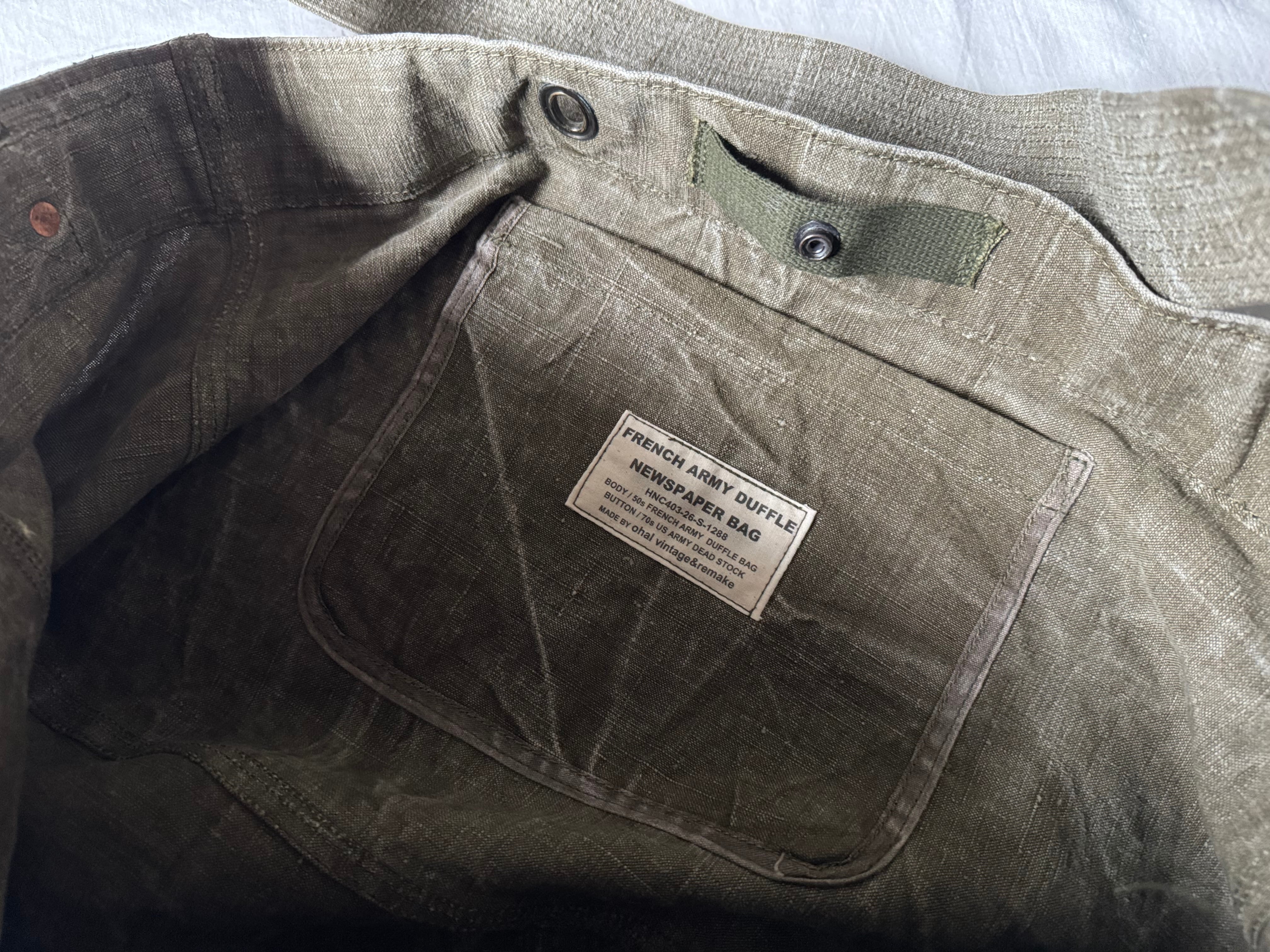 ohal / 50s FRENCH ARMY LINEN DUFFLE NEWSPAPER BAG
