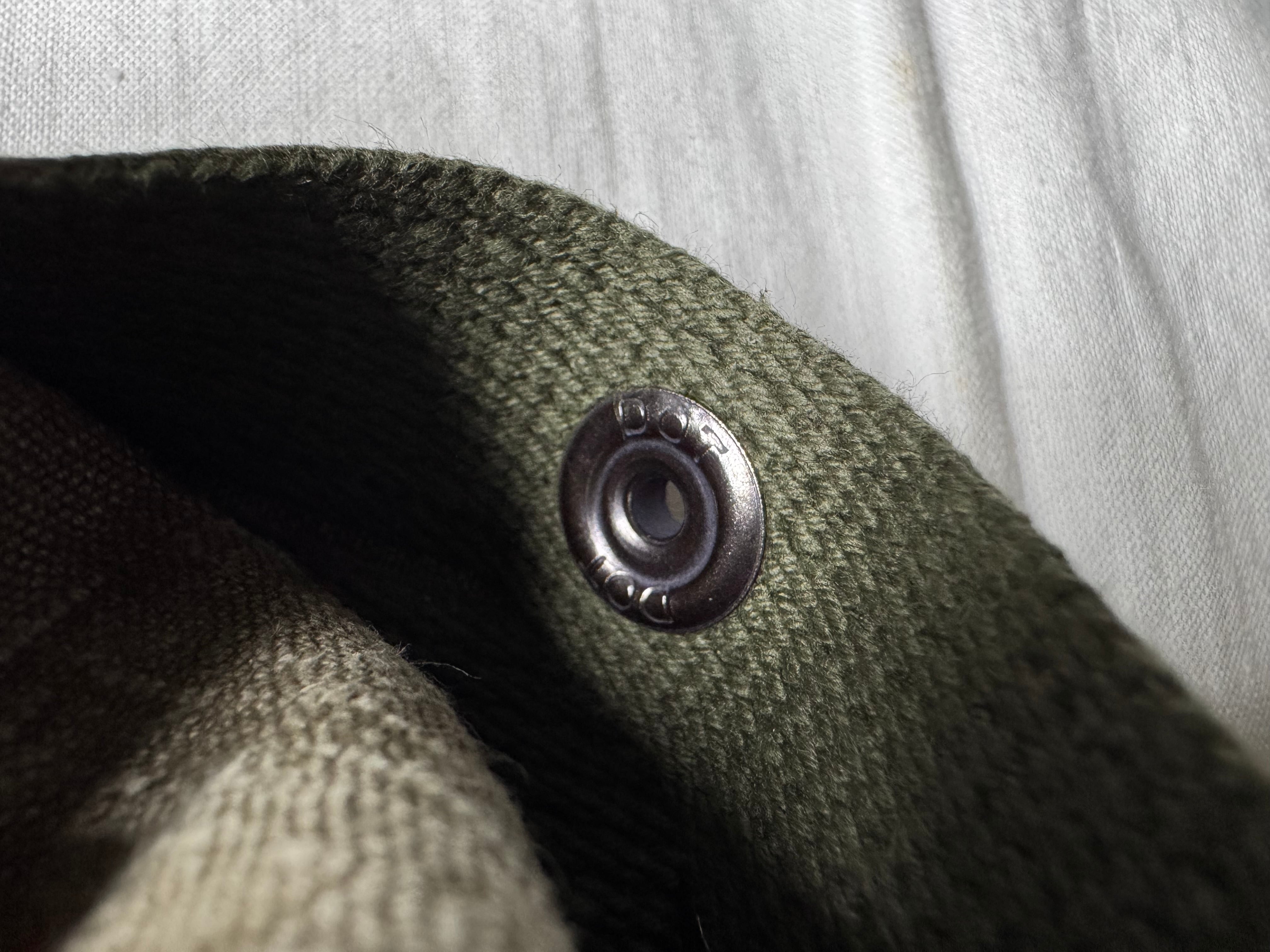 開口部のスナップには、70年代・SCOVILL社が米軍に納入したデッドストックDOTボタン を採用。小さなパーツながら、玄人心をくすぐるヴィンテージらしいアクセントです。