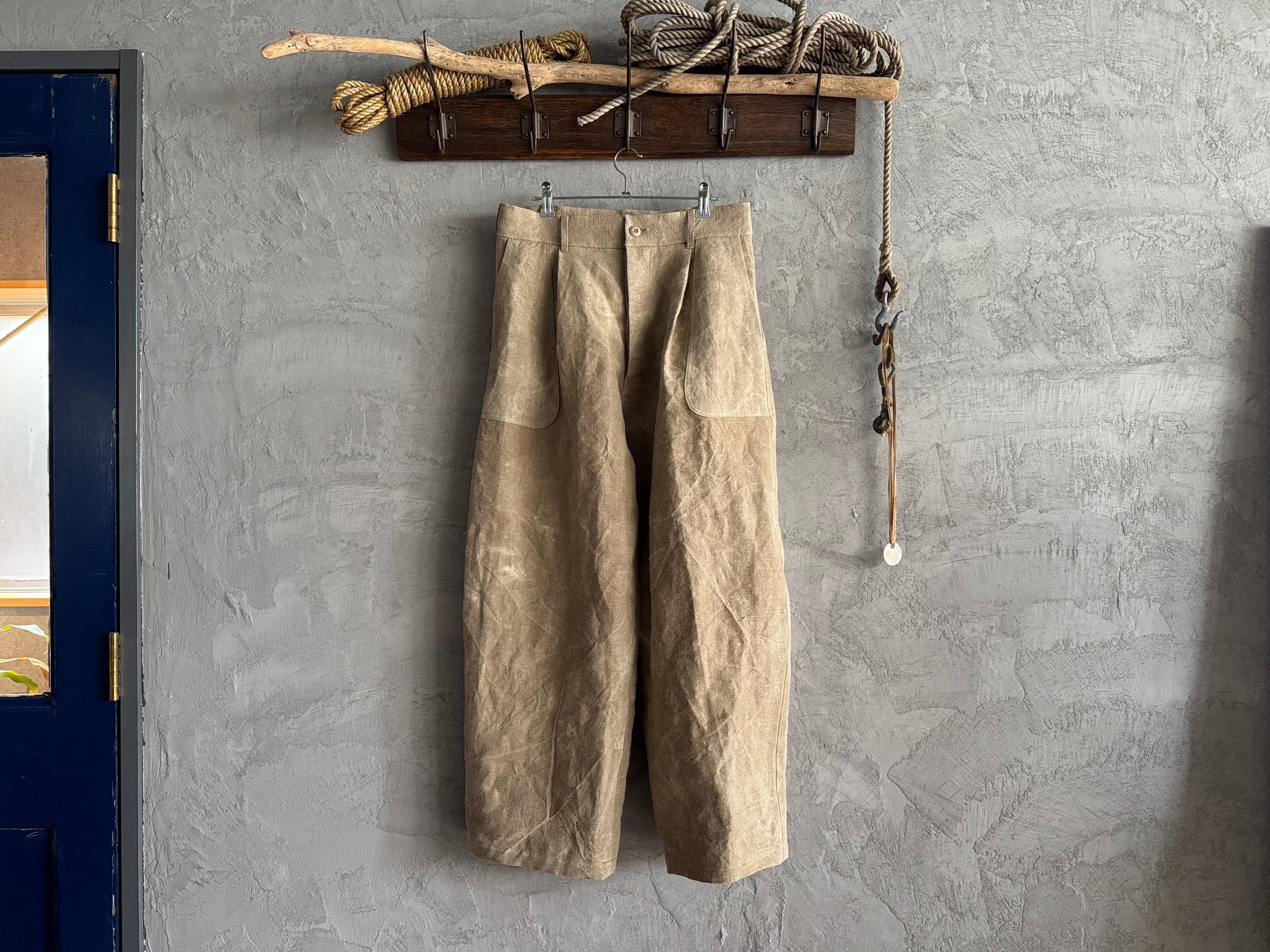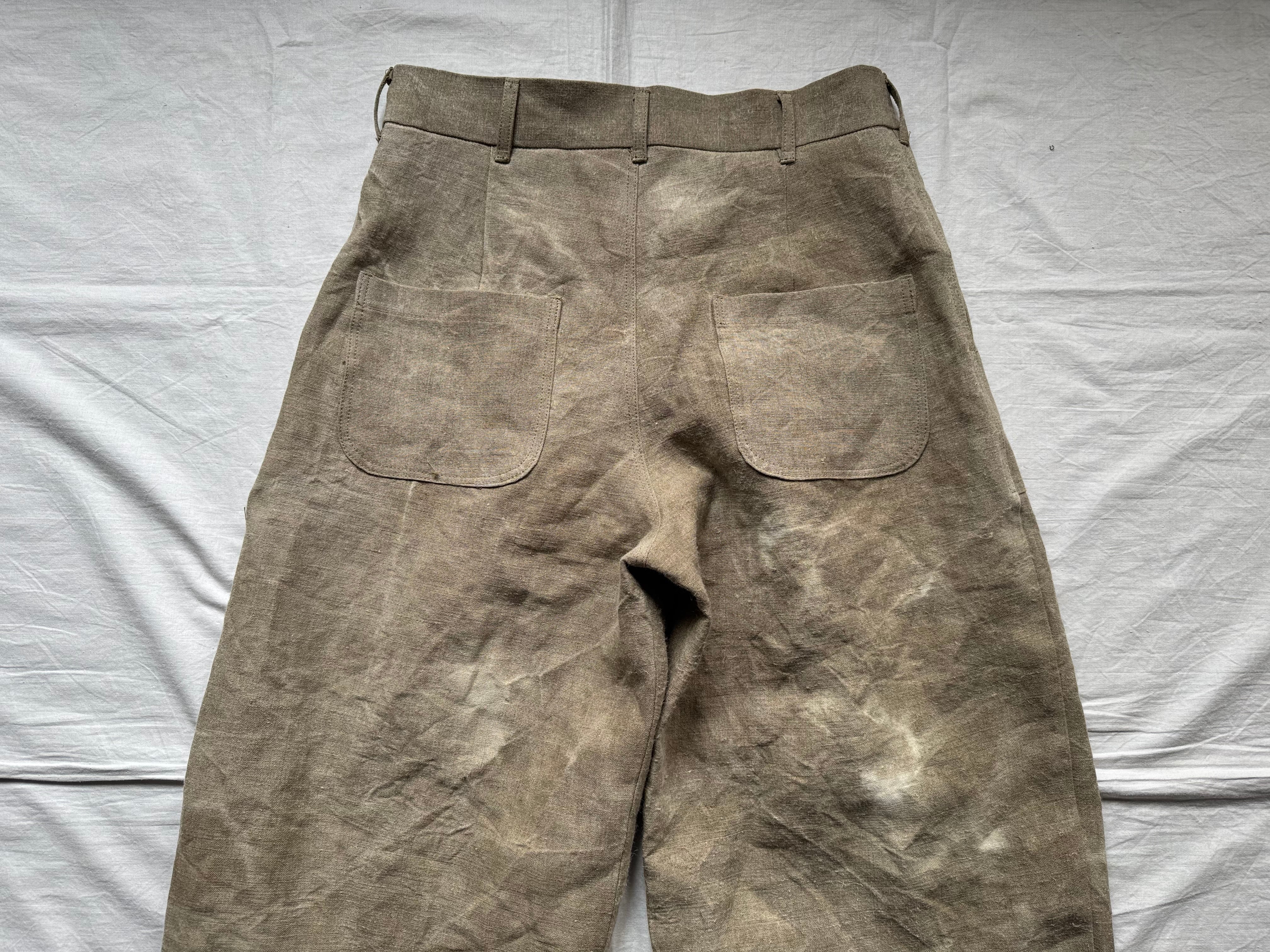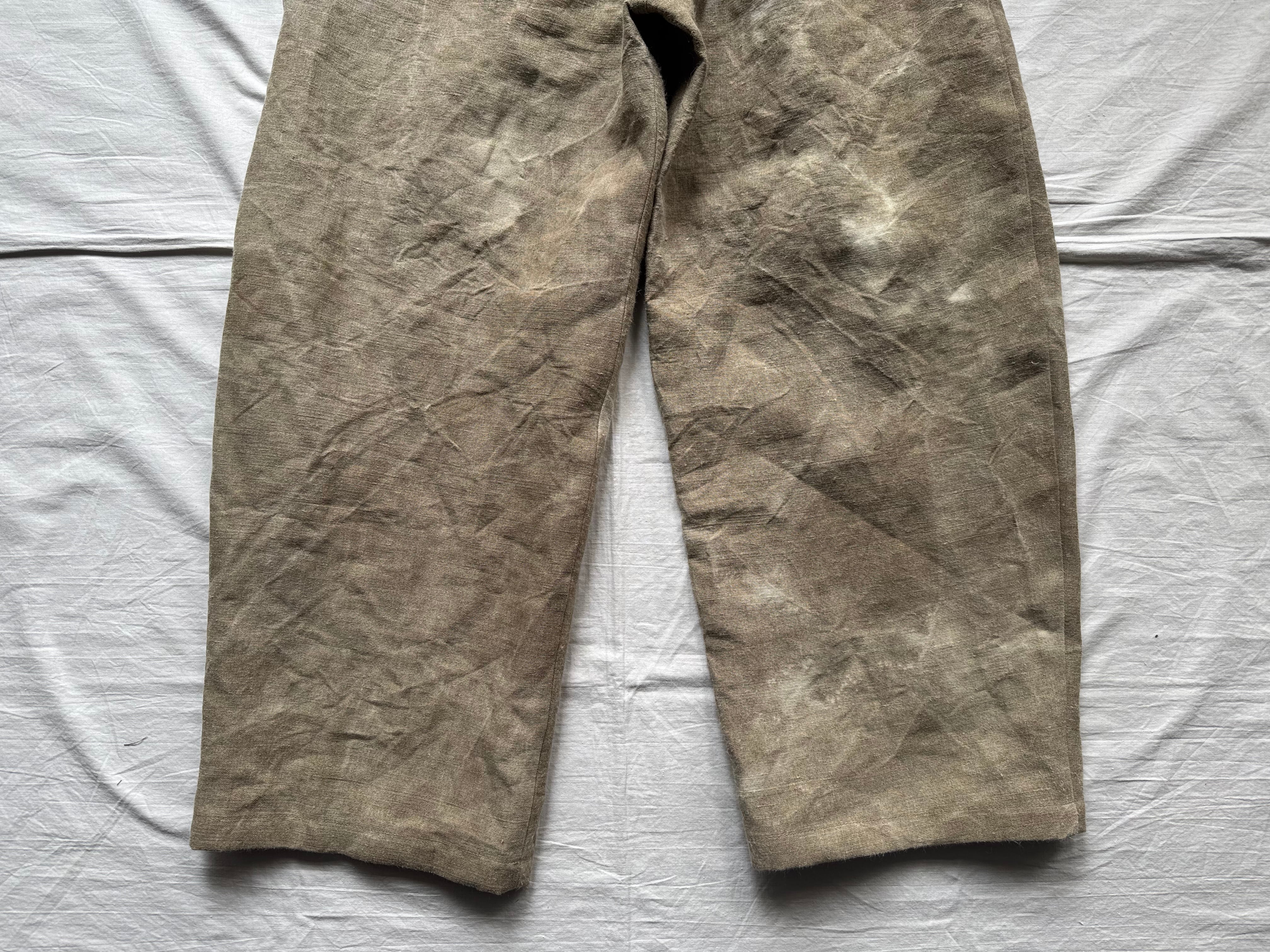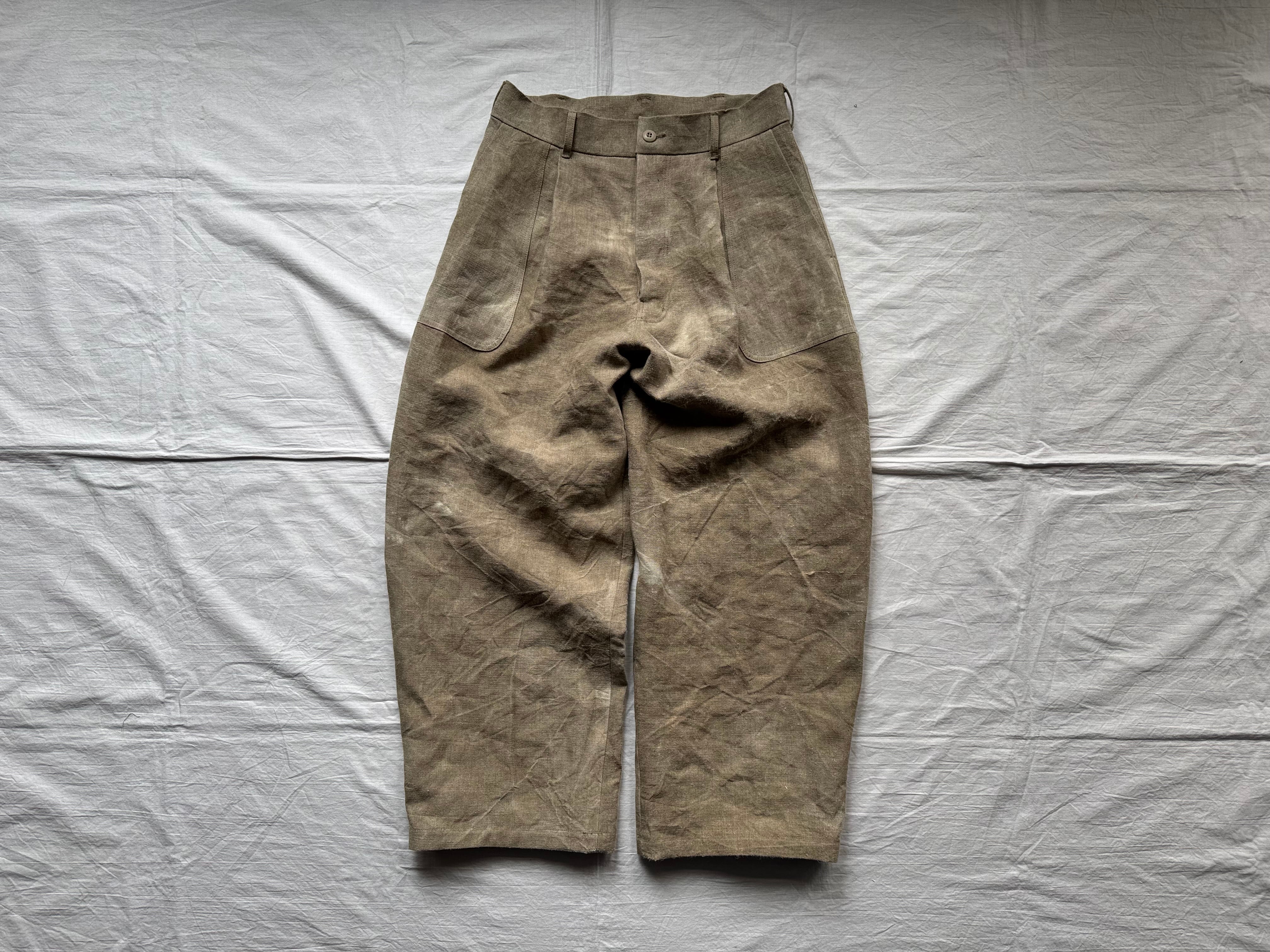 ohal / FRENCH ARMY HEAVY LINEN BARREL LEG PANTS