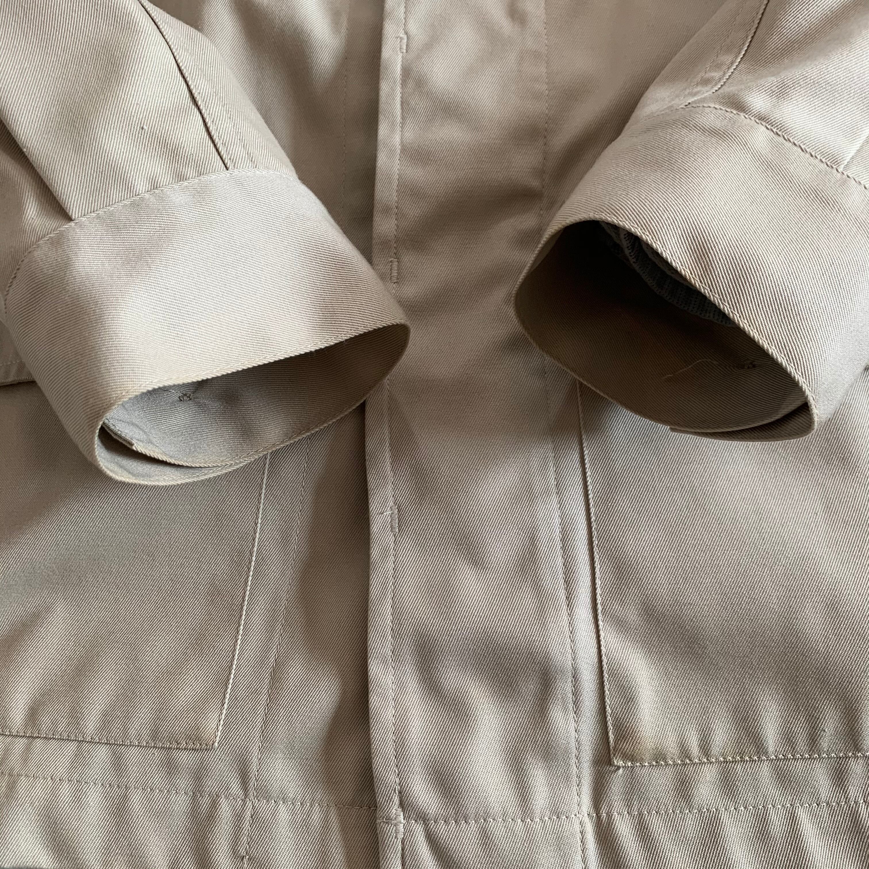 袖口、前身頃の左ポケット下あたりに少し汚れがあります。画像でご確認ください。