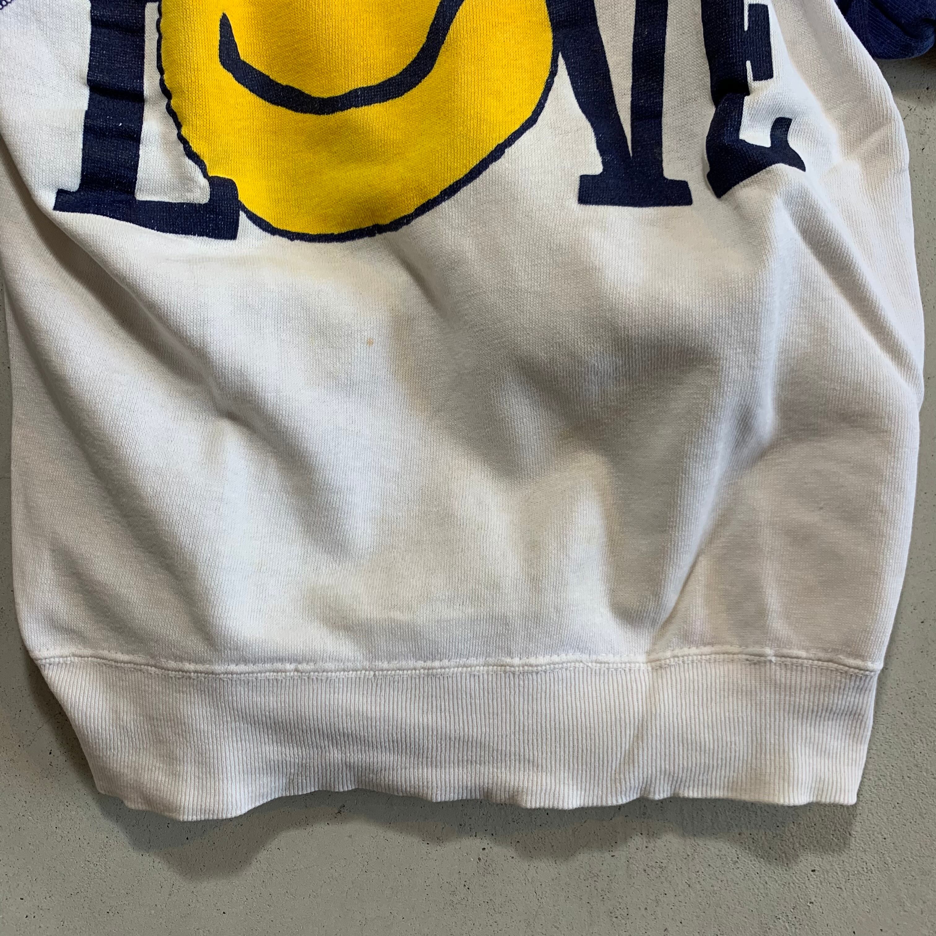 スマイルとLOVEのプリントが70年代当時を感じさせるスウェットです。