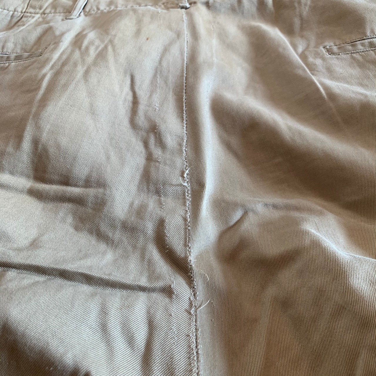 腿あたりに汚れがあるのと、ヒップにつまんでウエストを調整していた縫い跡があります。