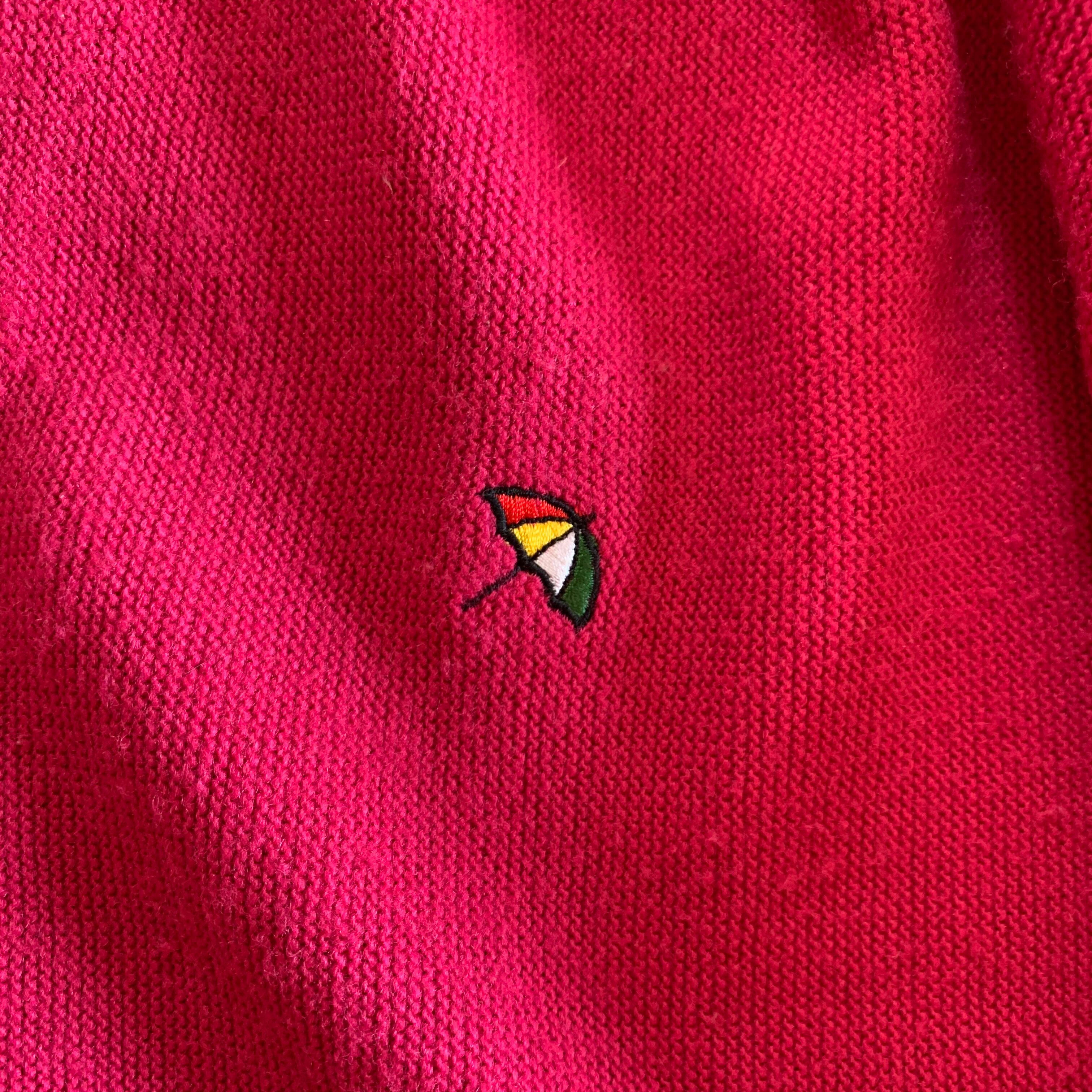 傘のマークでお馴染みのアーノルドパーマーの鮮やかなショッキングピンクのカーディガン。