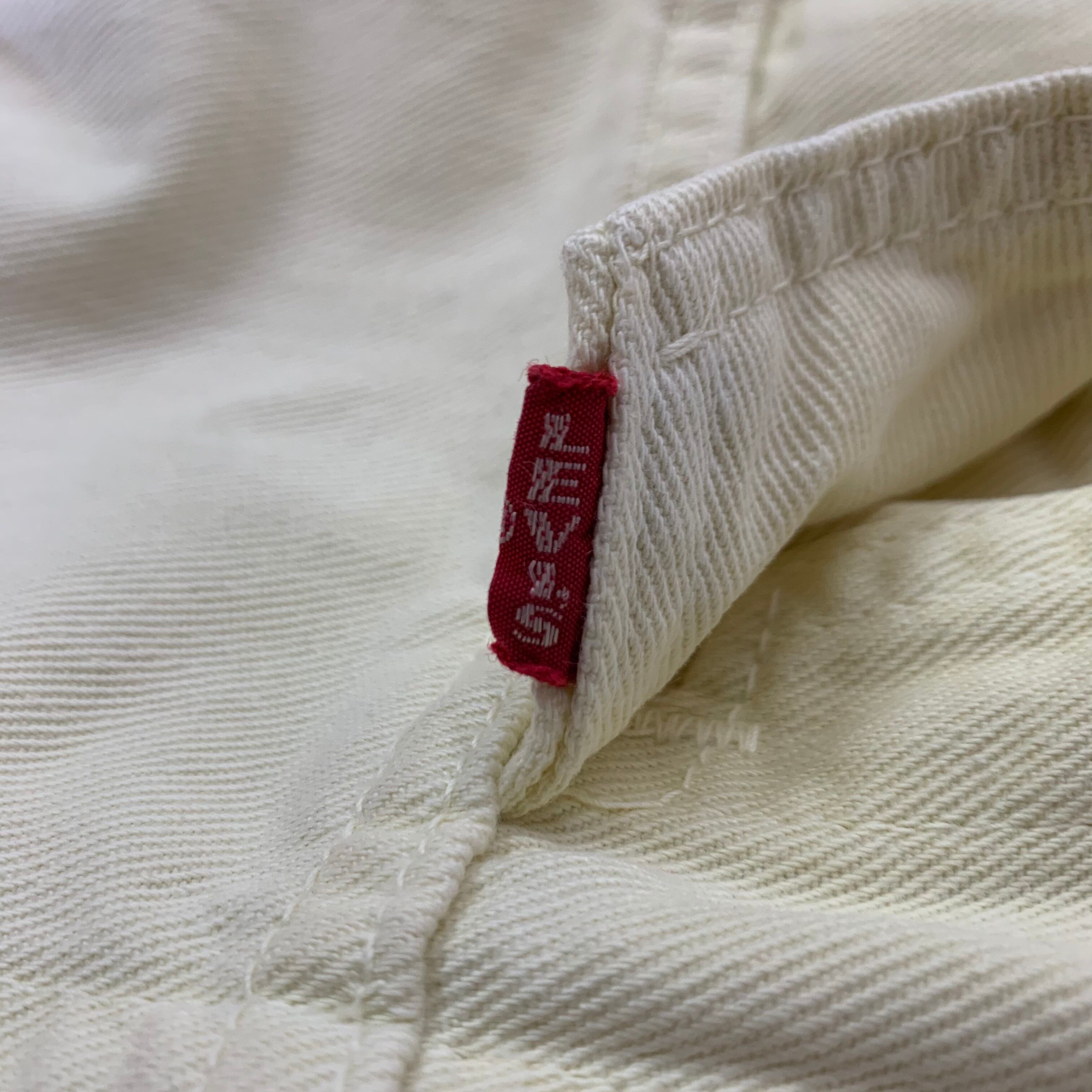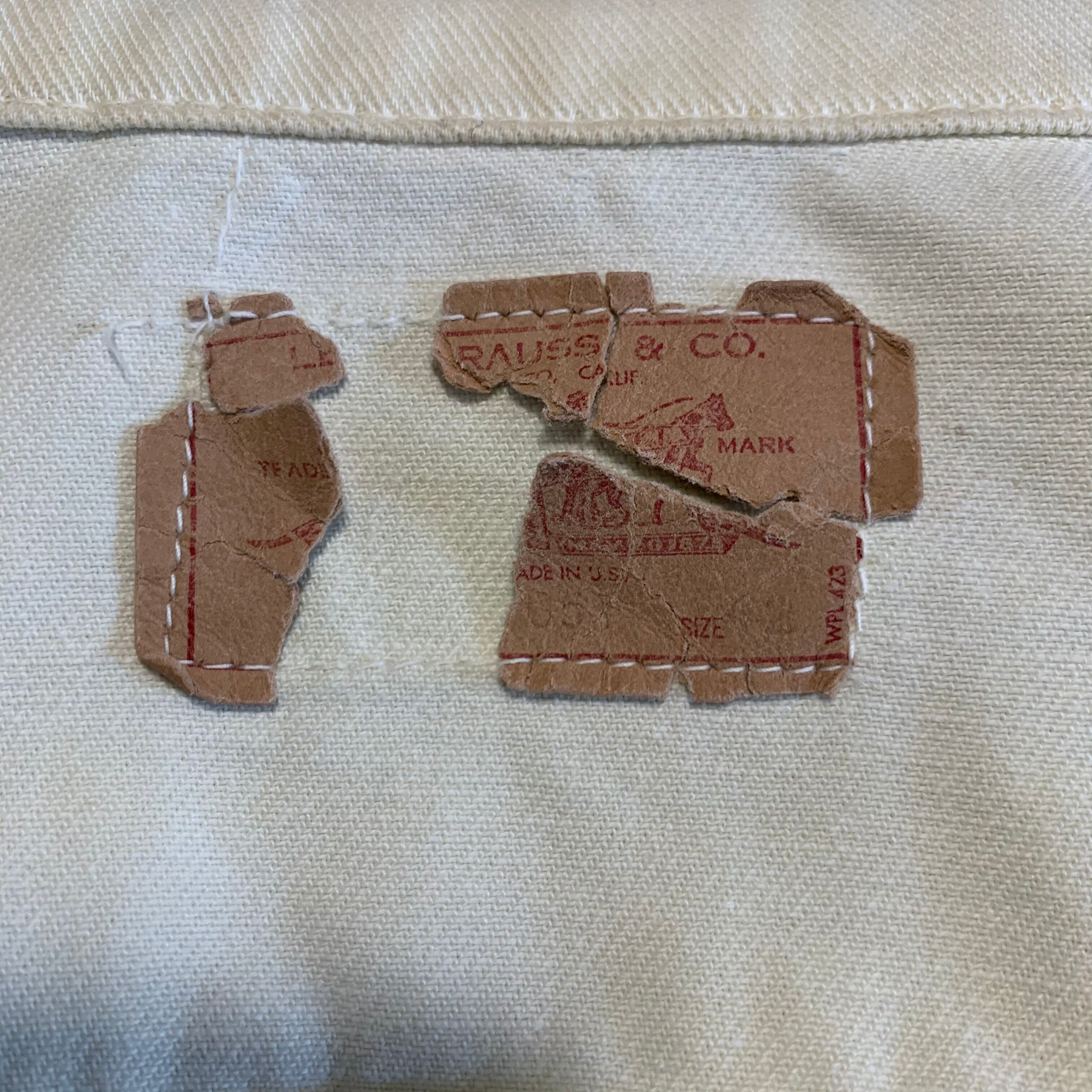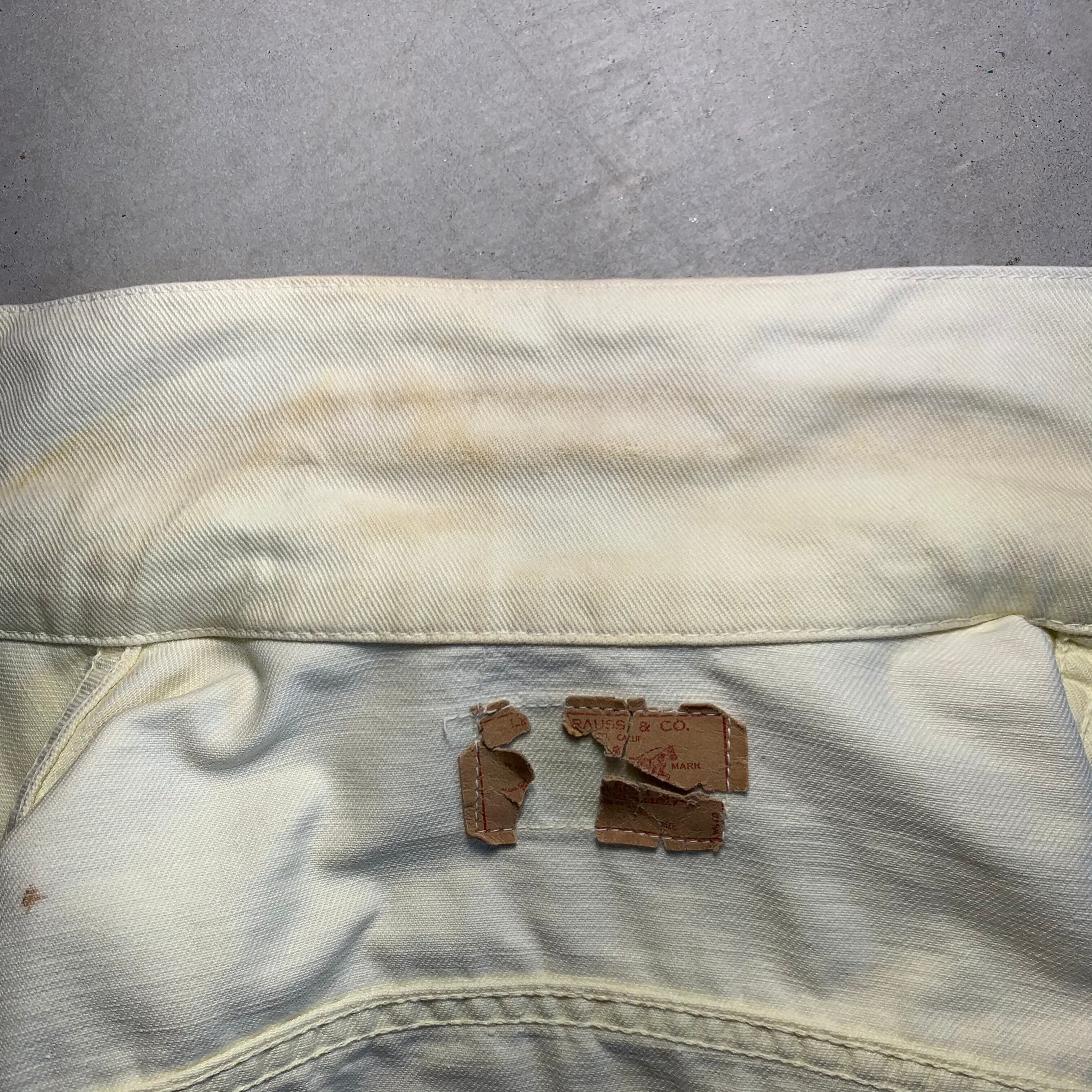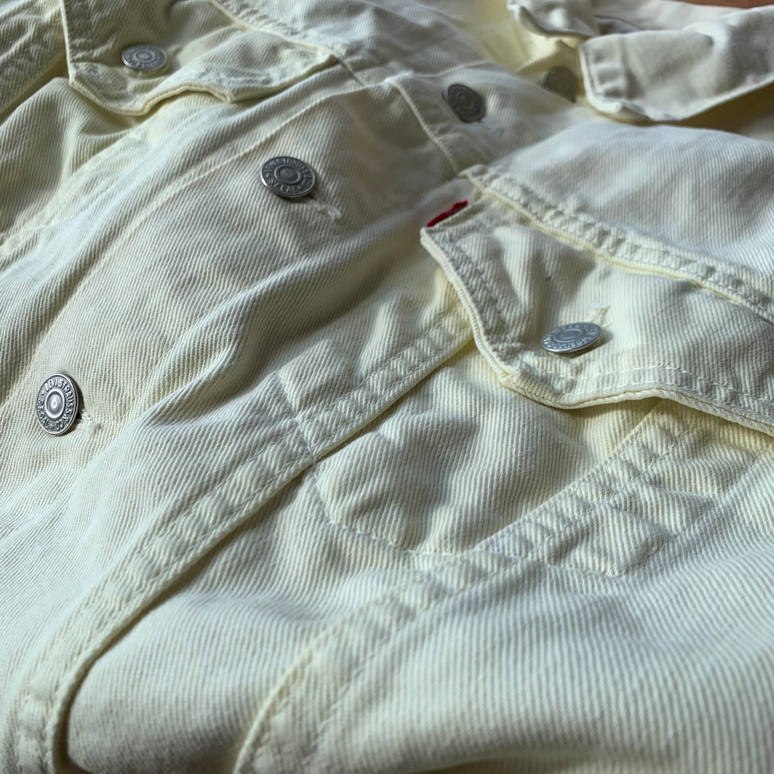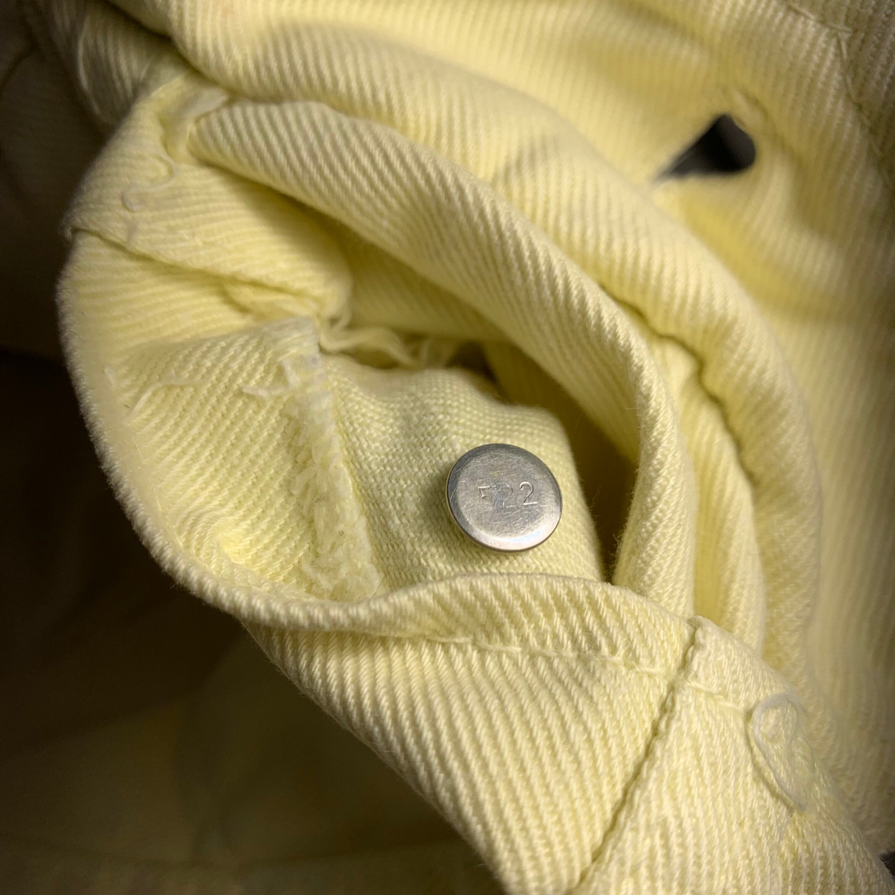 カラーはレモンイエローです。あまり見かけない色の珍しいカラーデニムです。胸ポケットのボタン裏の刻印は522です。