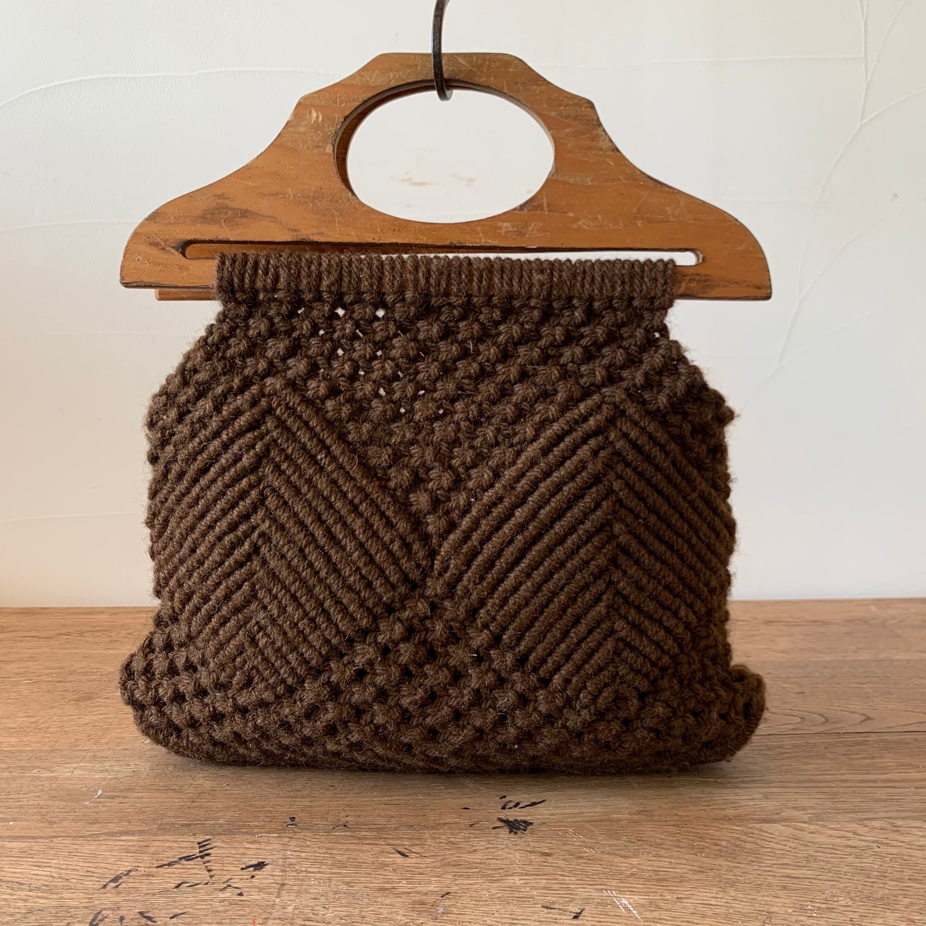 ヴィンテージのウッドハンドルになったマクラメバッグです。