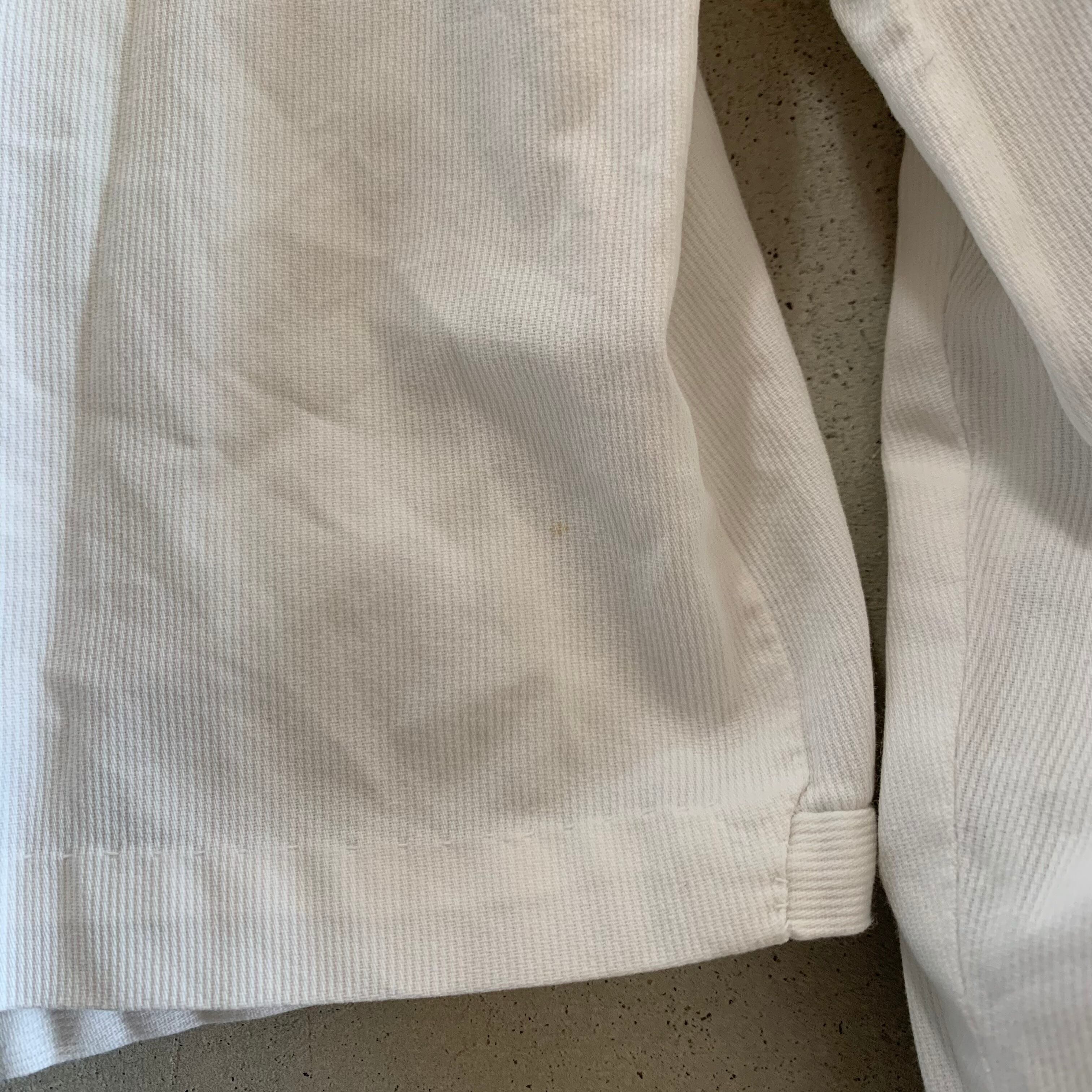おそらく綿100%かと思いますが、タグが無いため、はっきりわかりません。少し変わった生地を使用されています。10枚目の画像をご確認ください。