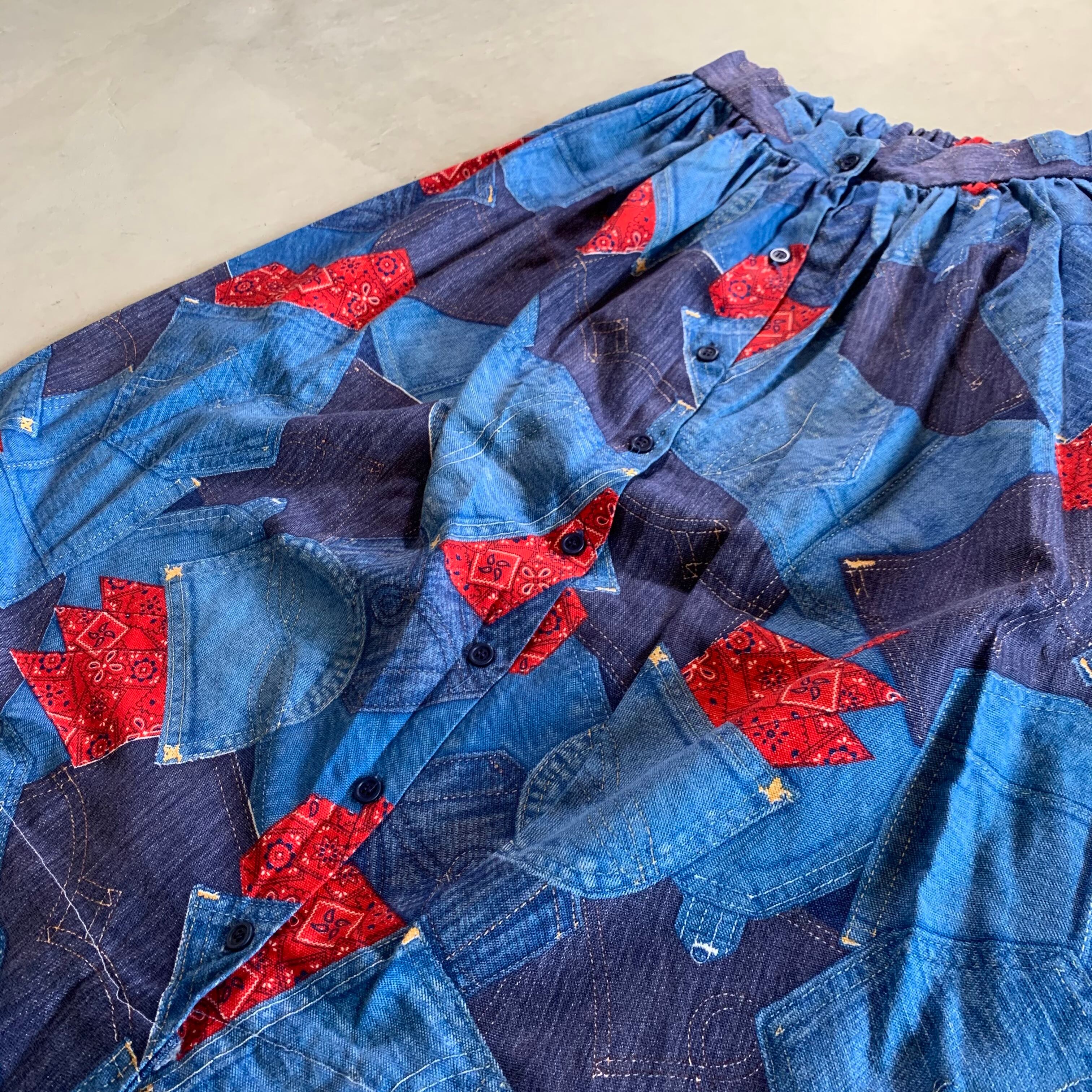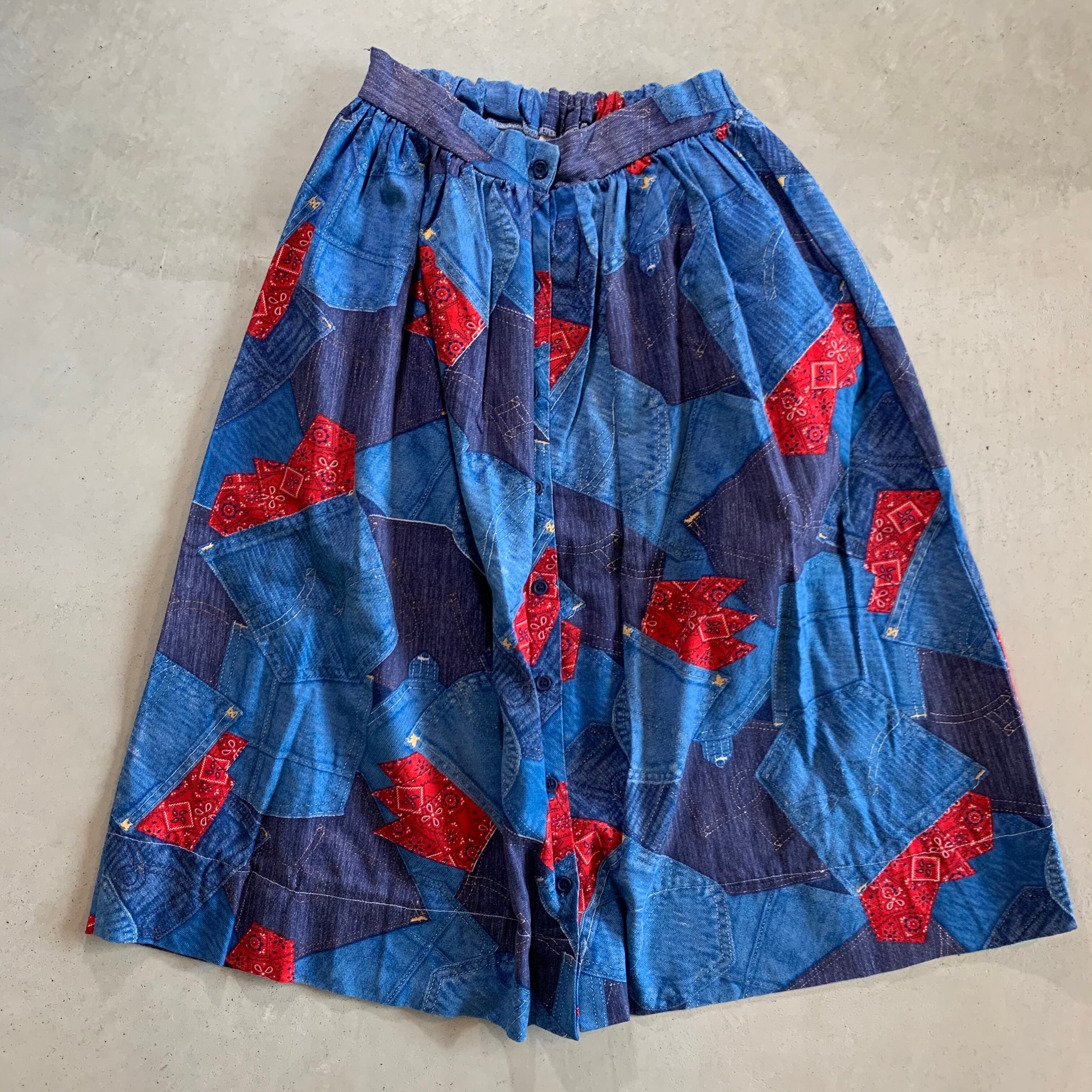 パッチワーク風プリントがされた、Vintageのロングスカート。