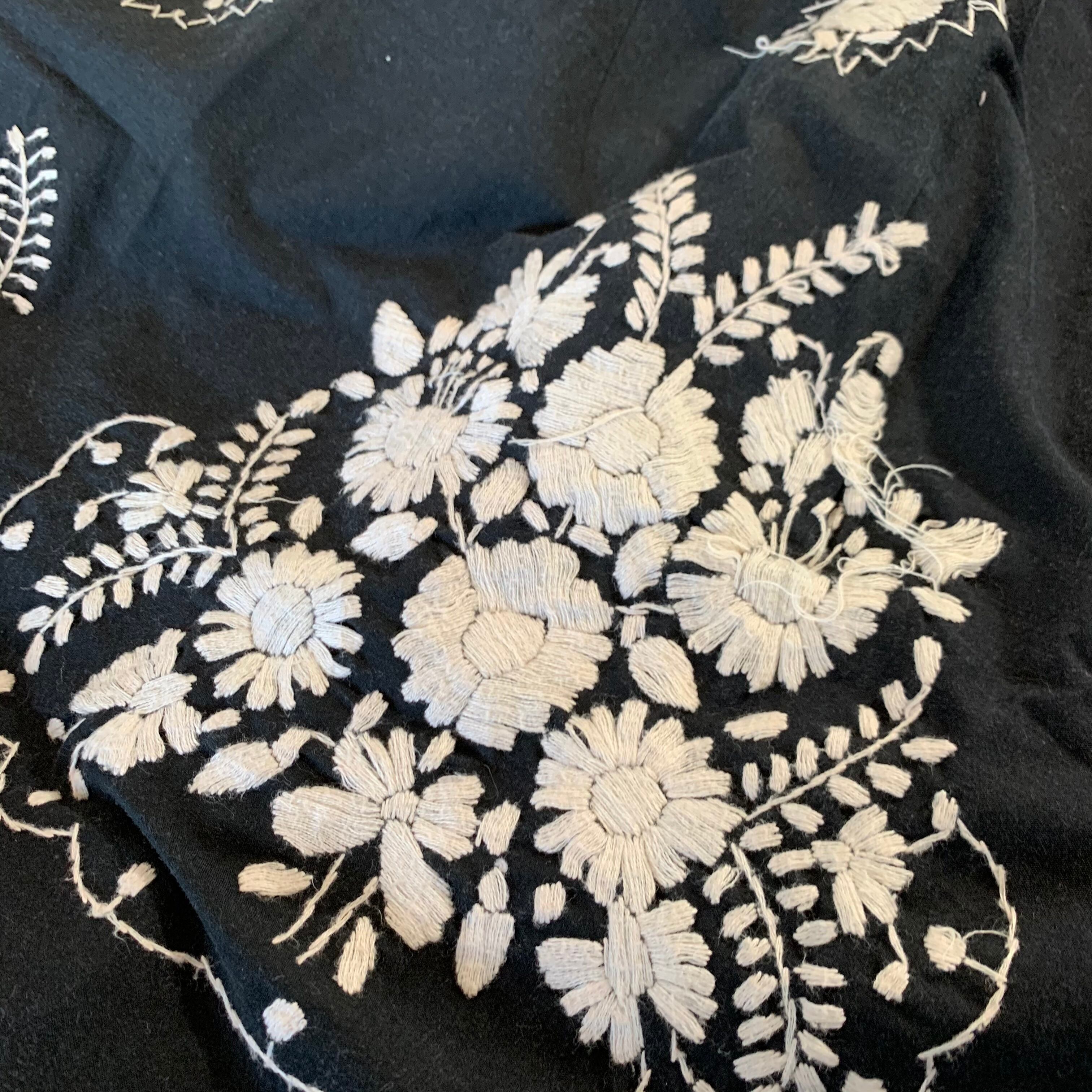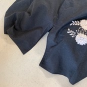 カラフルな刺繍もいいですが、こちらは黒ボディーに白一色の刺繍。シンプルな配色が人気の一枚です。
