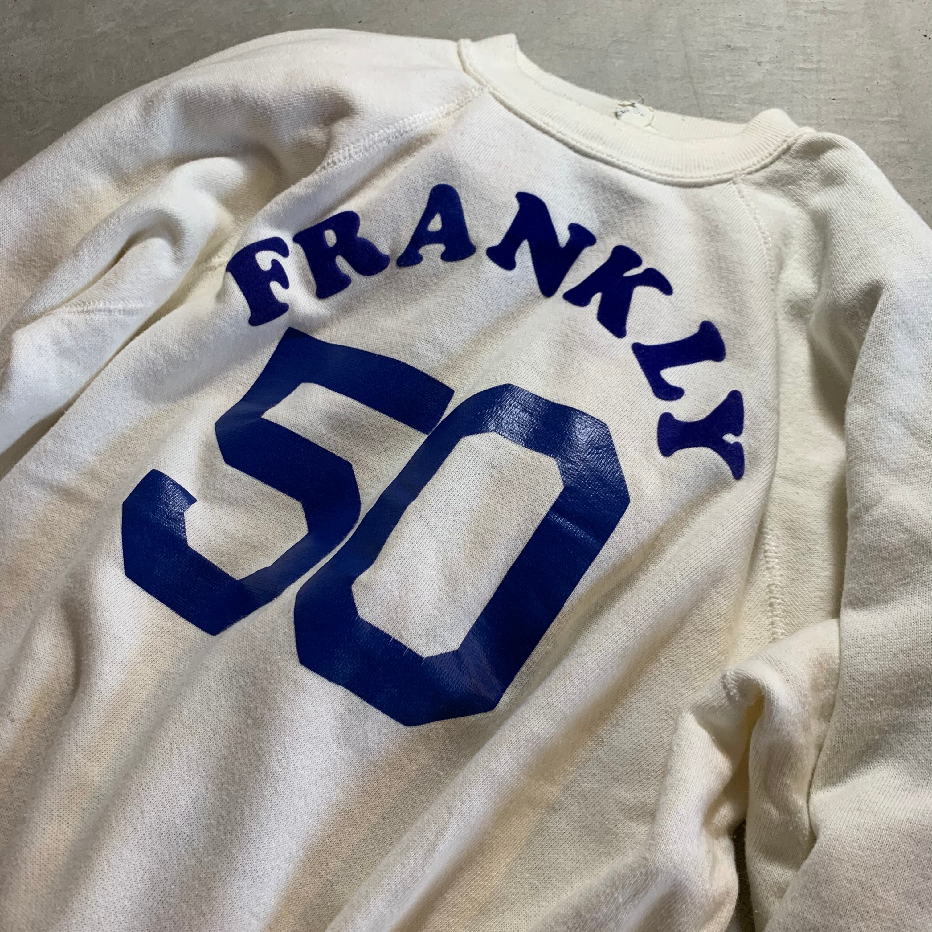 フロッキープリントのスウェット。80年代らしい50/50の柔らかな素材感。