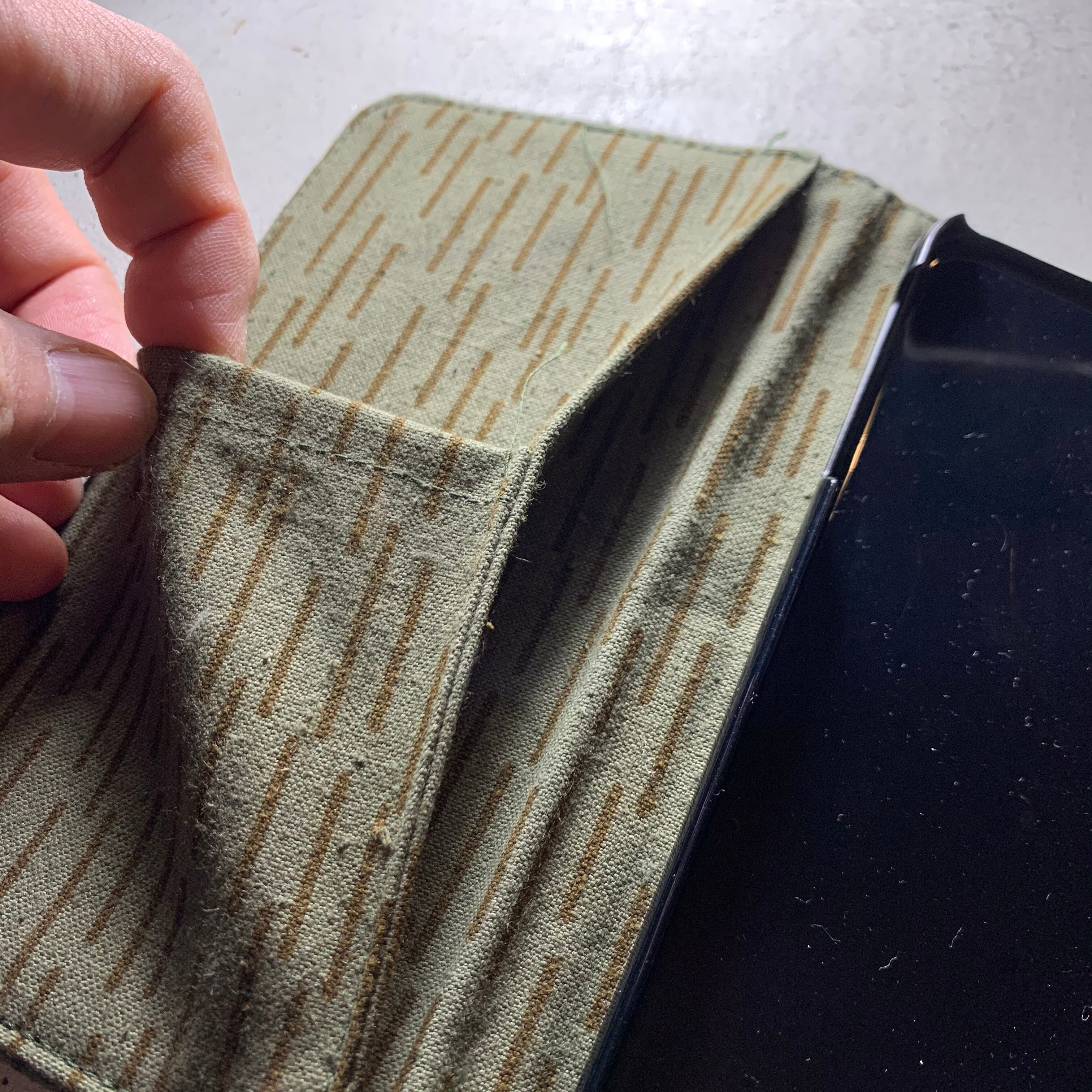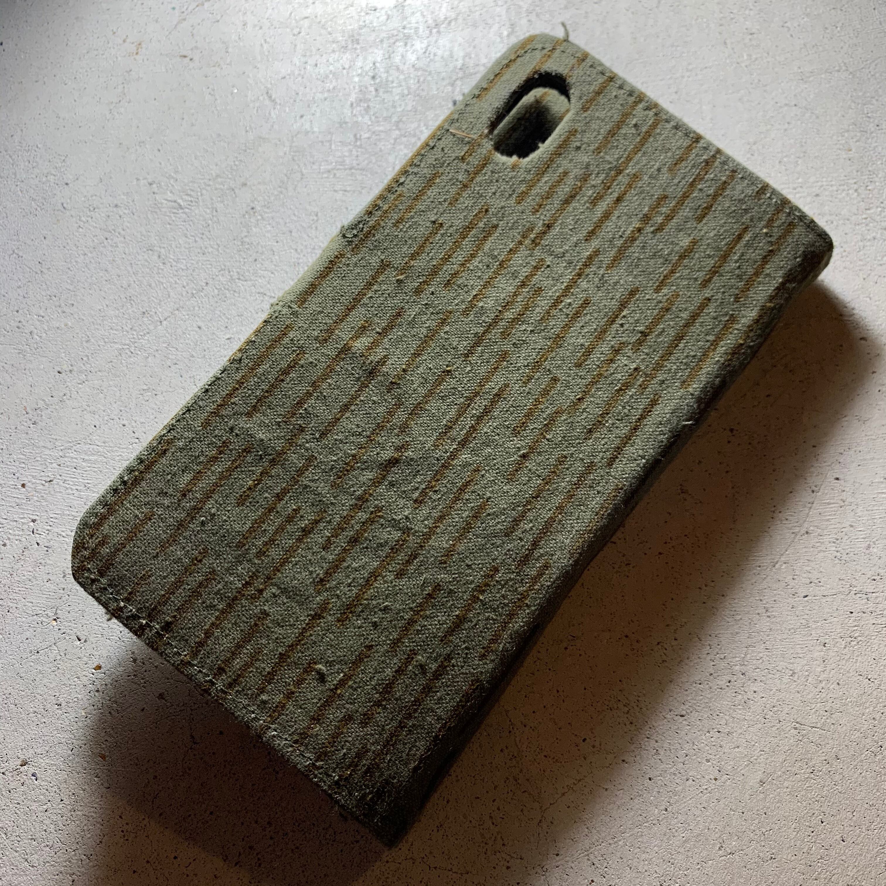 60年代のレインドロップカモのヴィンテージファブリックで作った手帳型のiPhoneケースです。