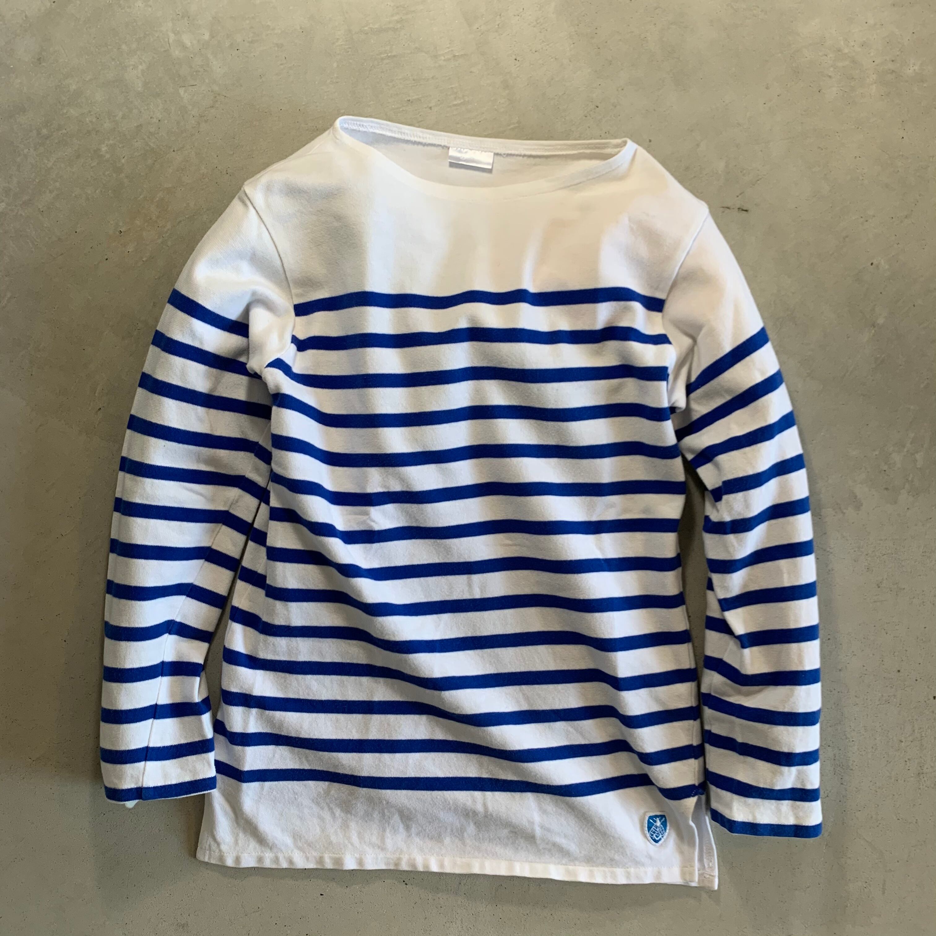 Orcivalのブルー×ホワイトのマリンボーダーバスクシャツです。日本ライセンスの物になります。