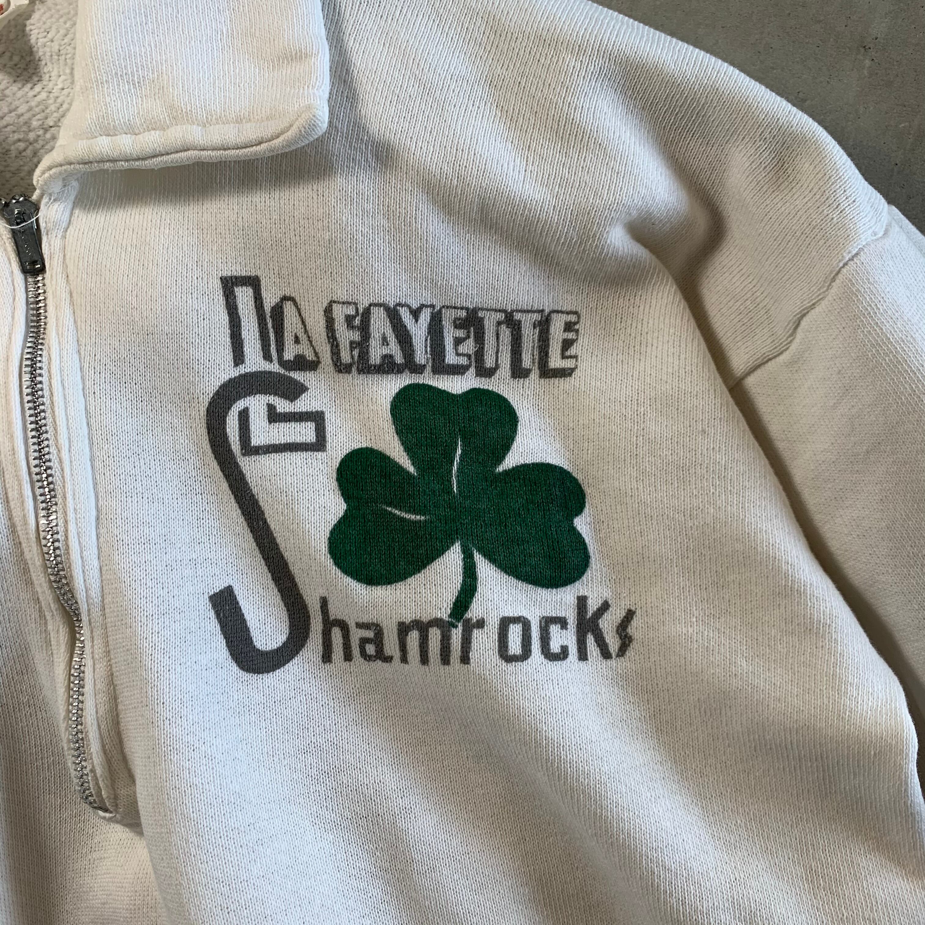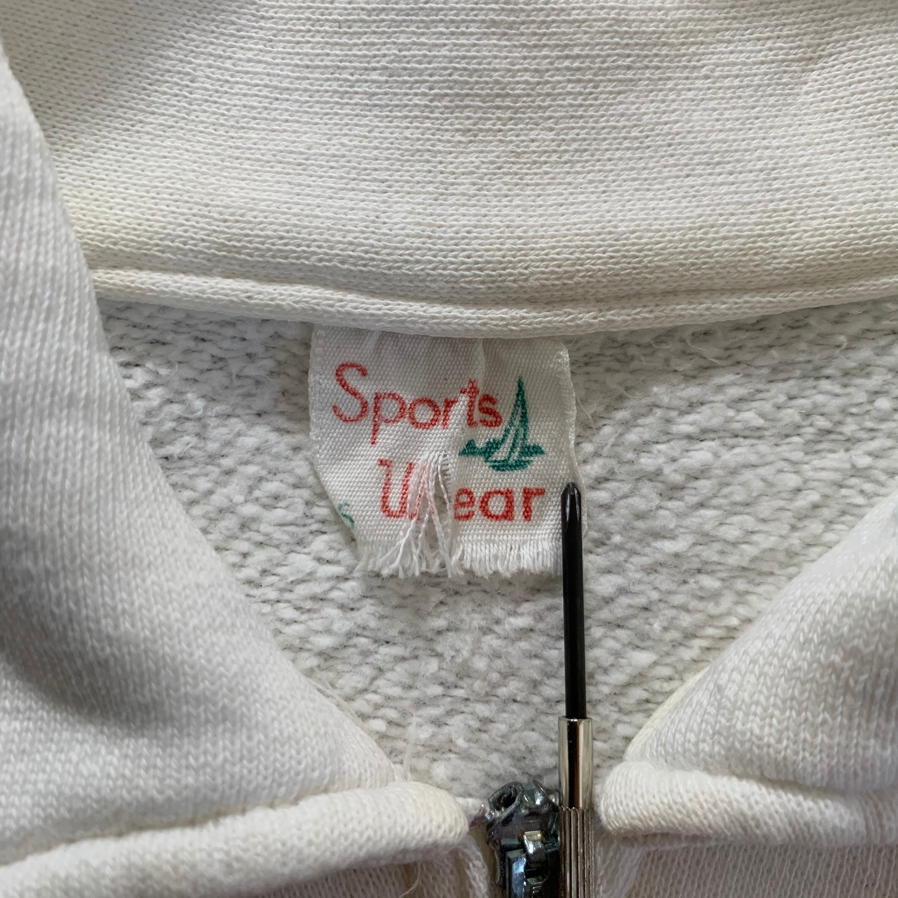 スポーツウェアの長リブ丸胴ボディーのハーフジップスウェットです。