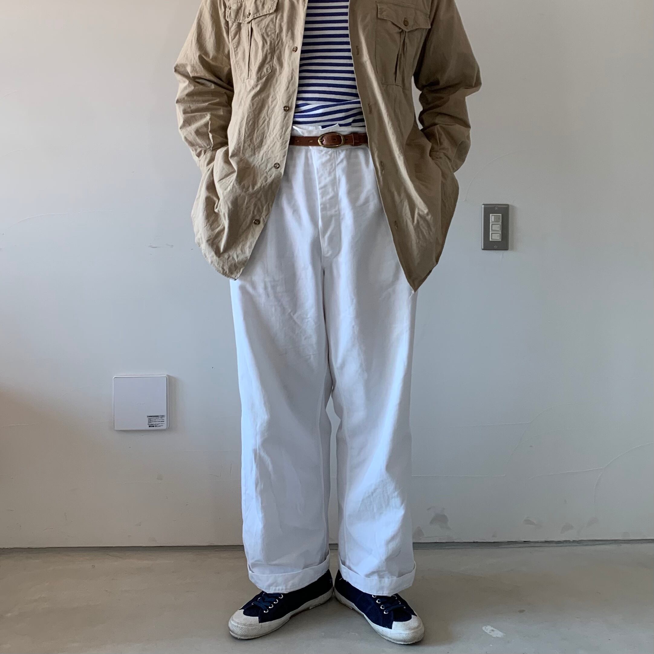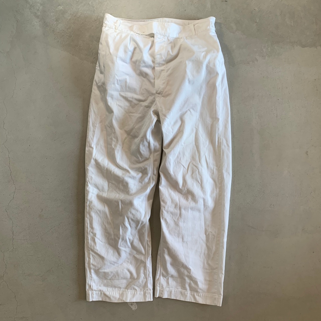 タグなどがなく詳細不明ですが、US NAVYのセーラーパンツのような雰囲気です。ボタンは猫目ボタンです。トップボタンのところはボタンが付け替えられています。