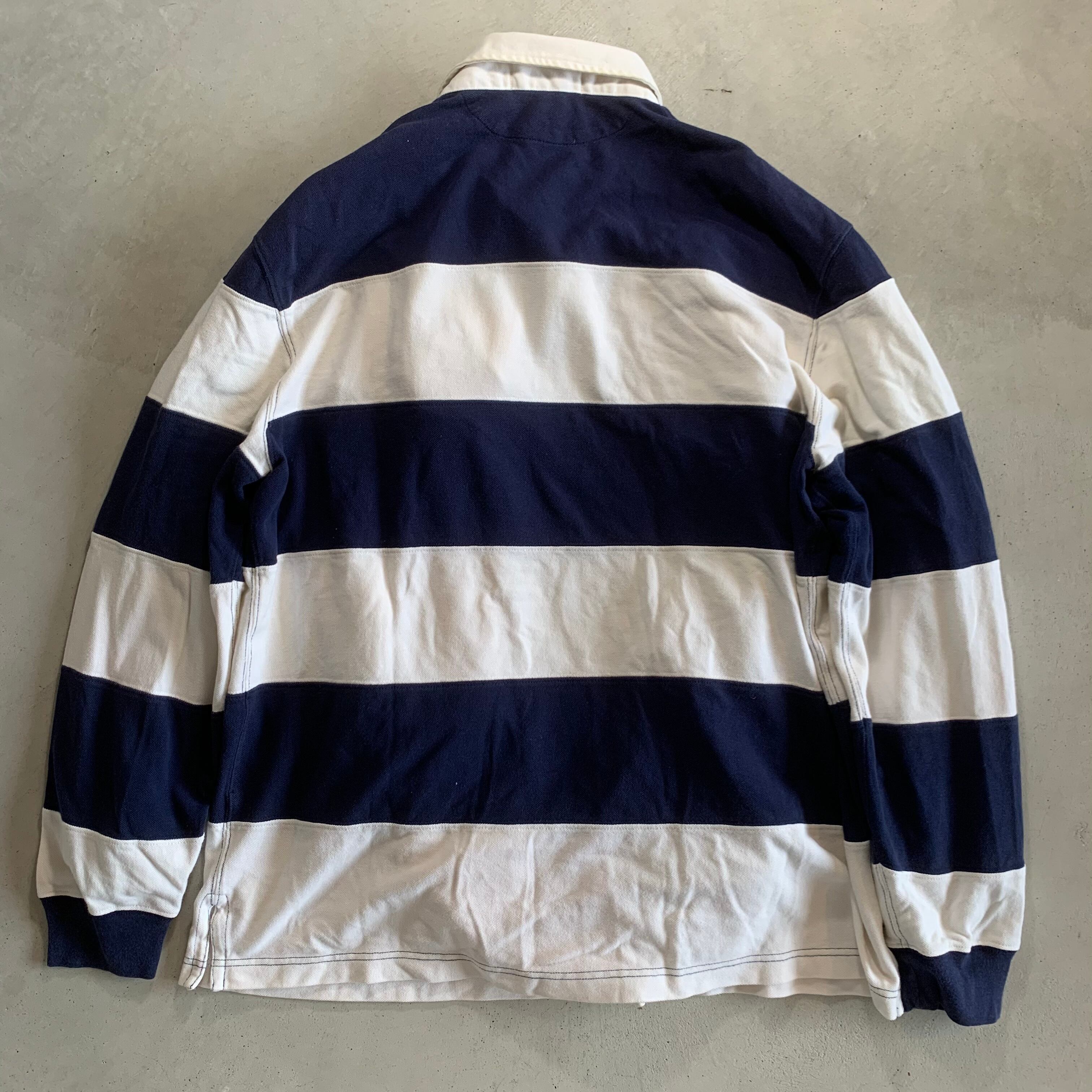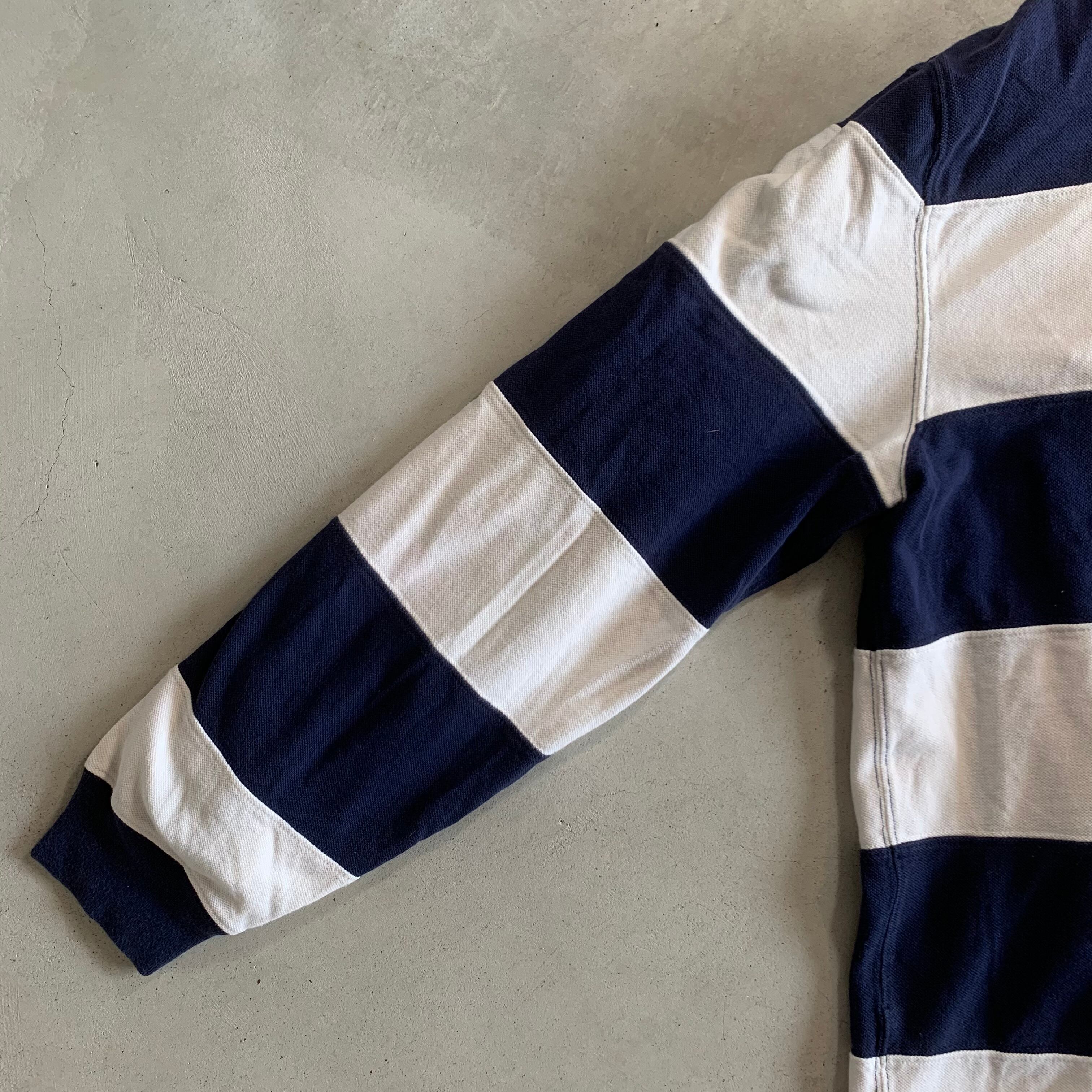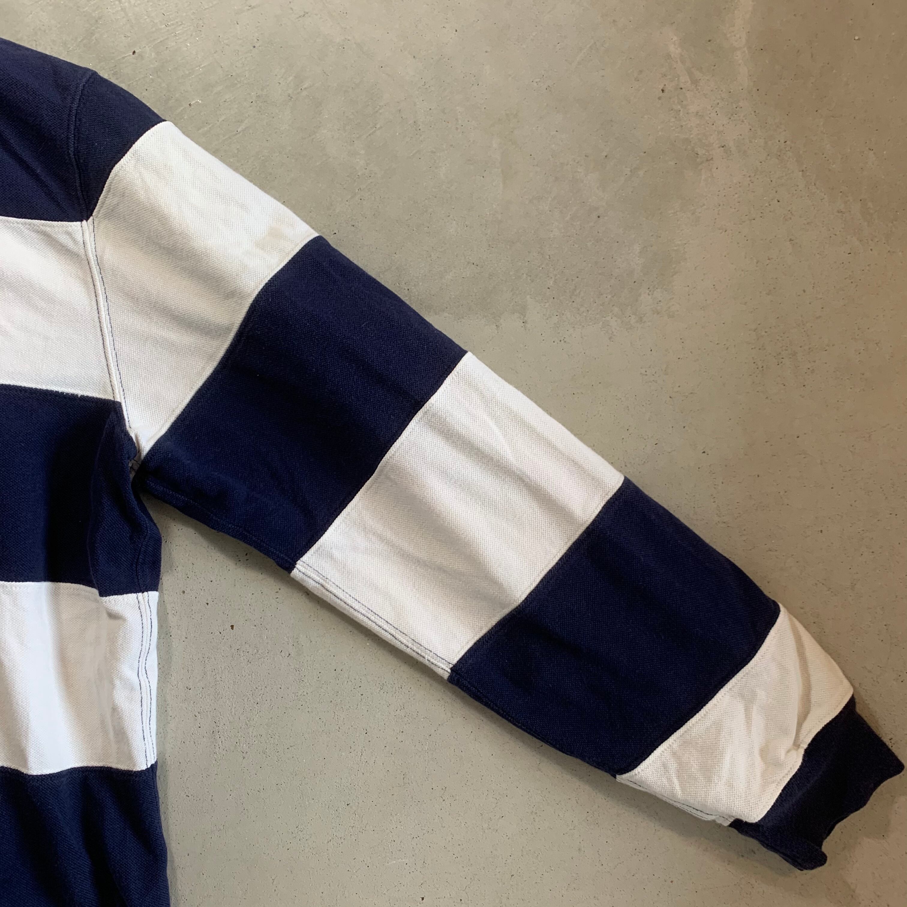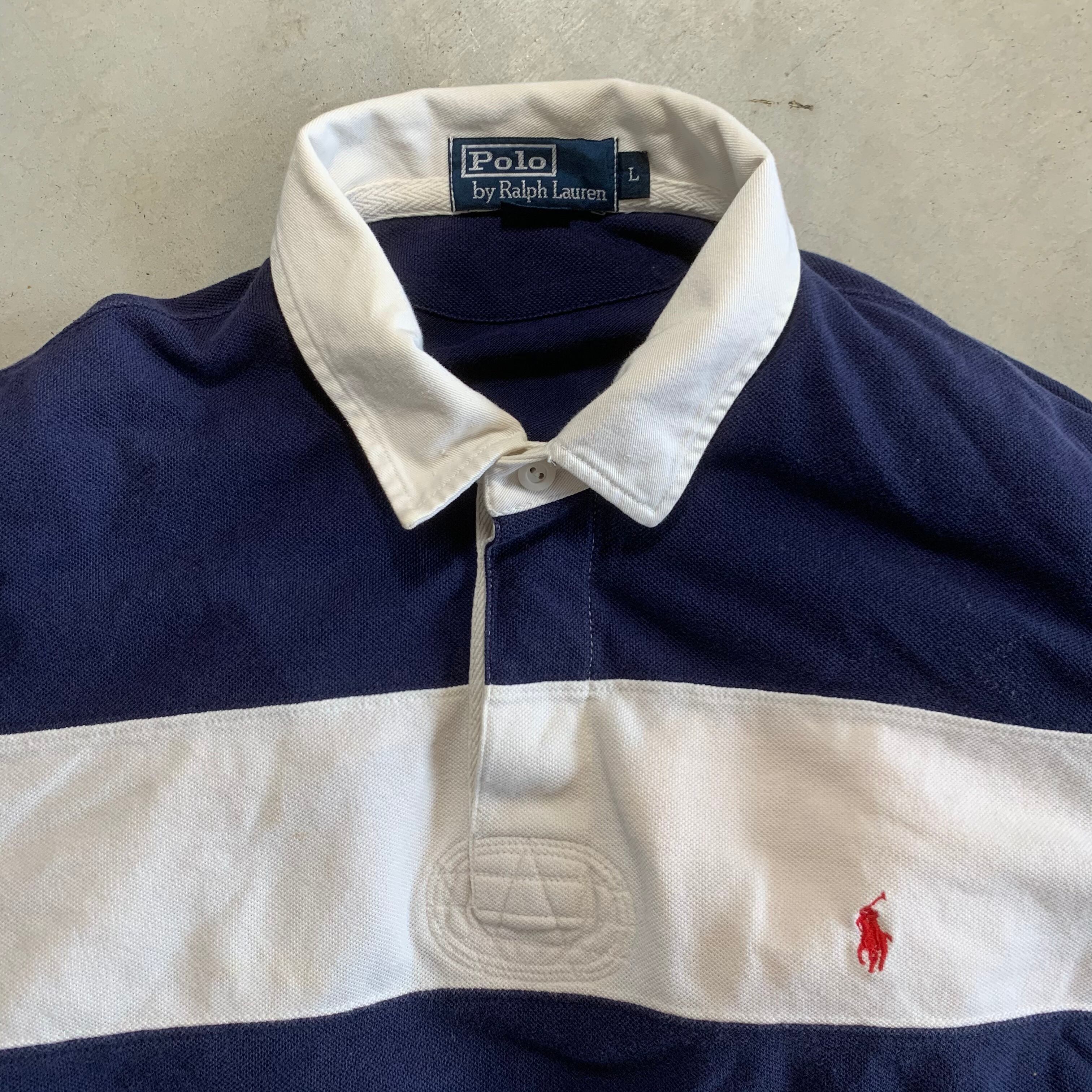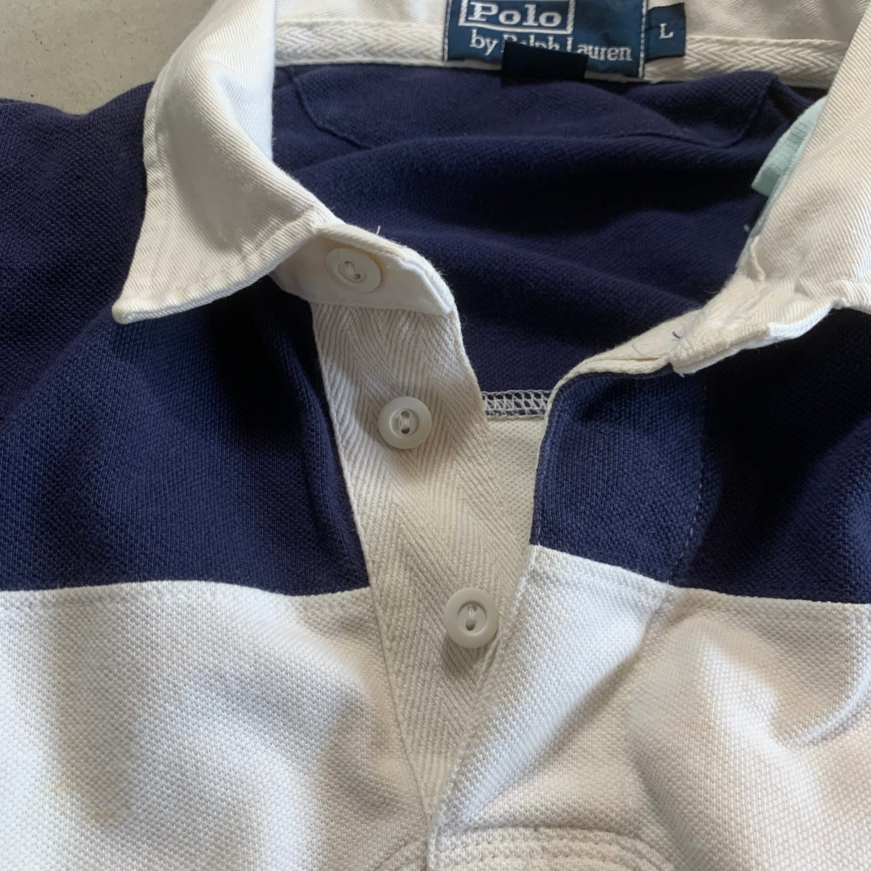 90年代のラルフローレンのネイビー×ホワイトのラガーシャツです。所々にシミがあります。画像でご確認くどさい。