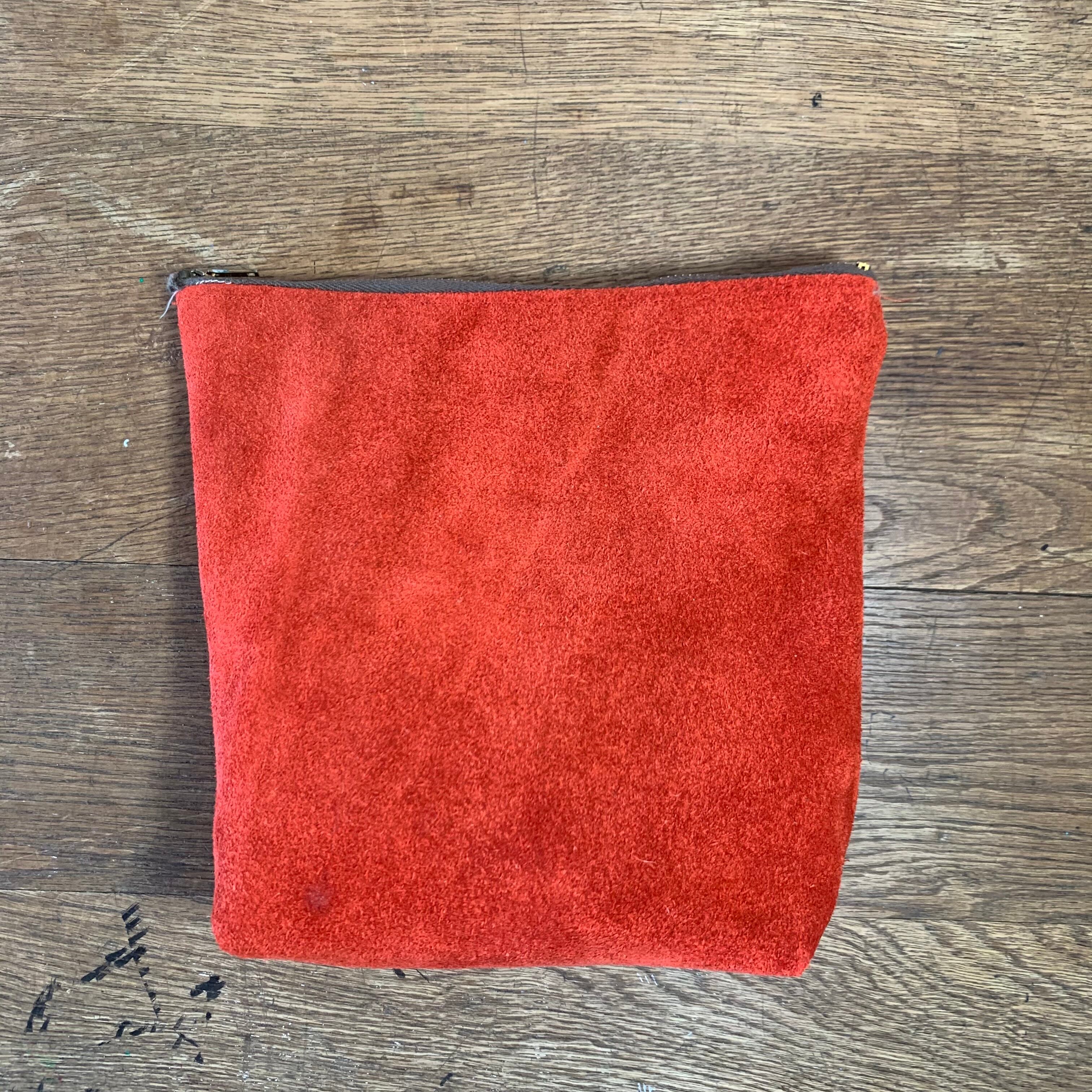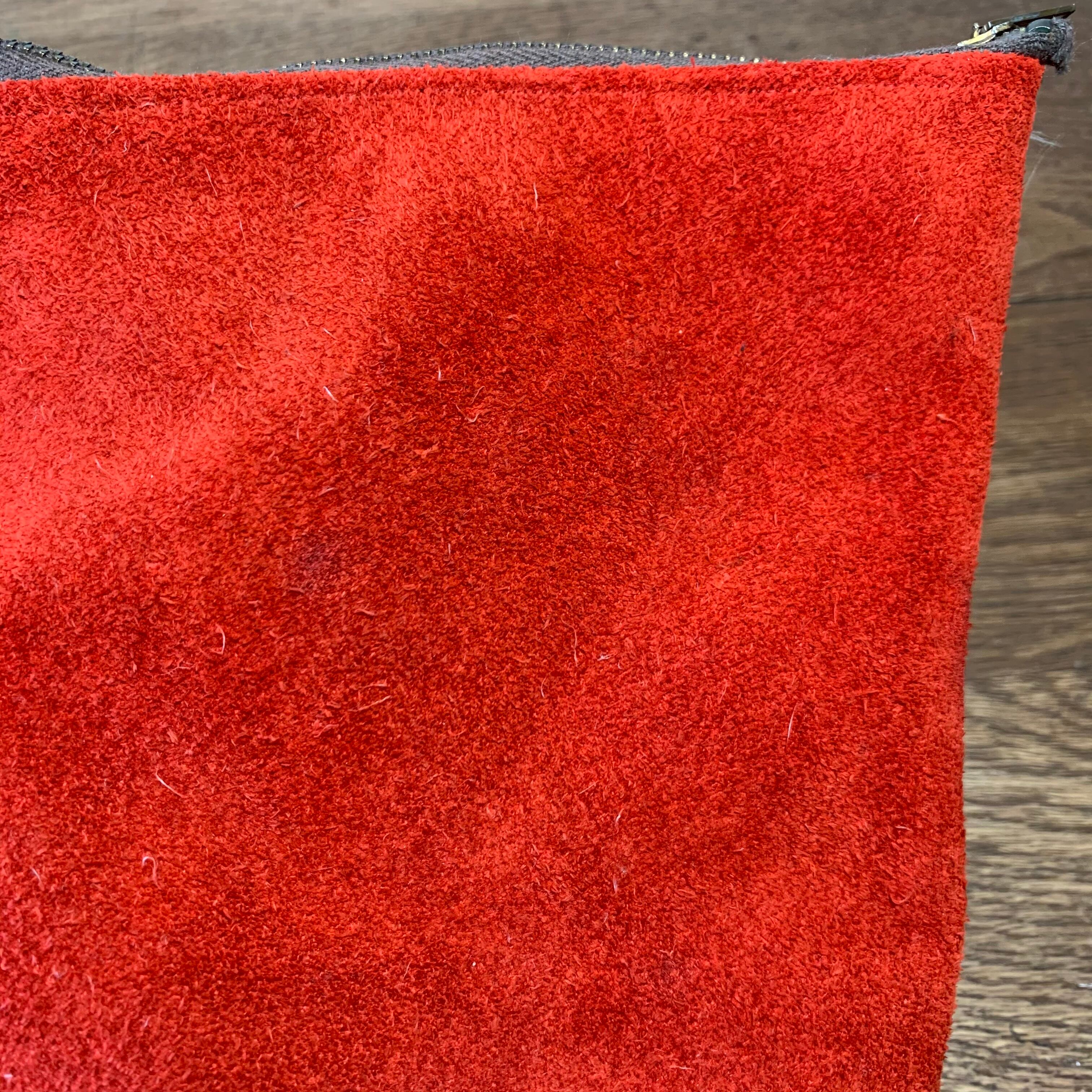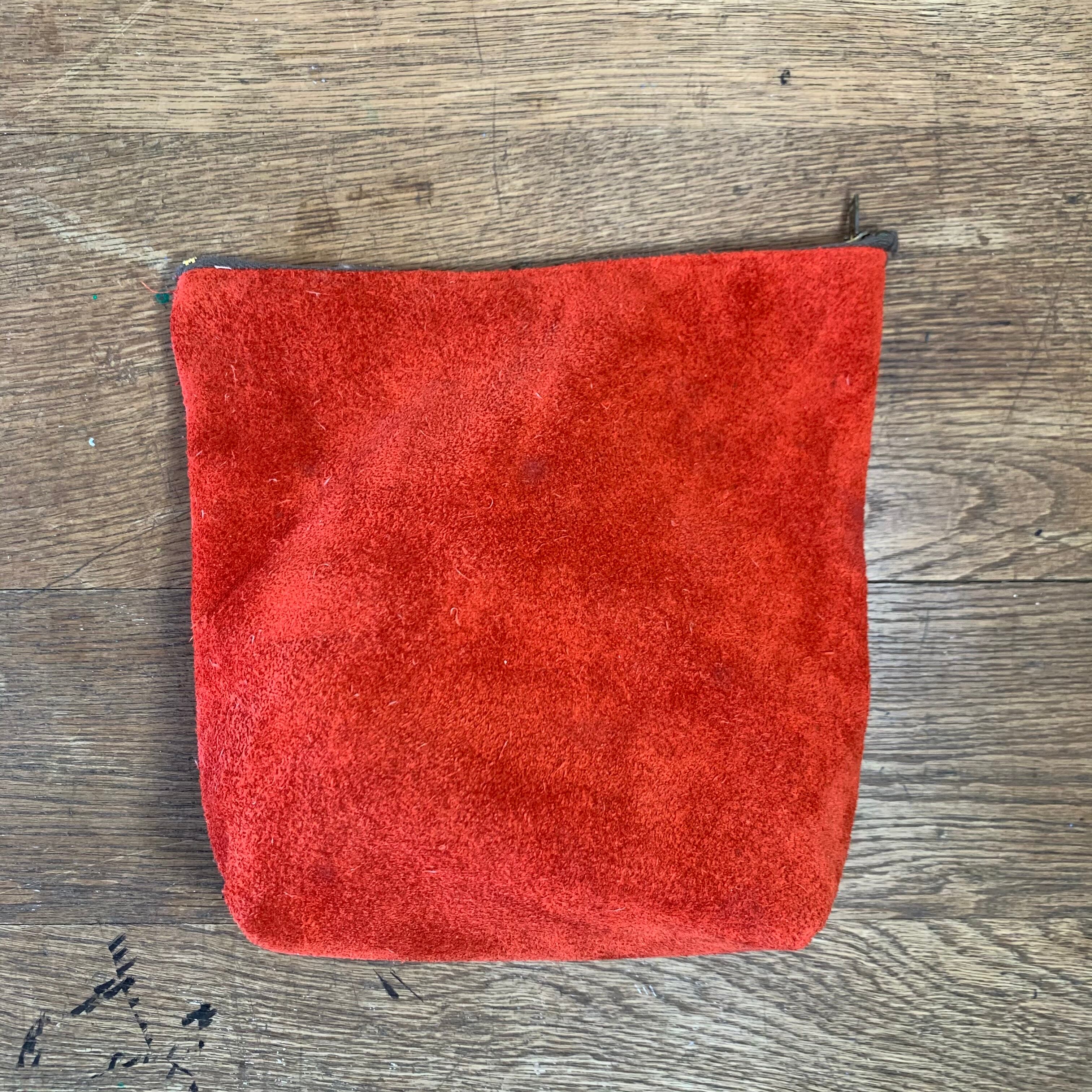 70年代のスエードスカートの生地で作ったマチ付きのポーチです。ジップはスカートで使われていたヴィンテージのジップになります。片爪のファスナーで"DANDY"と記載されています。ヴィンテージのファスナーですが滑りもよく開け閉めしやすいです。良い味だしています。