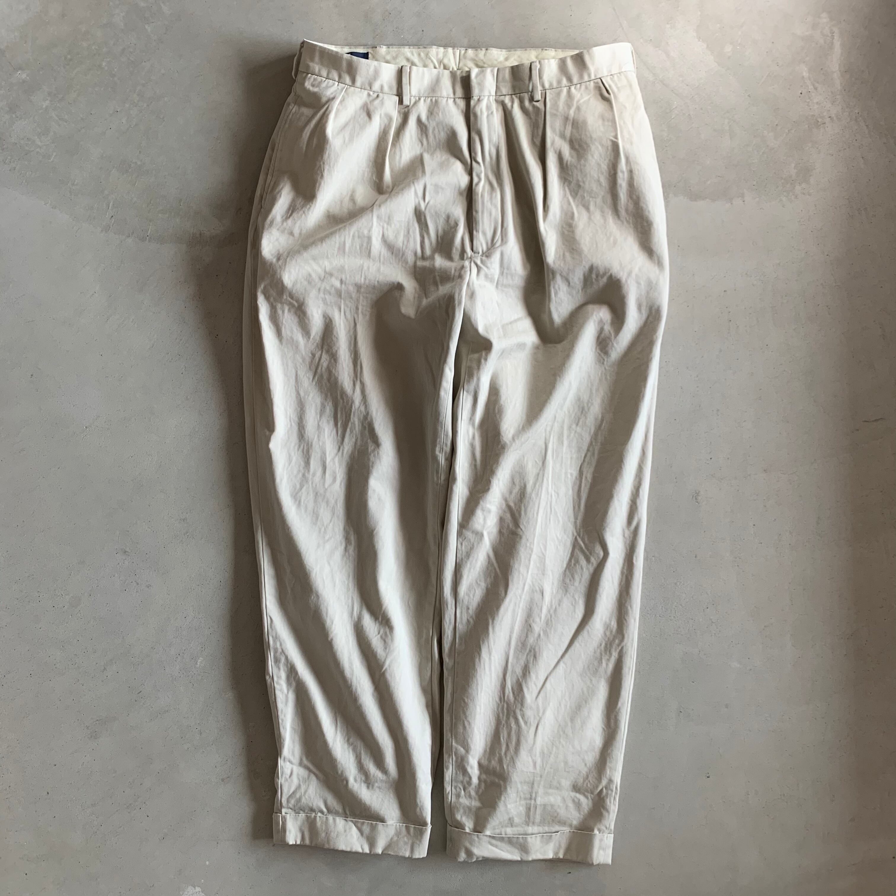 サイズが38と大きめなのでベルトで縛って履いていただけたらかなりワイドなシルエットになります。
