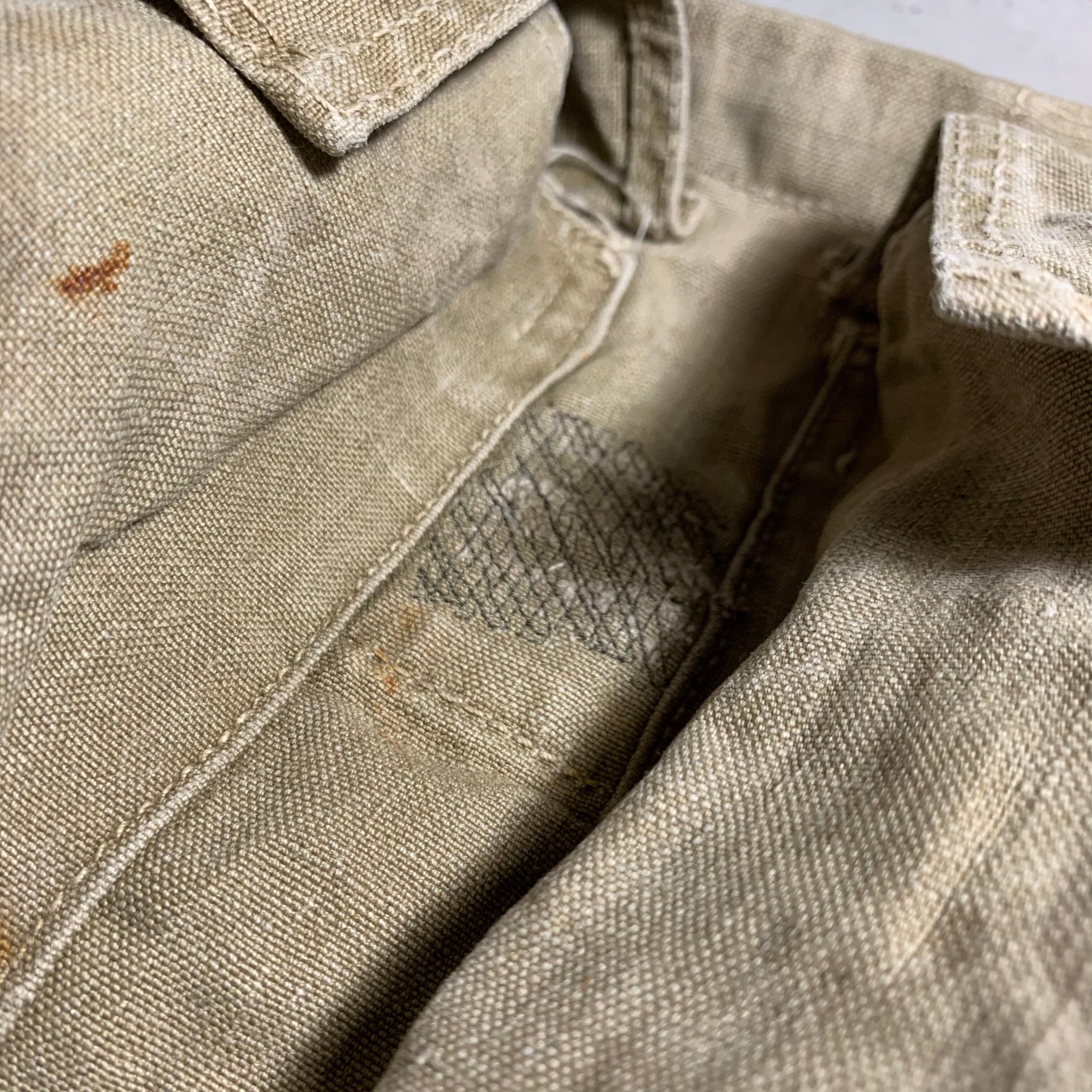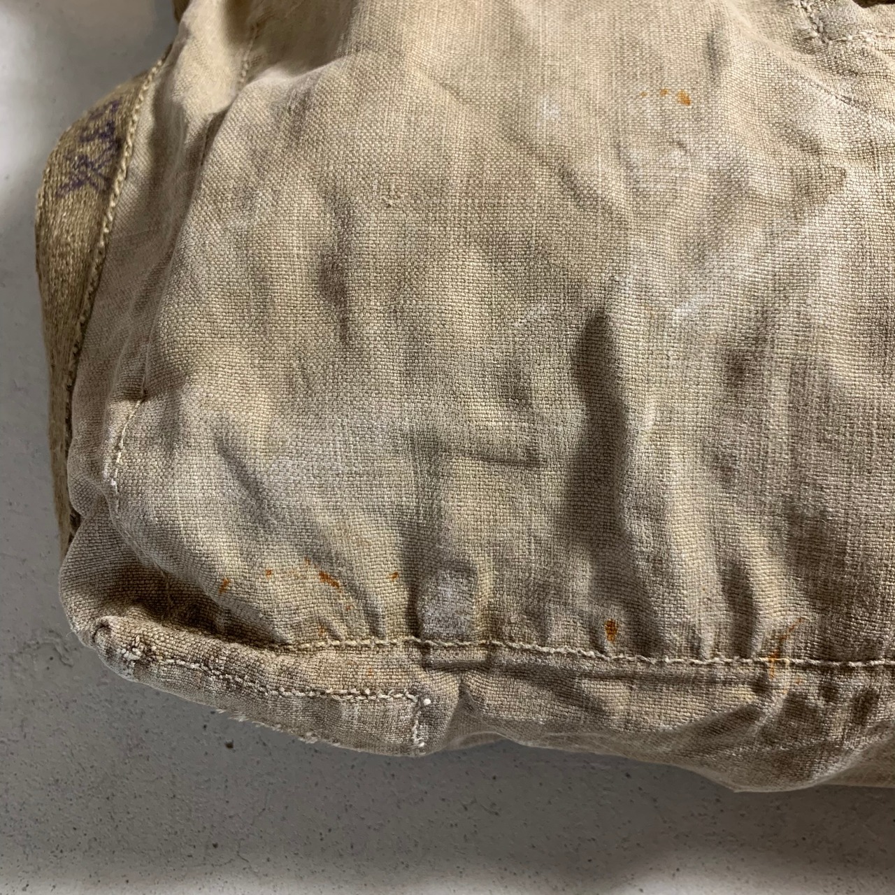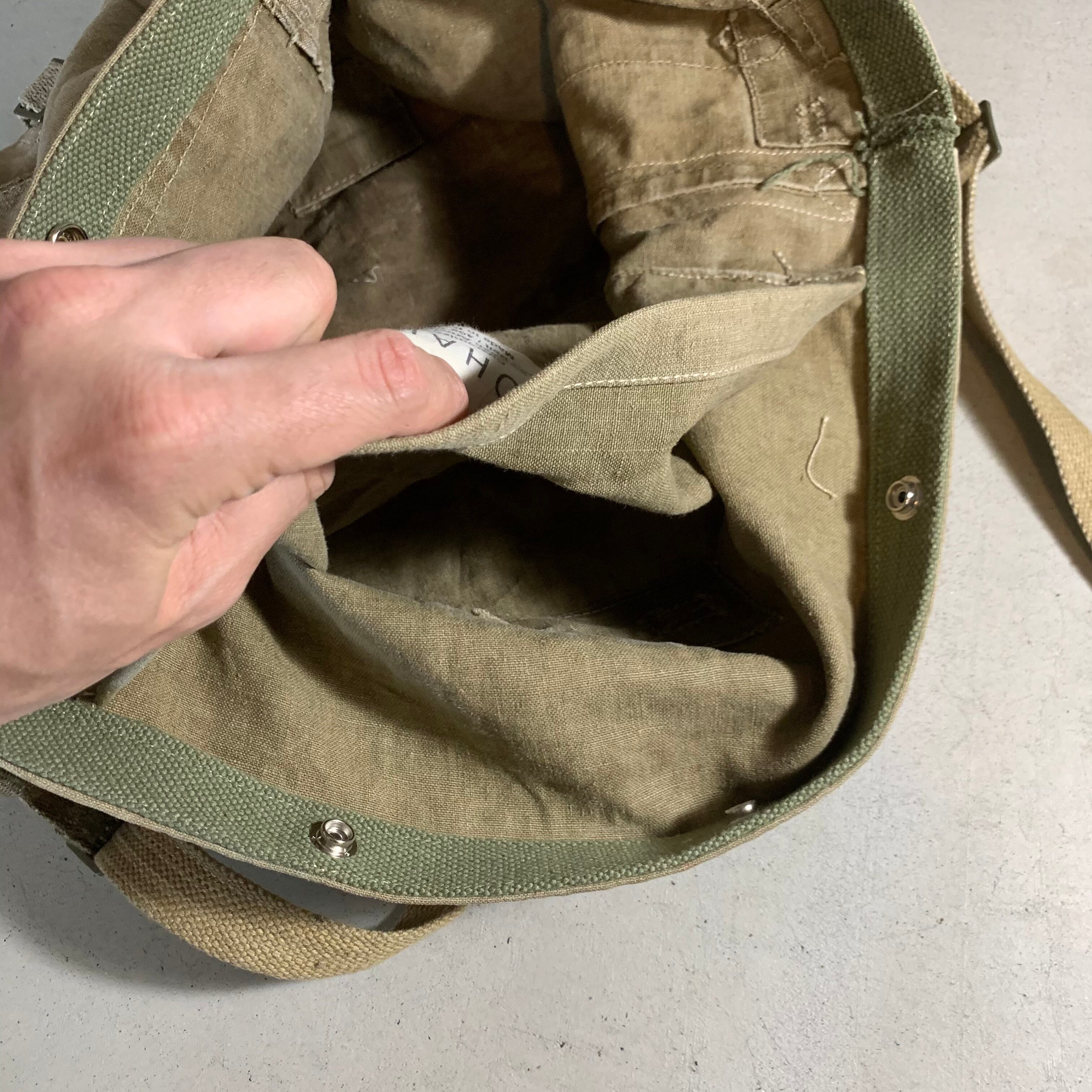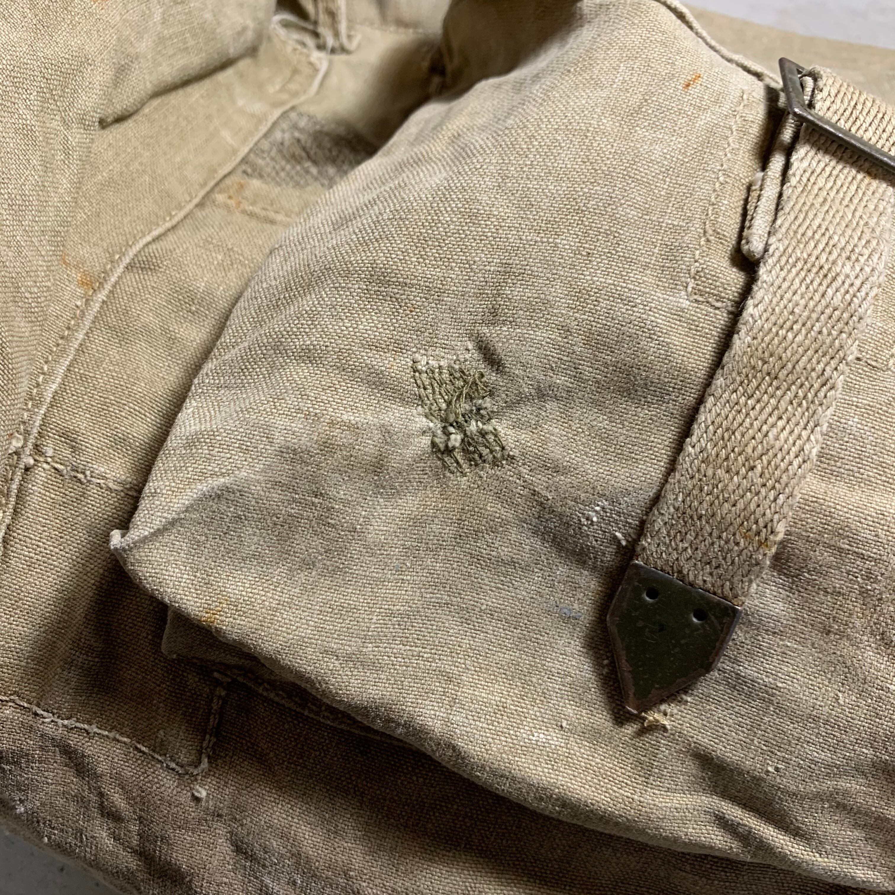 50年代のスウェーデン軍のバックパックをショルダーバックにカスタムしました。素材は分厚い丈夫なリネン。ショルダーベルトは40年代のフランス軍の物になります。
