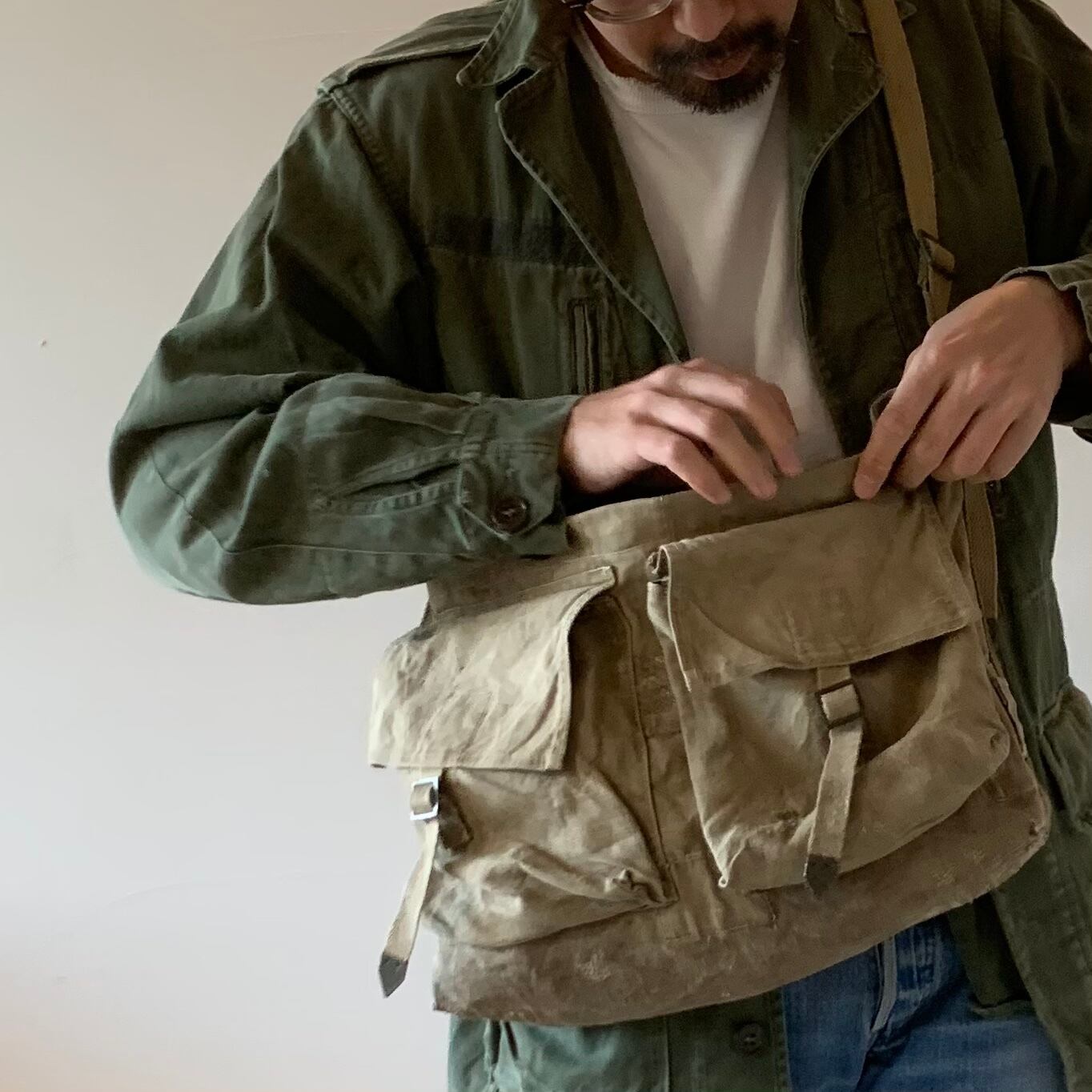 ohal / Vintage Fabric 50s Swedish Army Custom Sholder Bag