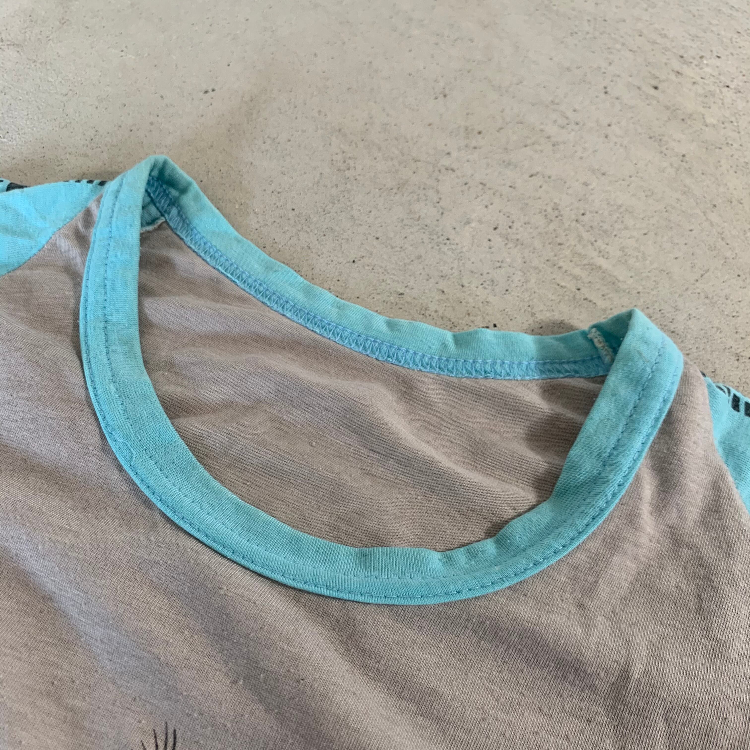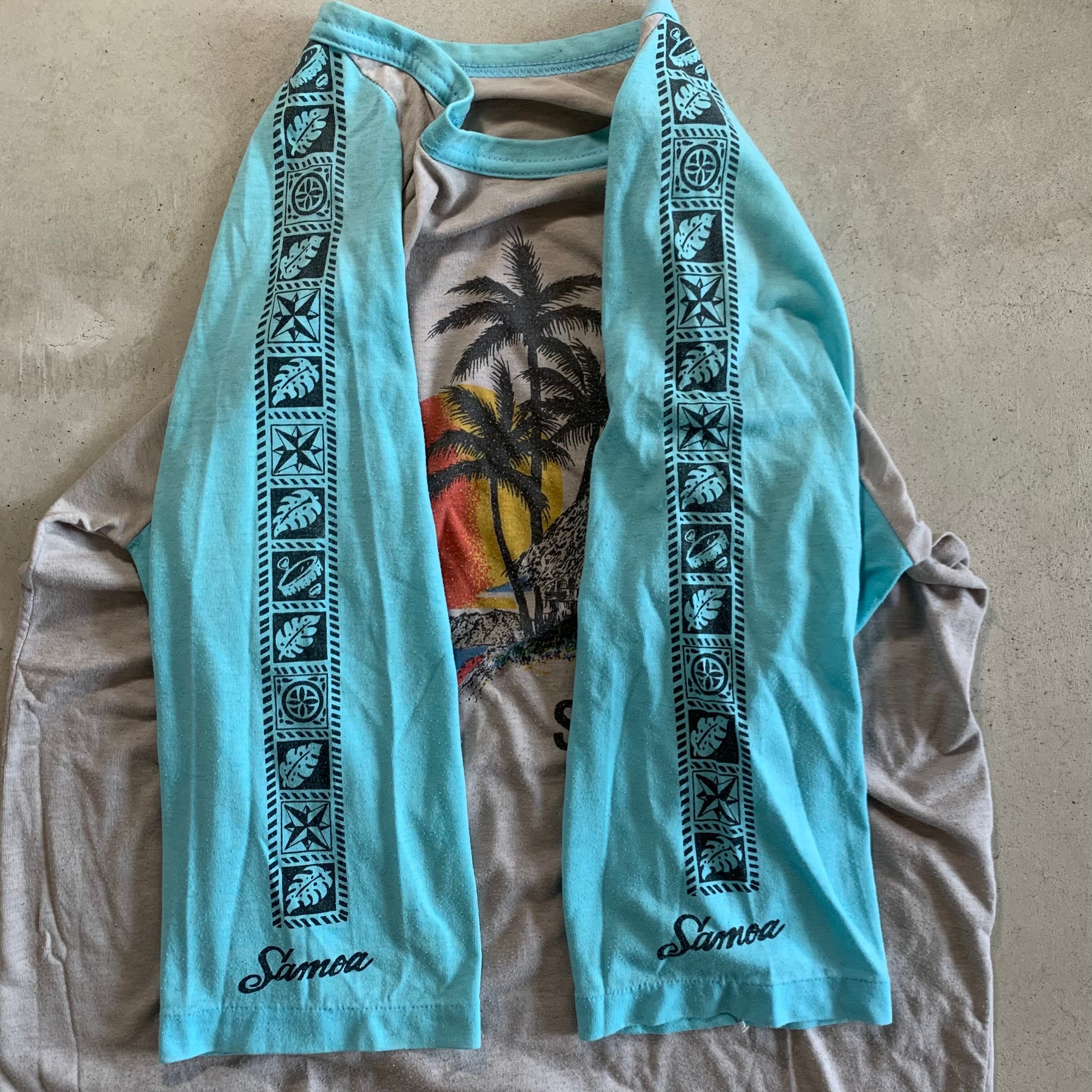 リゾート感漂う、グレーとサックスブルーの色味が珍しい一枚。