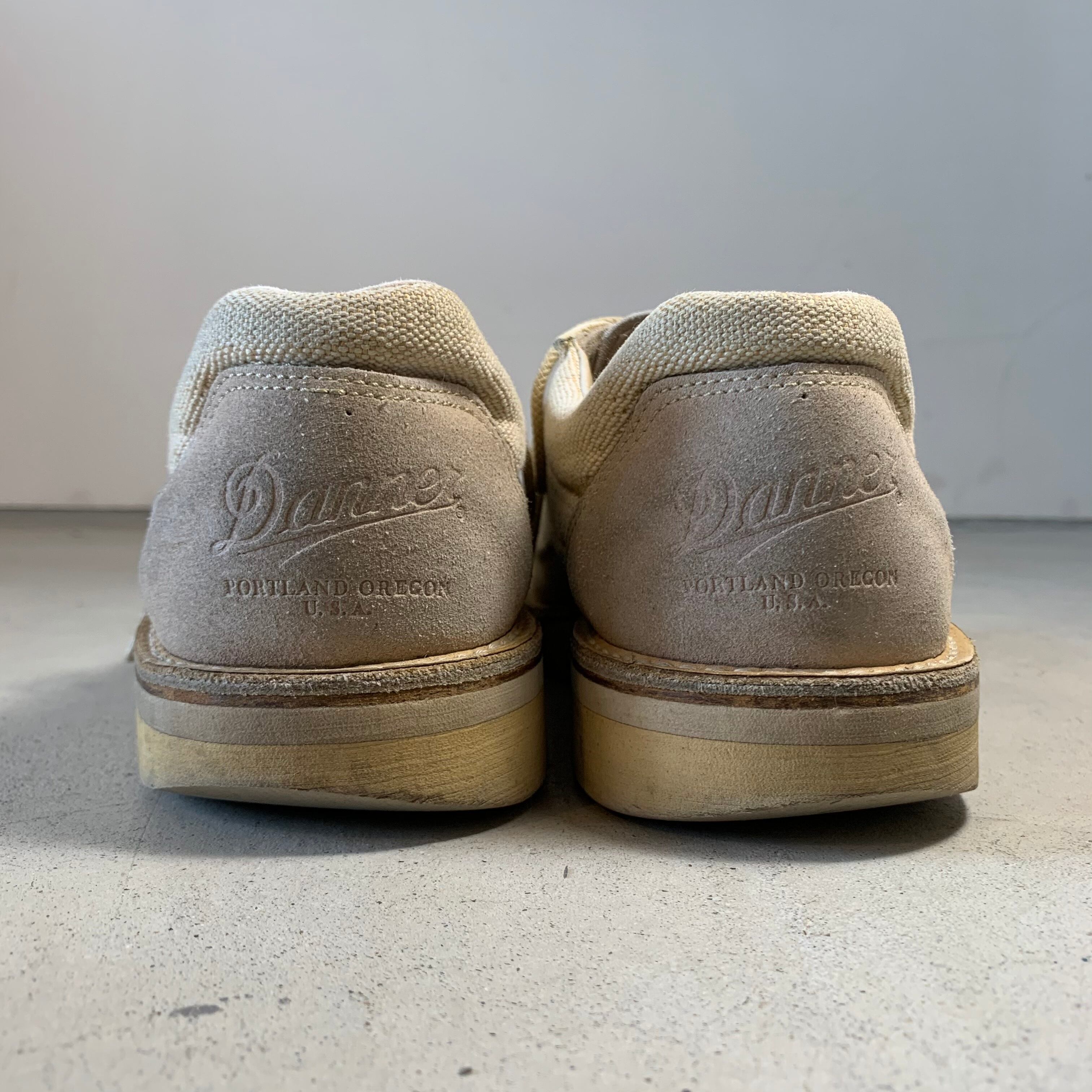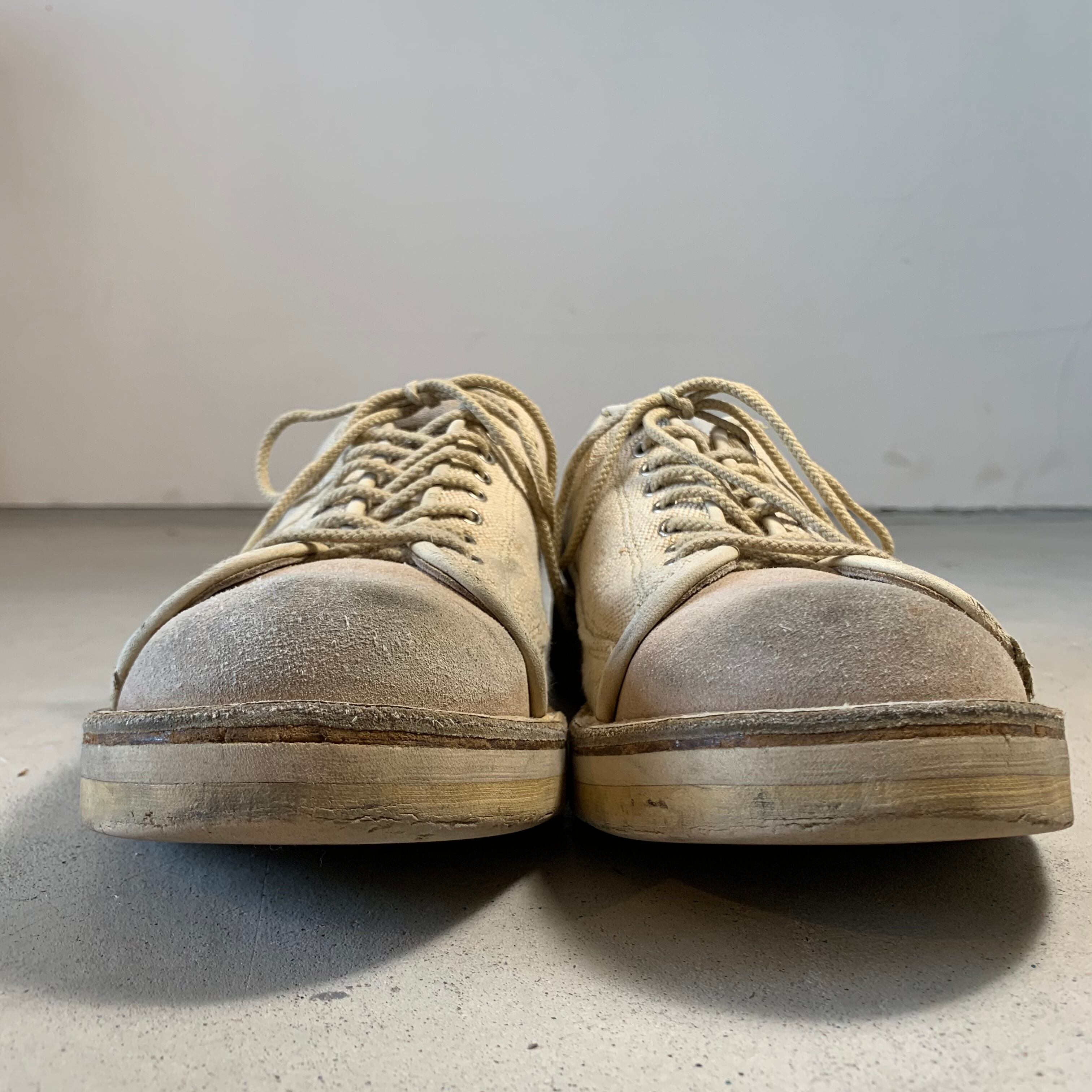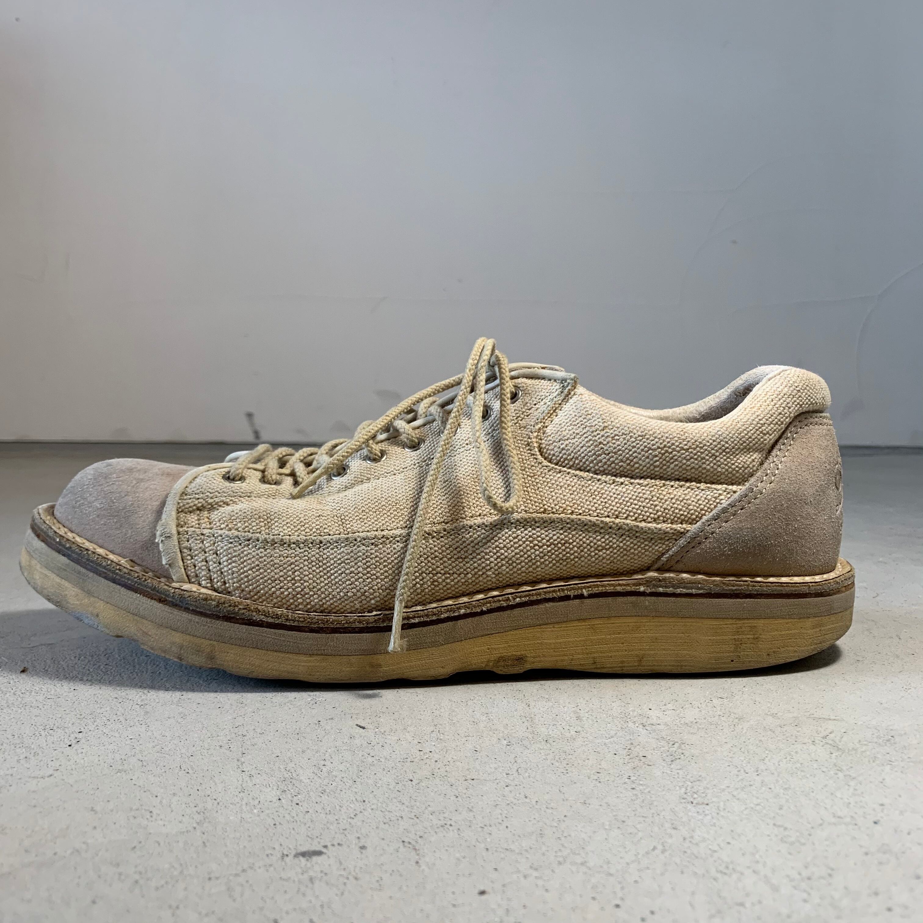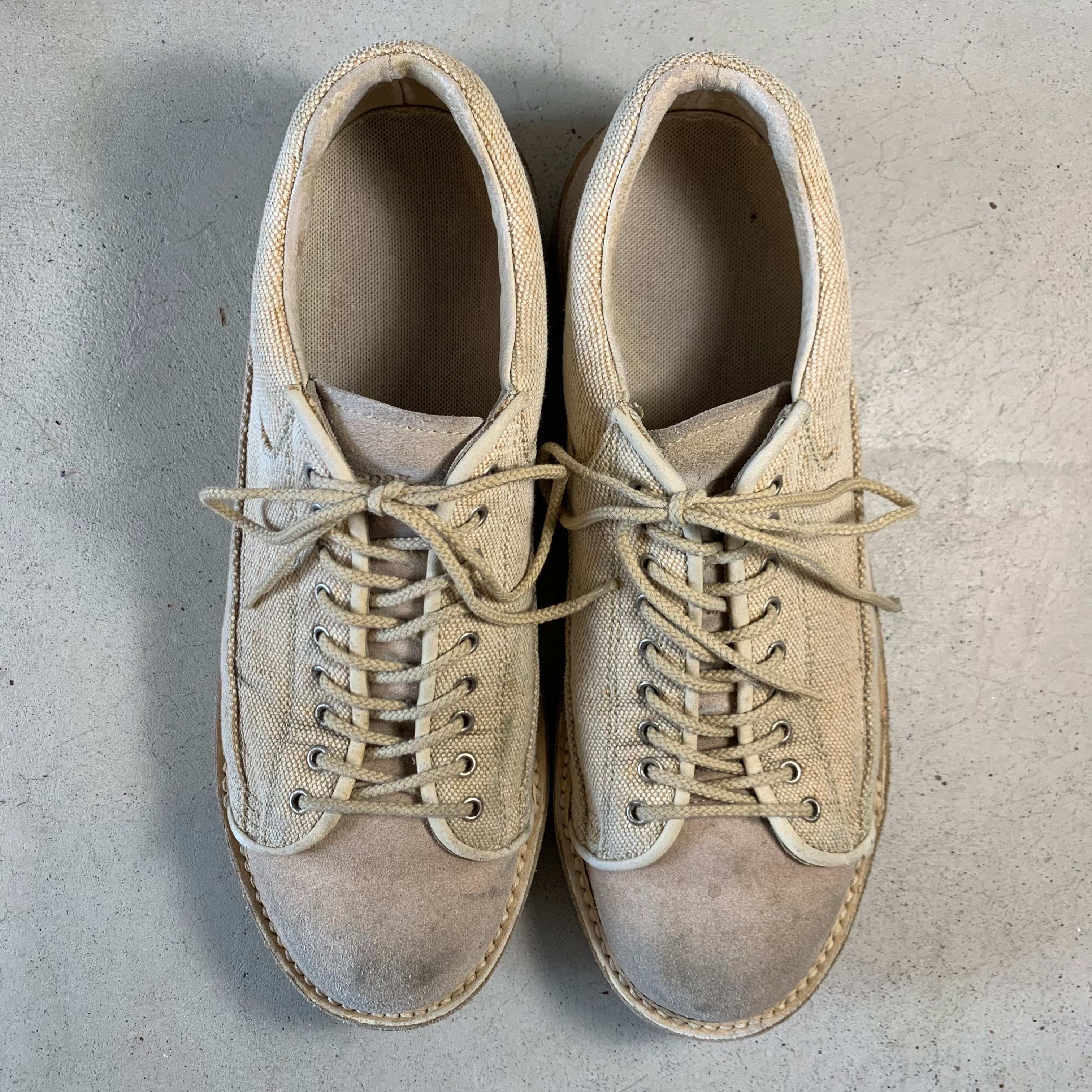ベージュのキャンバス素材と、つま先とかかと部分がスエードの切り替えになっております。
