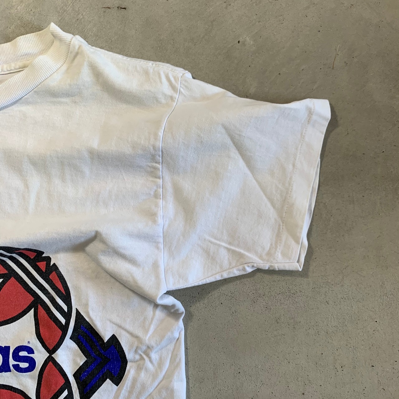 adidasの万国旗タグがつく80年代のTシャツになります。