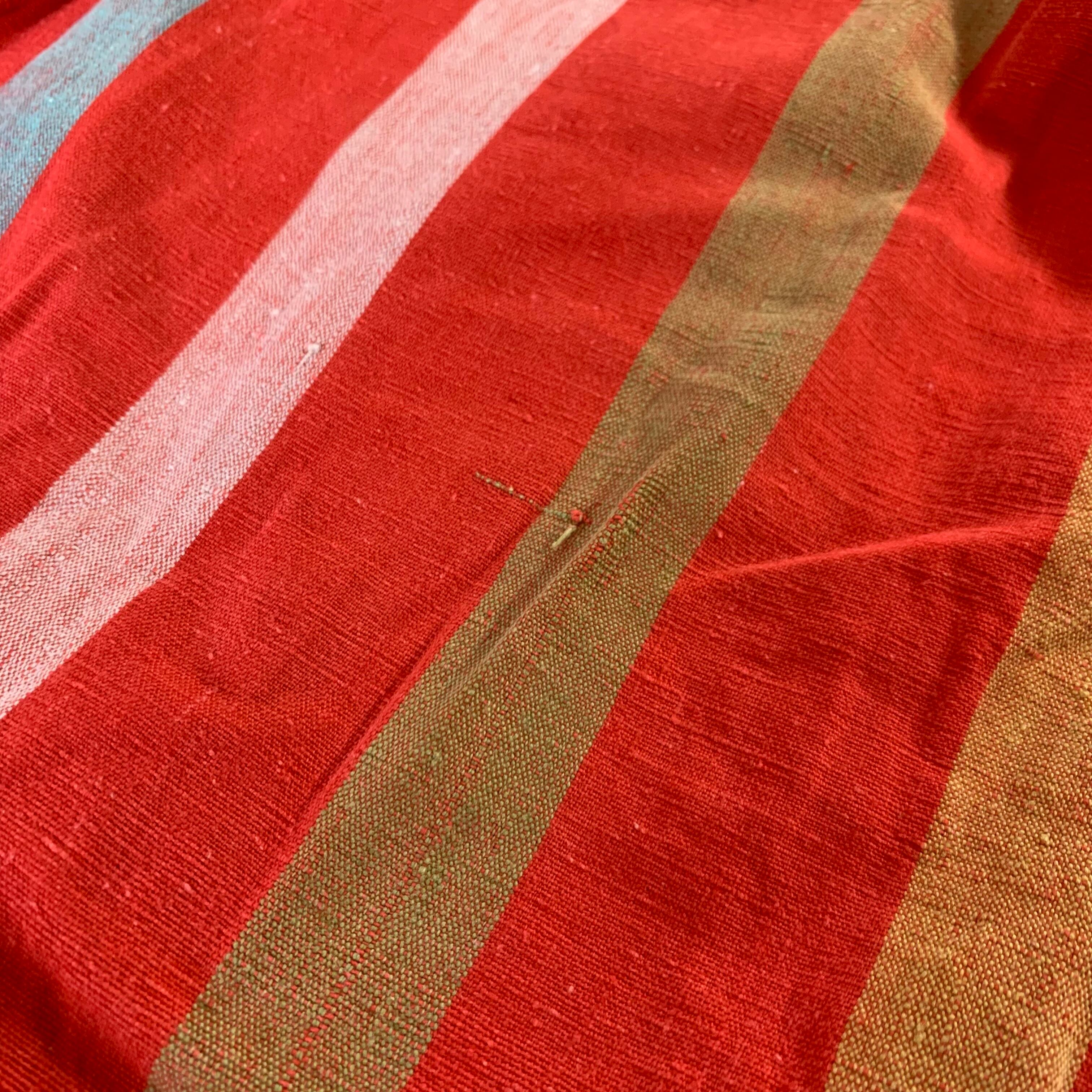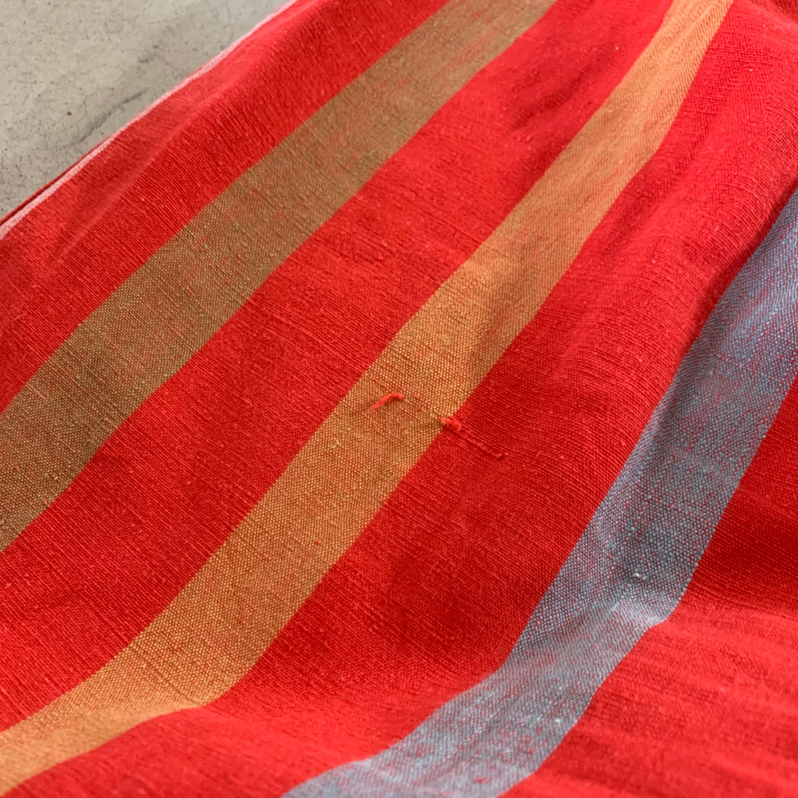背面に糸が引っ張られた感じの傷が二箇所あります。画像でご確認ください。裏側にも黒いシミがございますが、こちらの表側にはポケットがついているため、表側からはわかりません。こちらも合わせて画像でご確認ください。