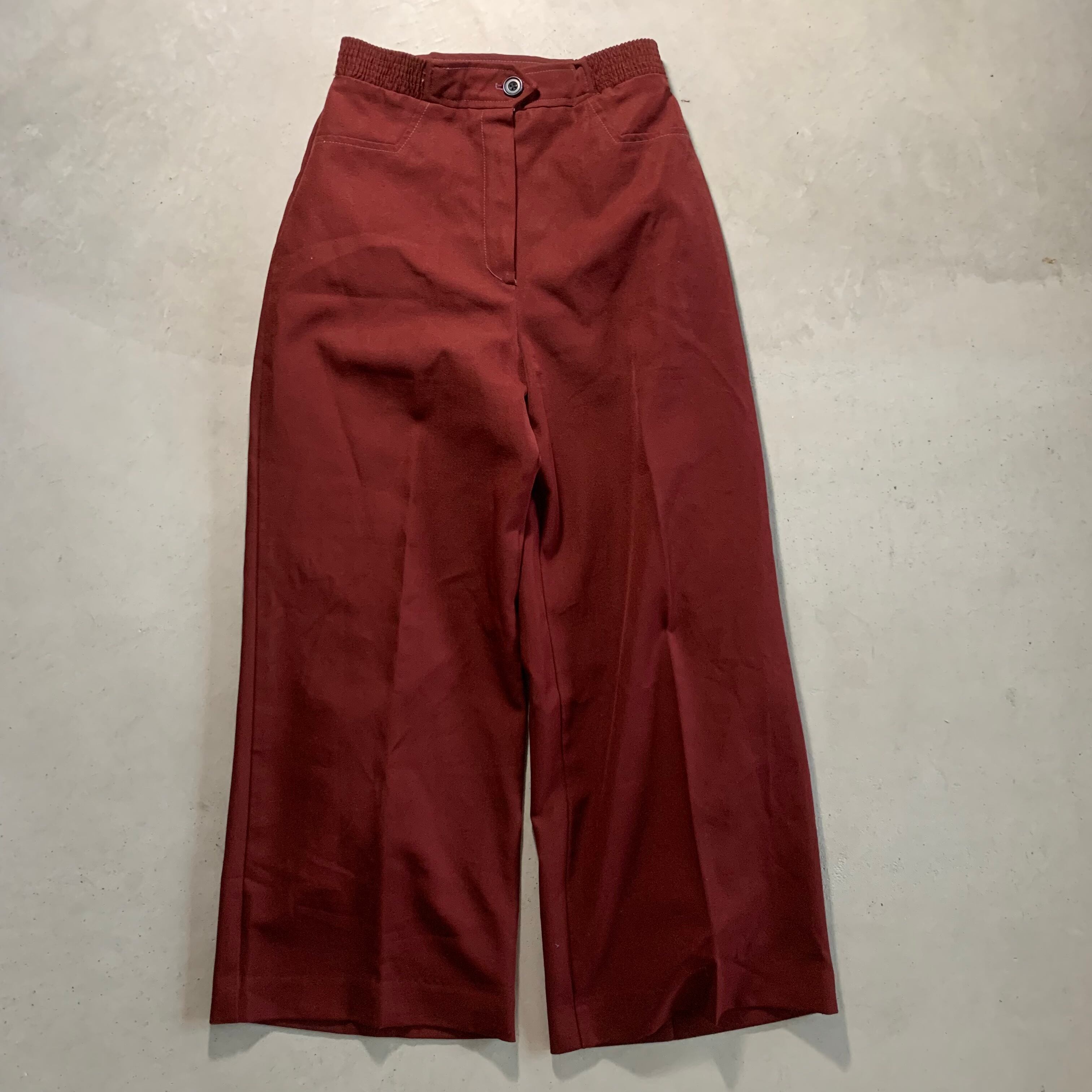 70年代頃のワイドパンツです。タグがかすれており、素材など詳細は不明ですが、触った感じからおそらくポリエステル100%かと思います。