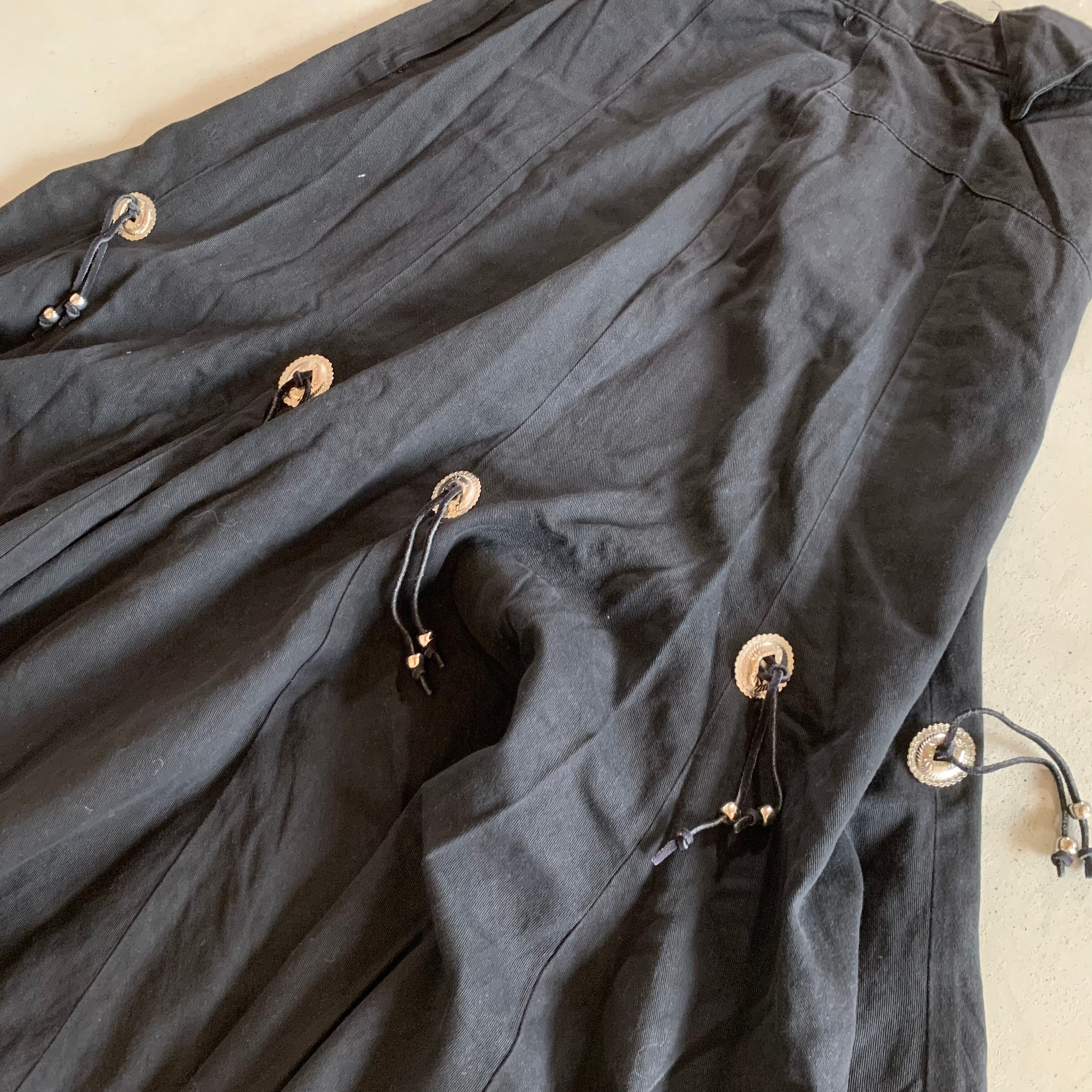 80年代頃のアメリカ製のヴィンテージロングスカート。コンチョの飾りがポイントです。