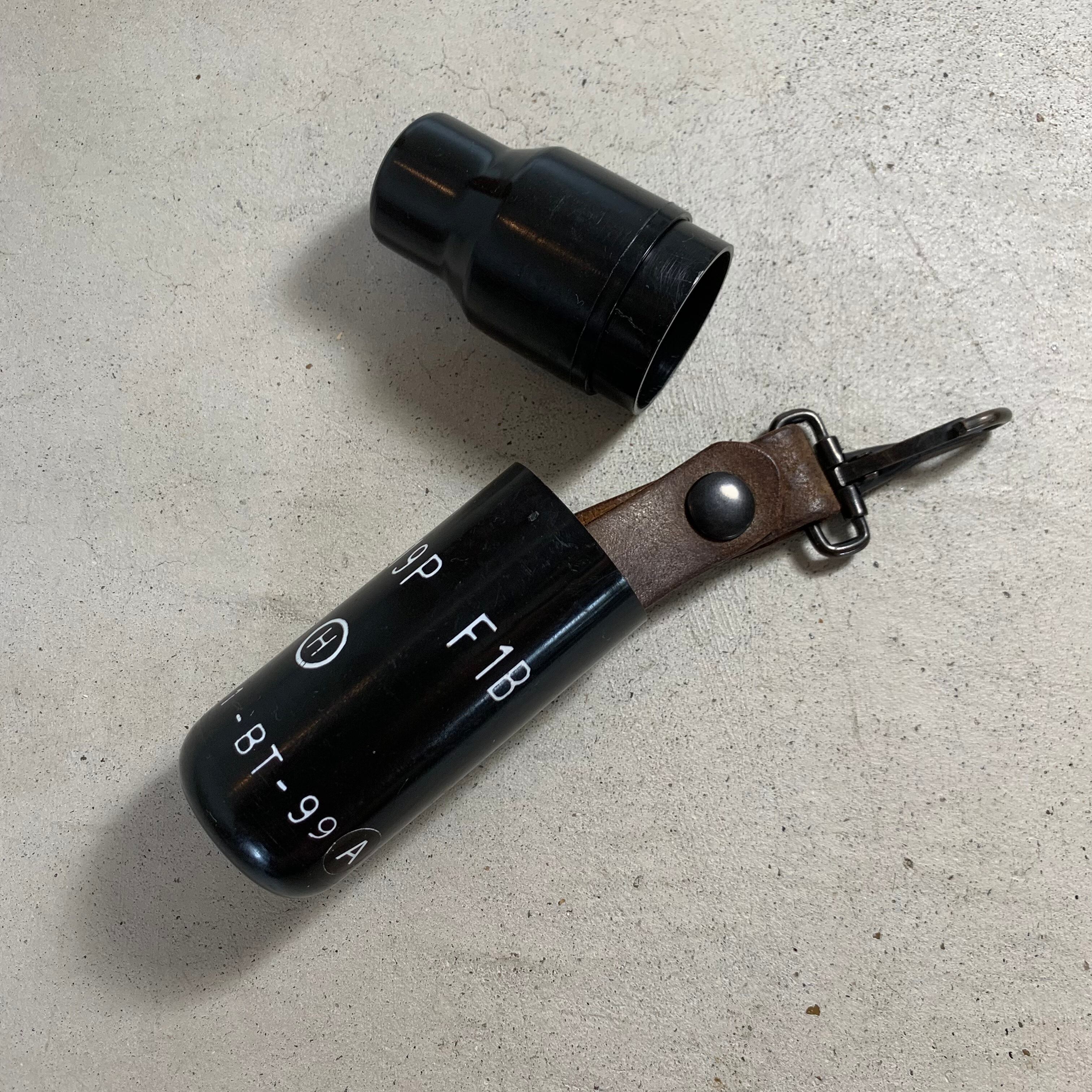 発送の際はプラスチック製のフランス軍の信管ケースに入れてお送りさせていただきます。このケースも実物です。オマケのような物ですので、傷などがございますがご了承ください。