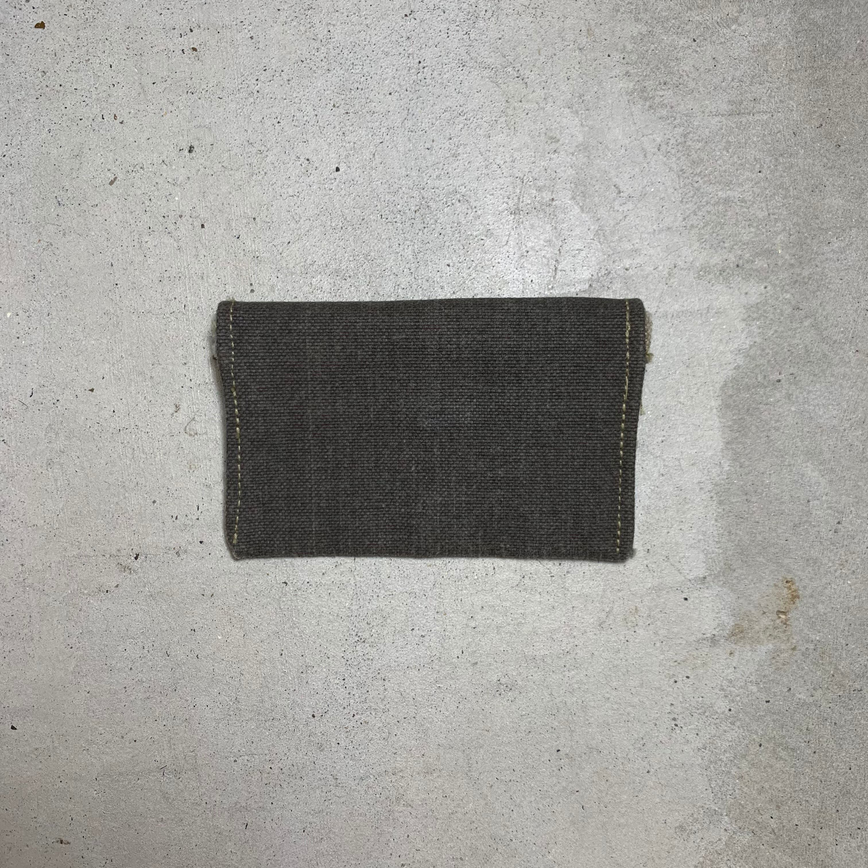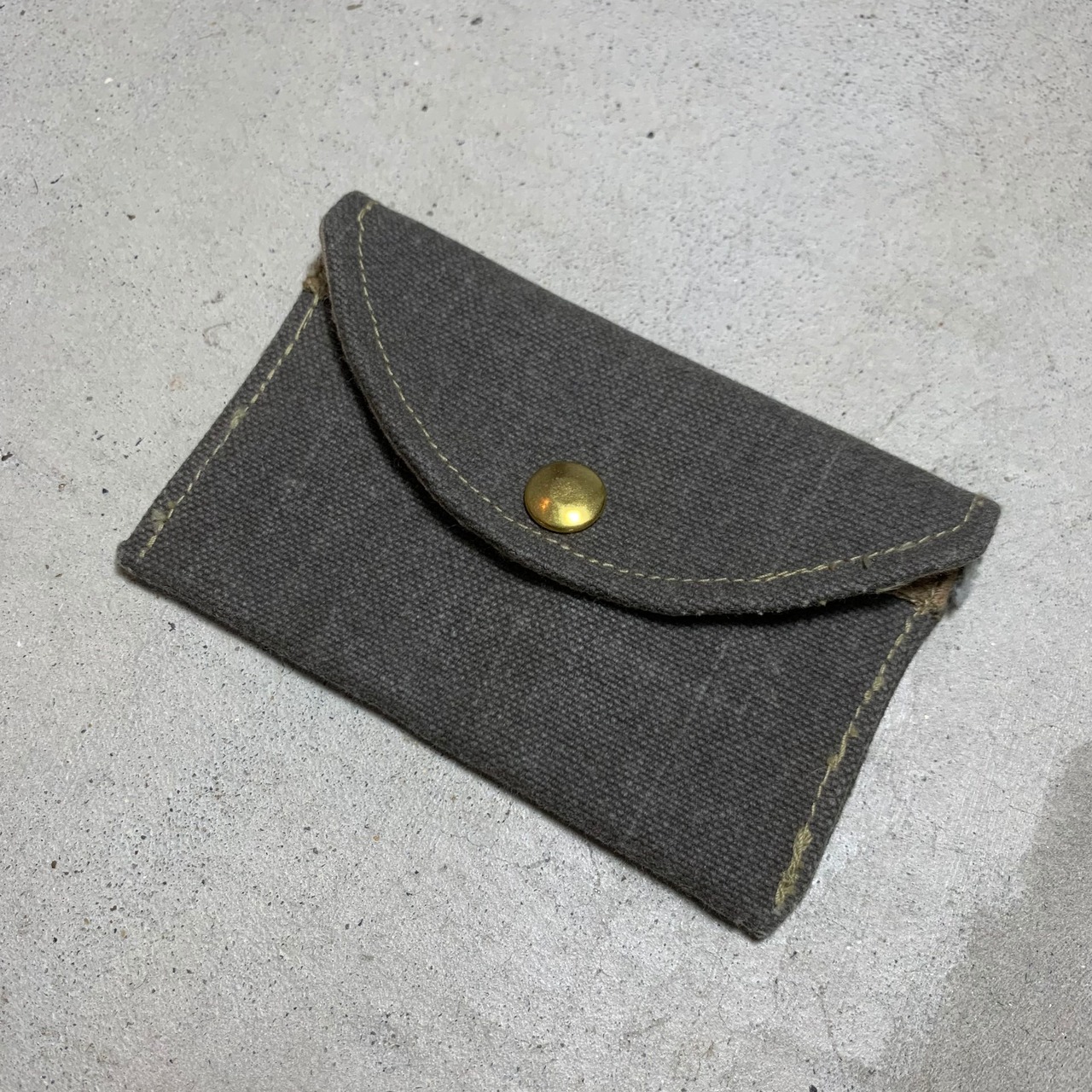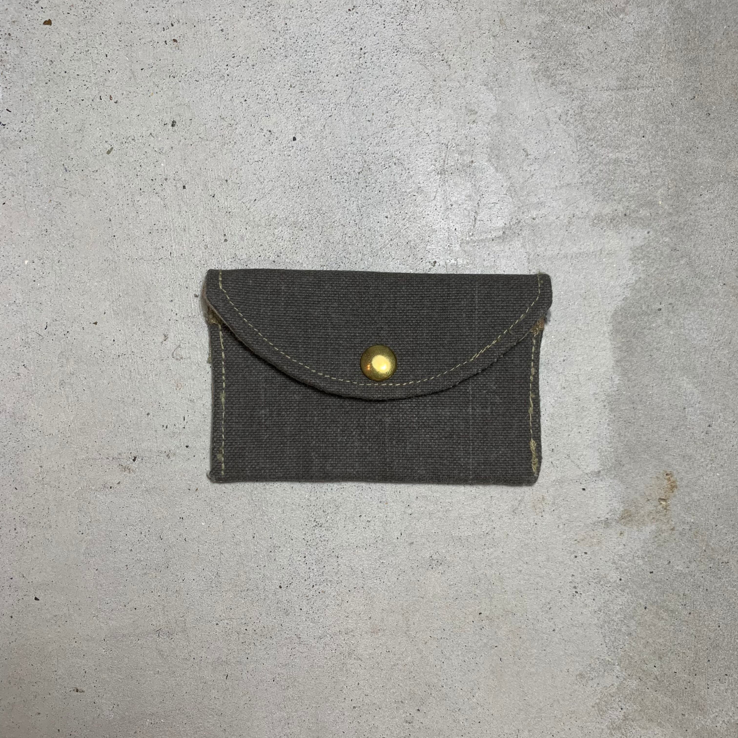 表側は60年代のスウェーデン軍のバッグで使用されていた固めのキャンバスを使用。裏地は30年代のスウェーデン軍のパンツの生地を使用。パイピングテープも同じくスウェーデン軍の物で、こちらは50年代頃に使われていた素材になります。バネホックはイタリアの『FIOCCHI(フィオッキ)』の物を使用。こちらはグッチやフェリージ、イルビソンテなどの高級ブランドが使用していた物ですが、今現在フィオッキは別会社に吸収合併され、生産されておらず、デッドストックのみの貴重な資材になります。素材は真鍮です。パチンと止めた感覚が非常に気持ちのいいバネホックです。