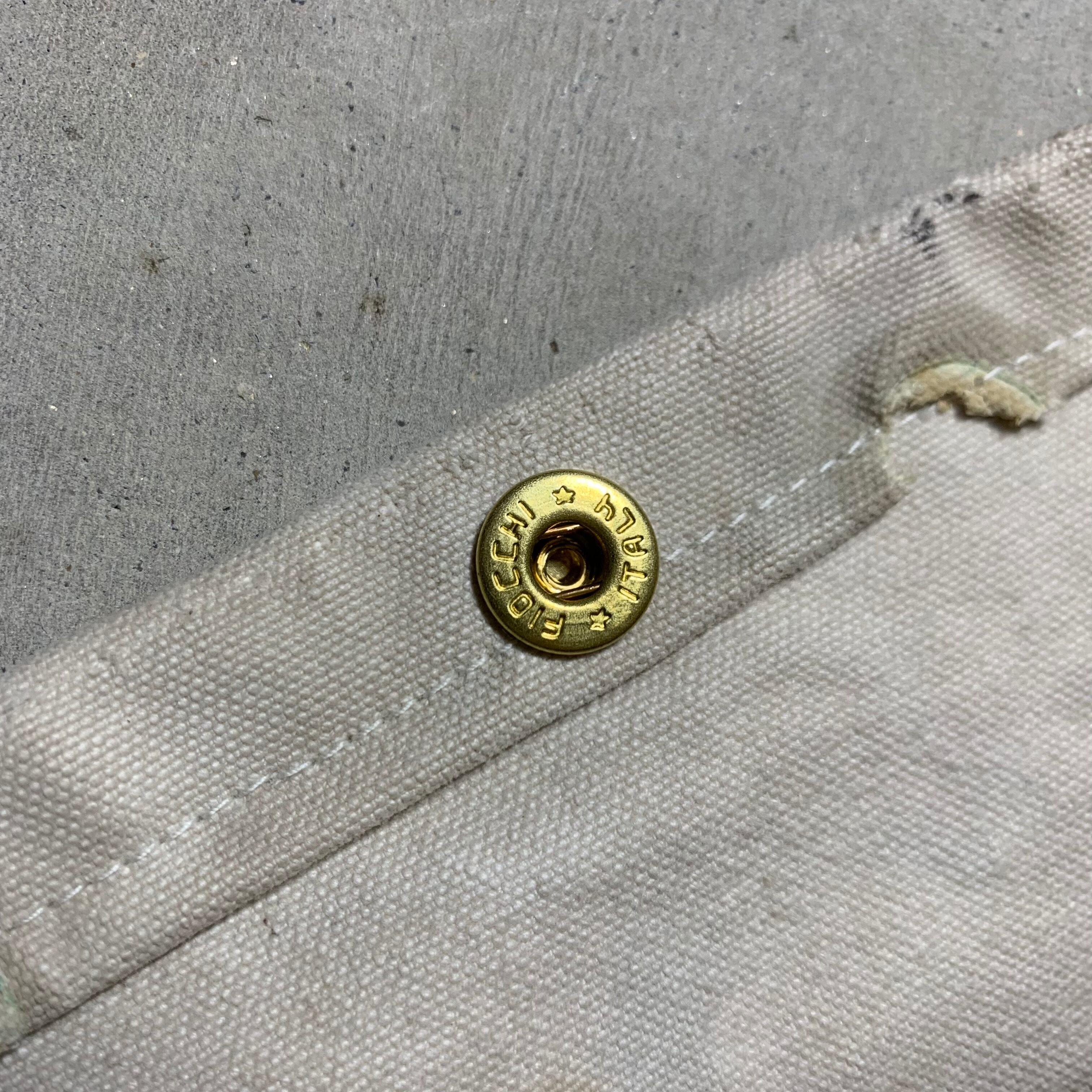 スナップボタンはイタリアの『FIOCCHI(フィオッキ)』の物を使用。こちらはグッチやフェリージ、イルビソンテなどの高級ブランドが使用していた物ですが、今現在フィオッキは別会社に吸収合併され、生産されておらず、デッドストックのみの貴重な資材になります。素材は真鍮です。パチンと止めた感覚が非常に気持ちのいいスナップボタンです。