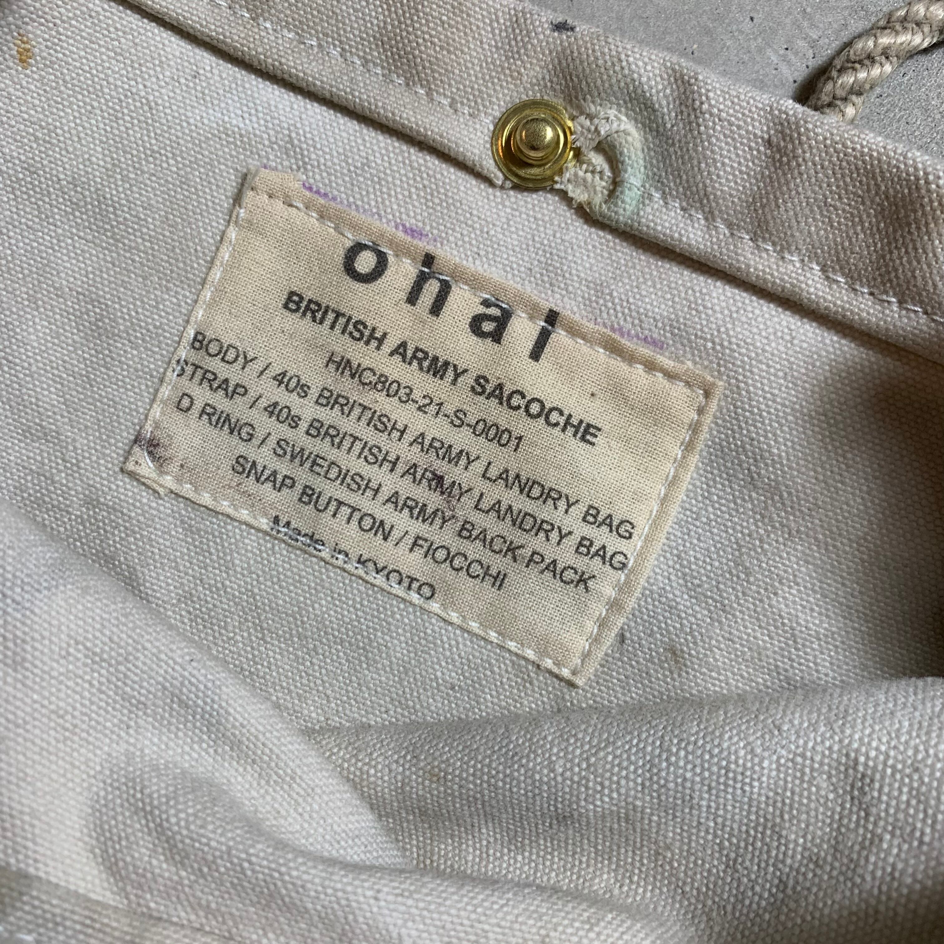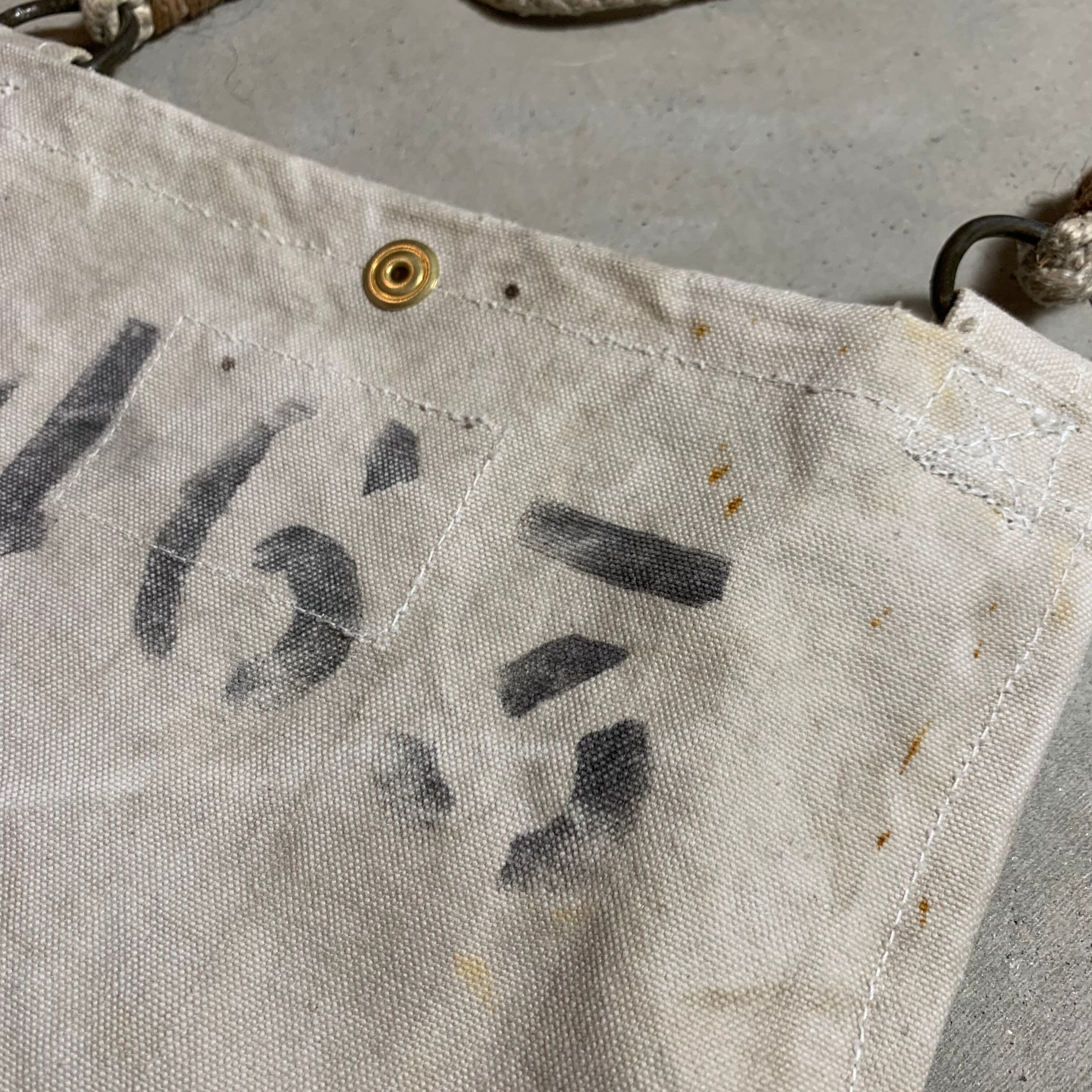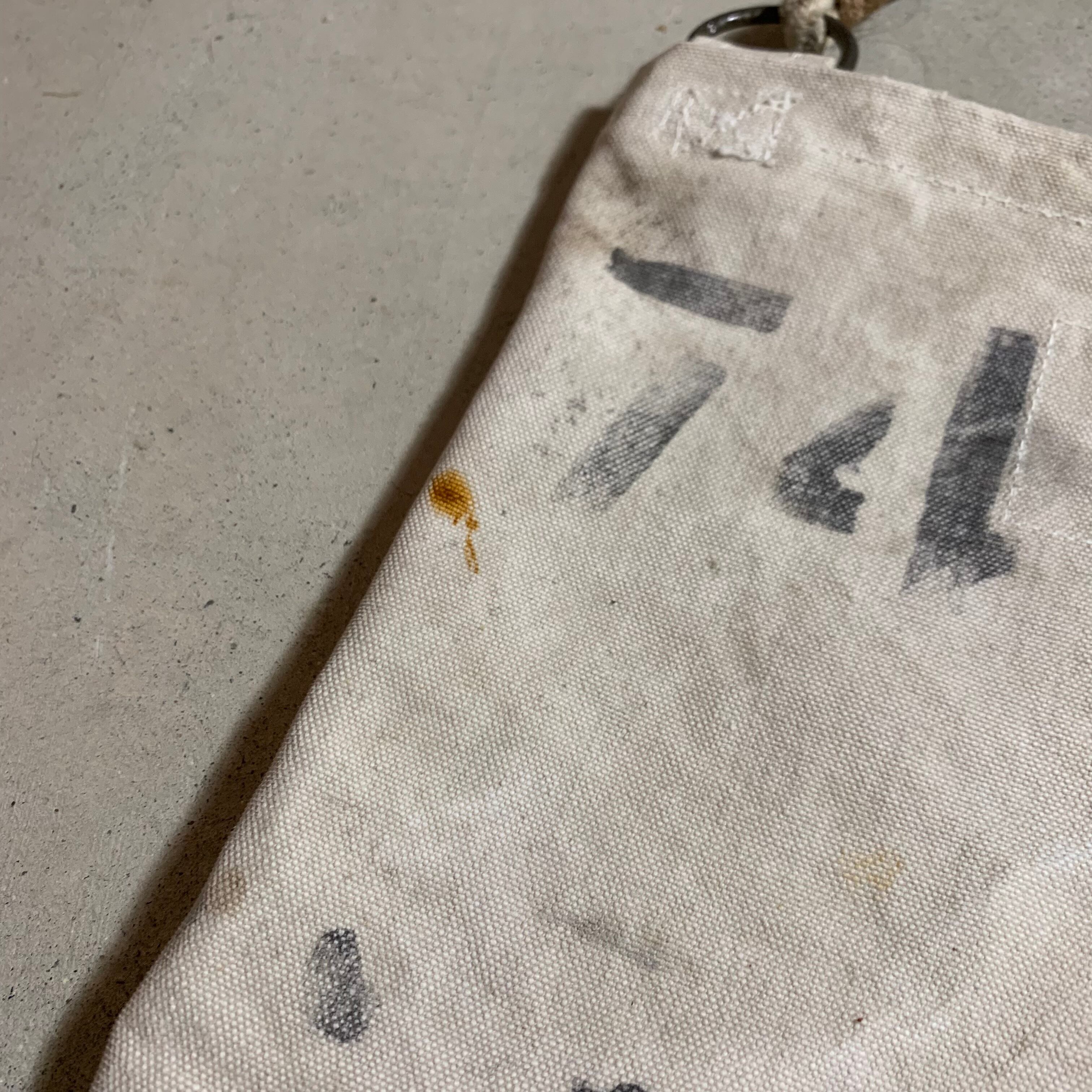 ボディーの生地は40年代の英軍のランドリーバッグです。ペイントされていた部分を大胆に切り取り、一点物のサコッシュに仕上げました。