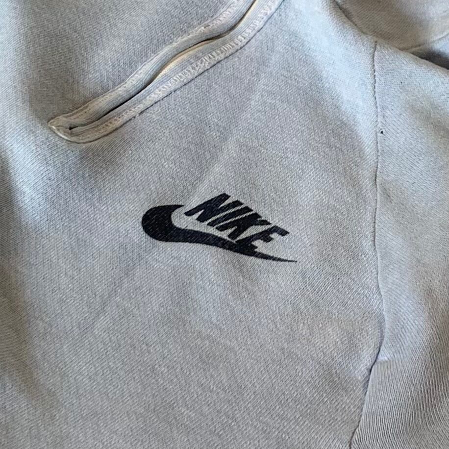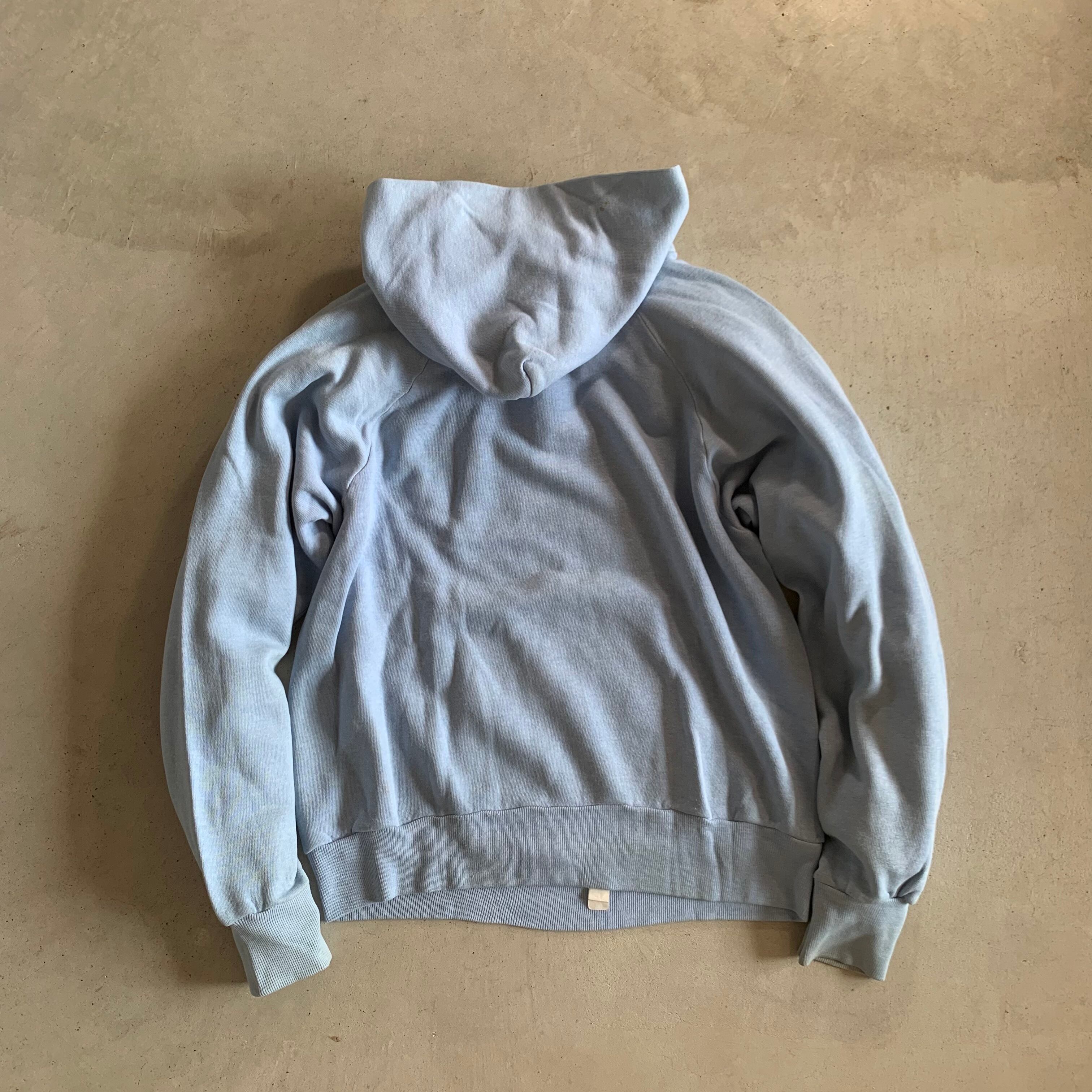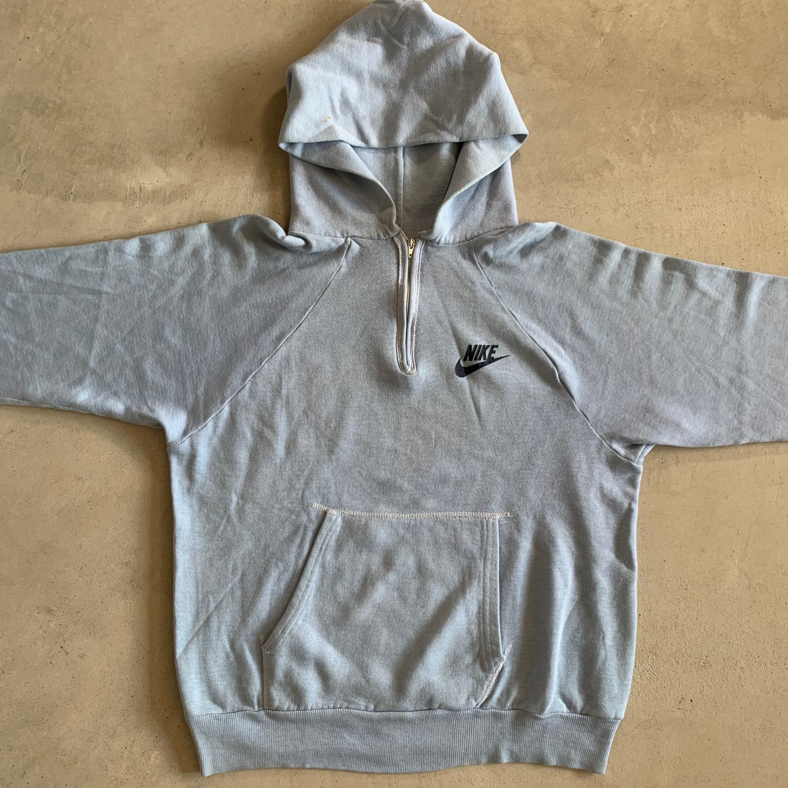 80年代のオレンジスウォッシュのタグがつくNIKEのハーフジップパーカーです。色はサックスブルーです。