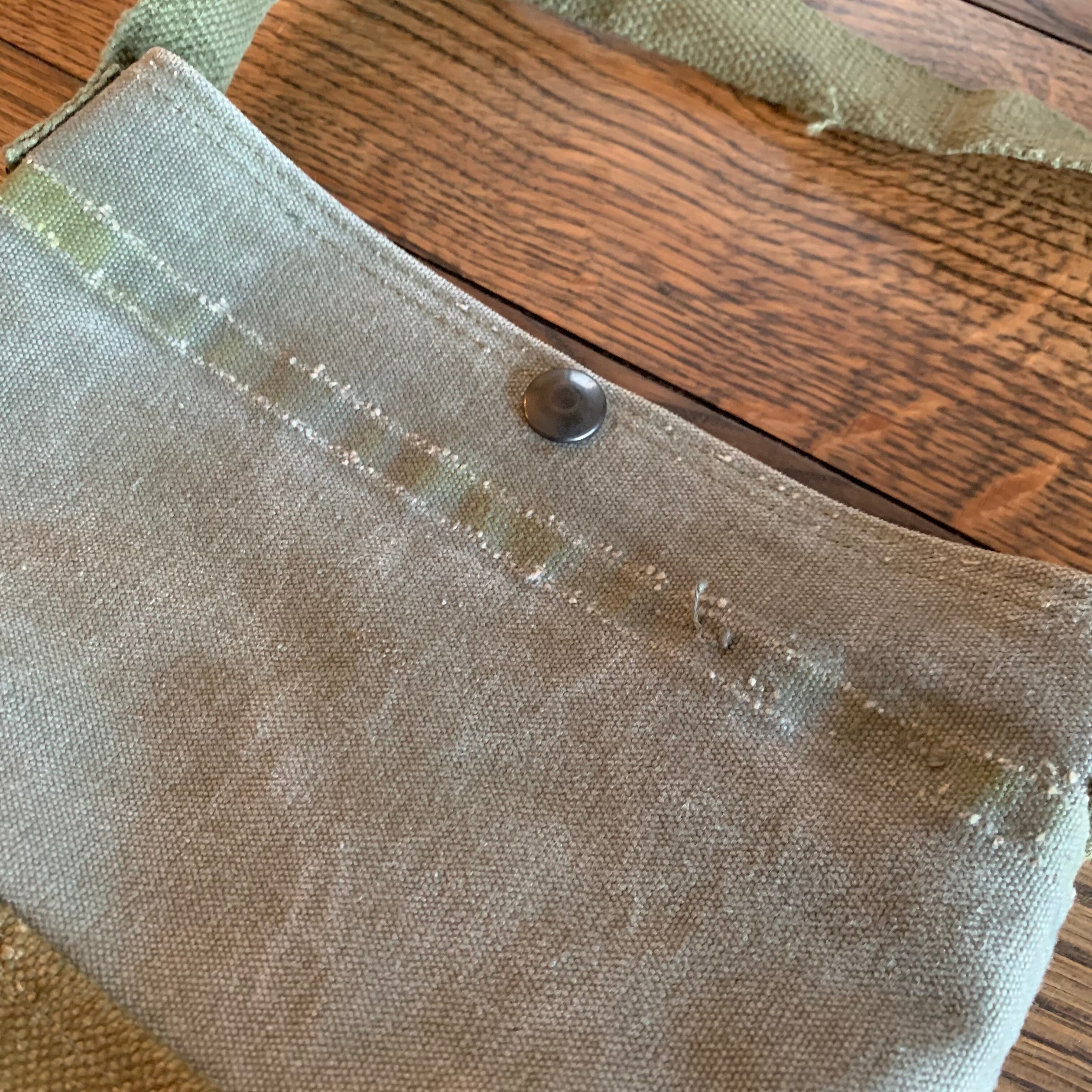米軍のUSAFのフライヤーズキットバッグの生地を使いサコッシュを作成しました。独特なカーキの色合いで雰囲気が抜群に良いです。ボトムのパッチワークはユーロミリタリーの端切れを使用しております。