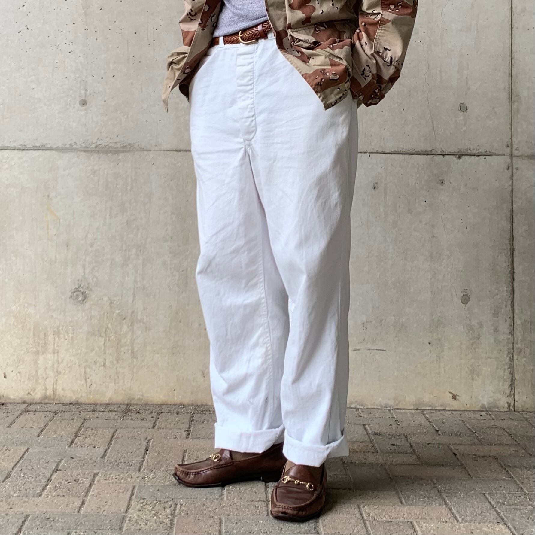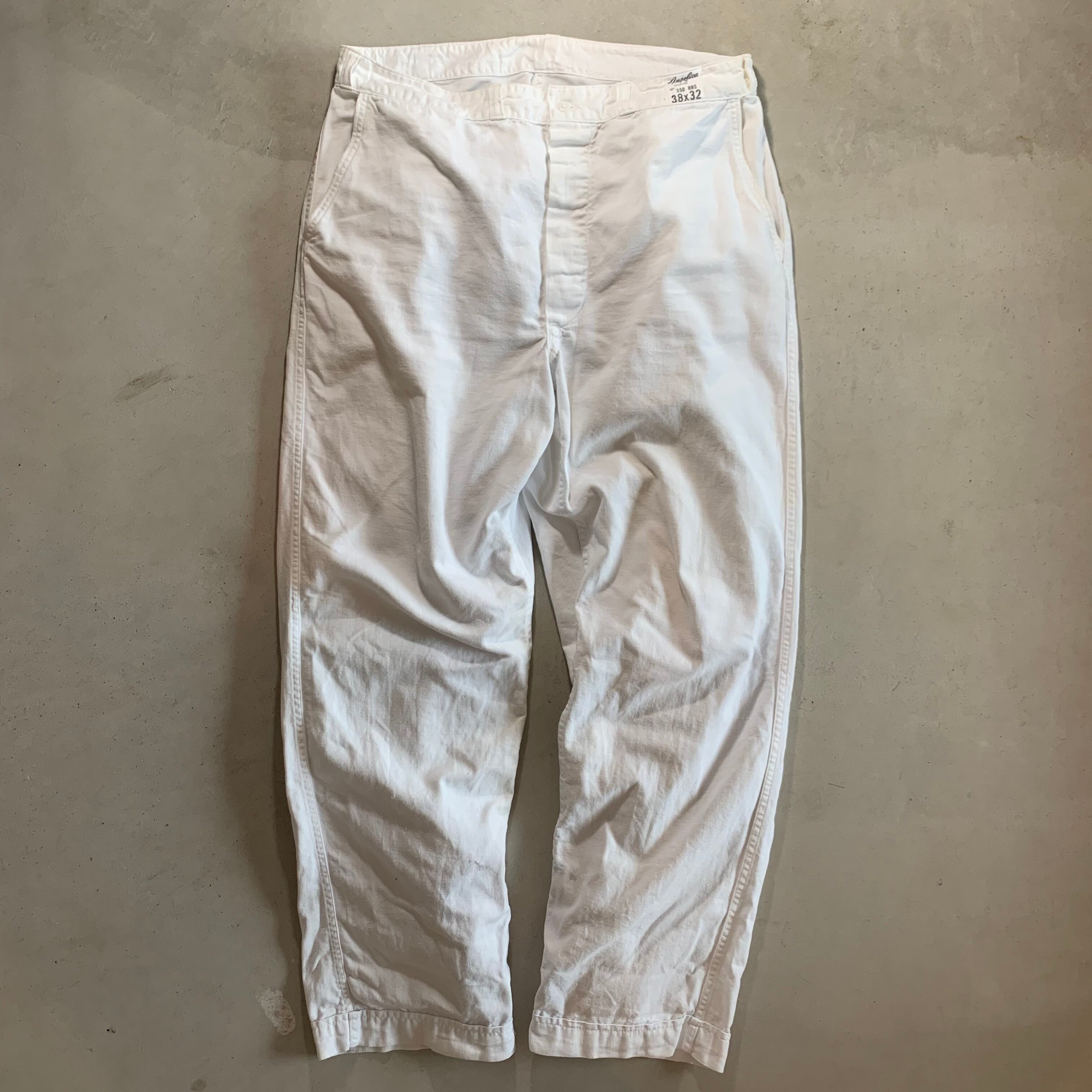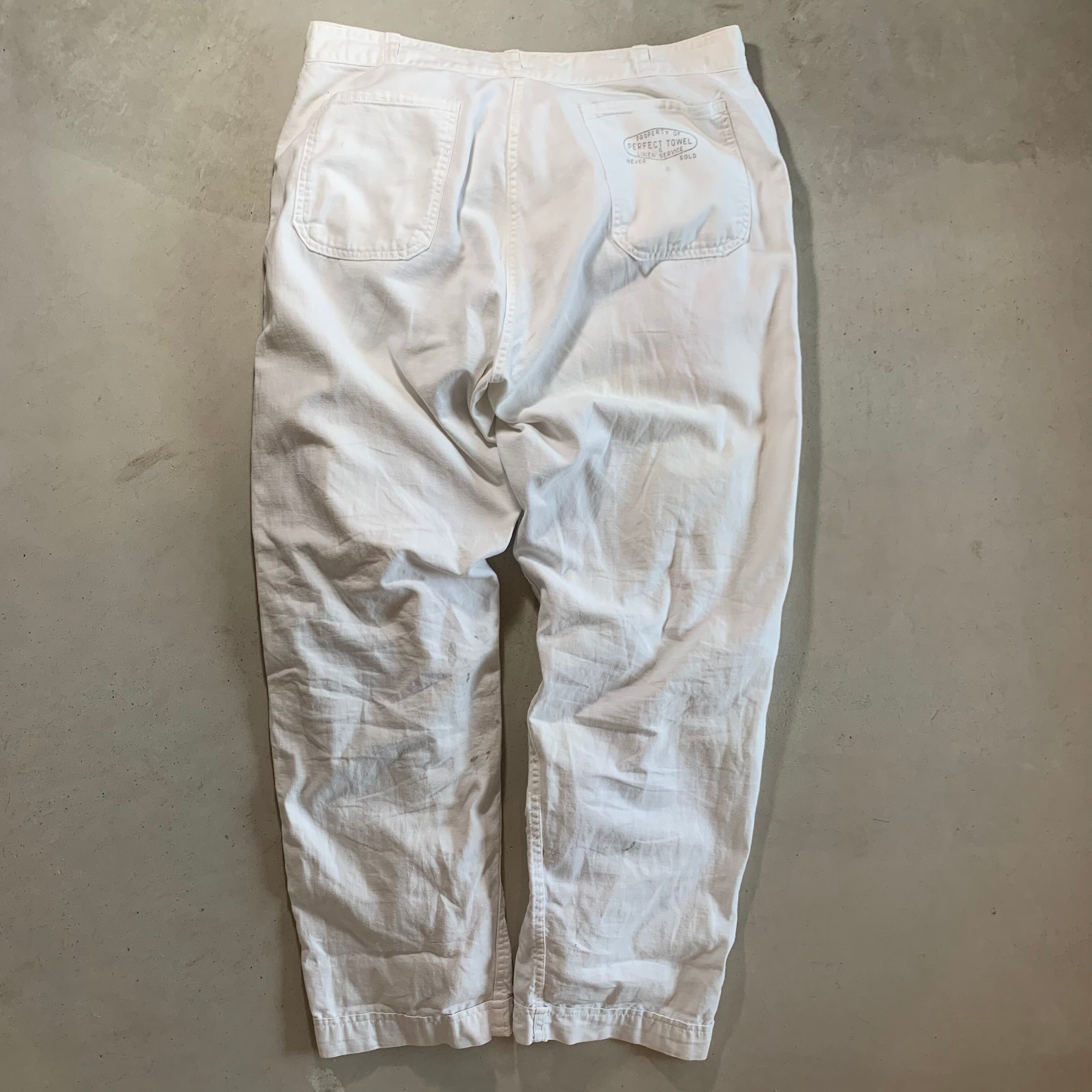 アメリカの老舗ブランド、アンジェリカのワークパンツ。50〜60年代の白のコットン素材で雰囲気抜群。