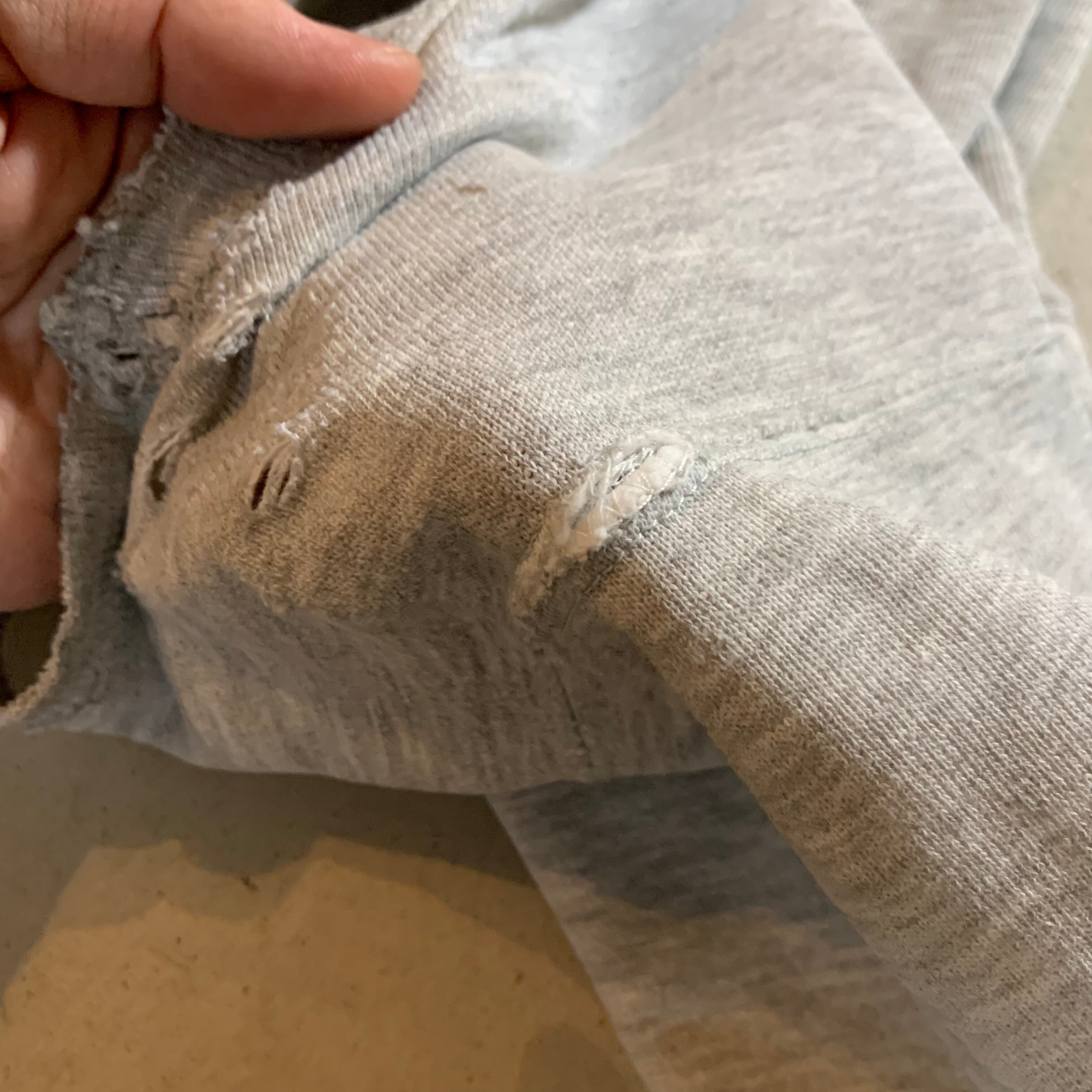 ロゴは染み込みプリントでヴィンテージの雰囲気満載です。かなりのダメージはありますが、新品では絶対に出せないヴィンテージならではのオーラがあります。