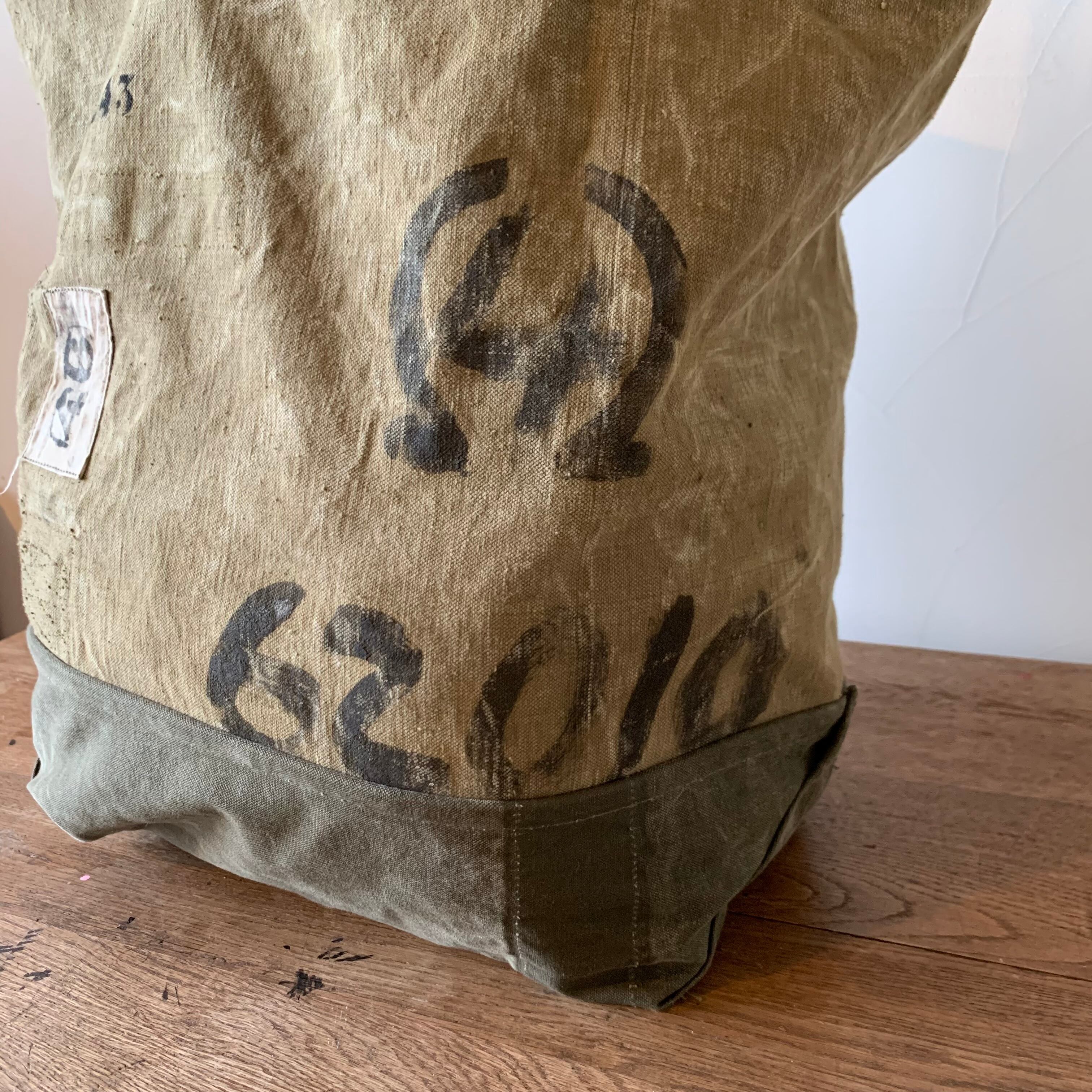 ボディーは50〜60年代頃のフランス軍のダッフルバッグ。この時代の独特なクタッとしたリネン素材が特徴。