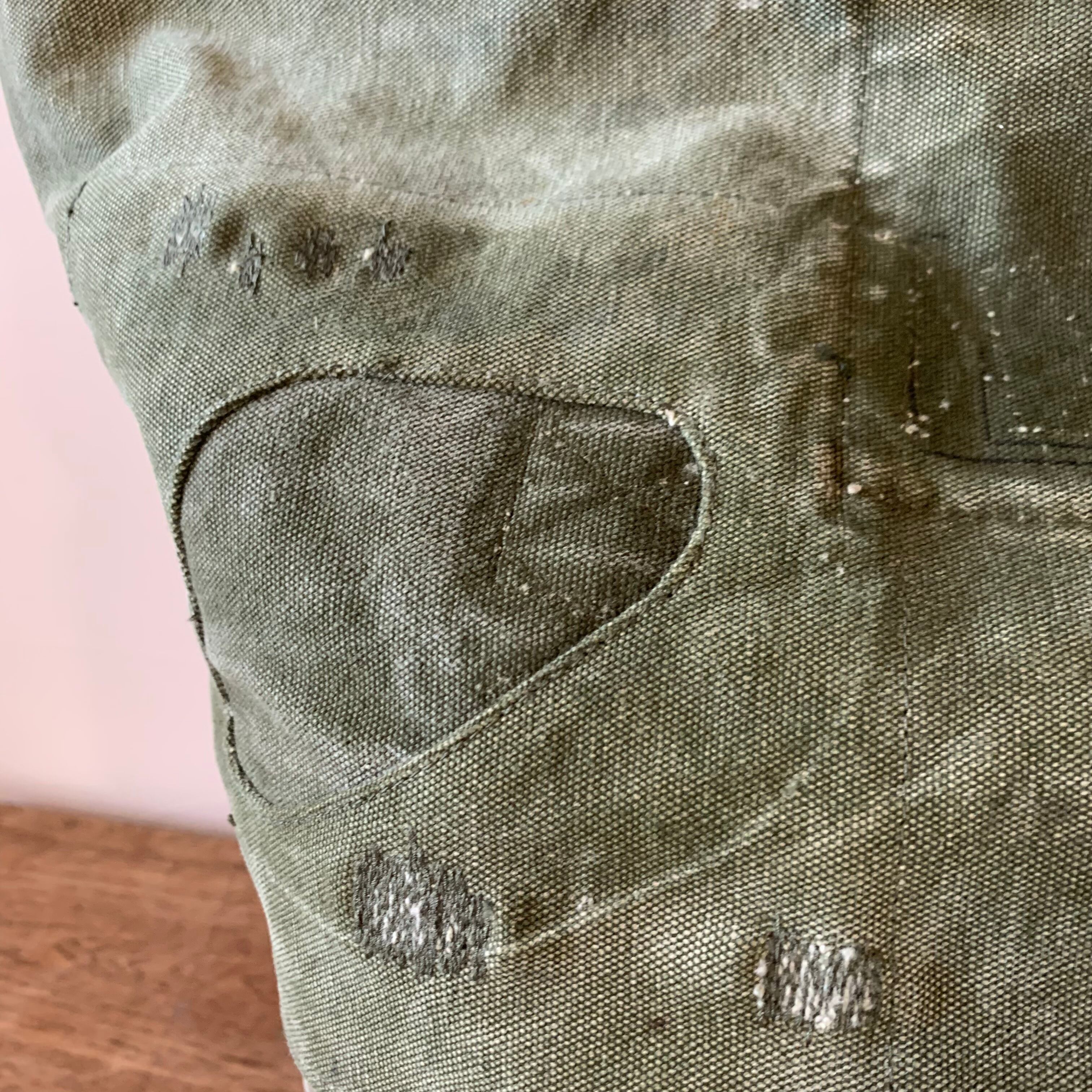 穴があいてしまったなどのトラブルはヴィンテージの生地でのパッチワークや、たたいて補修をいたします。