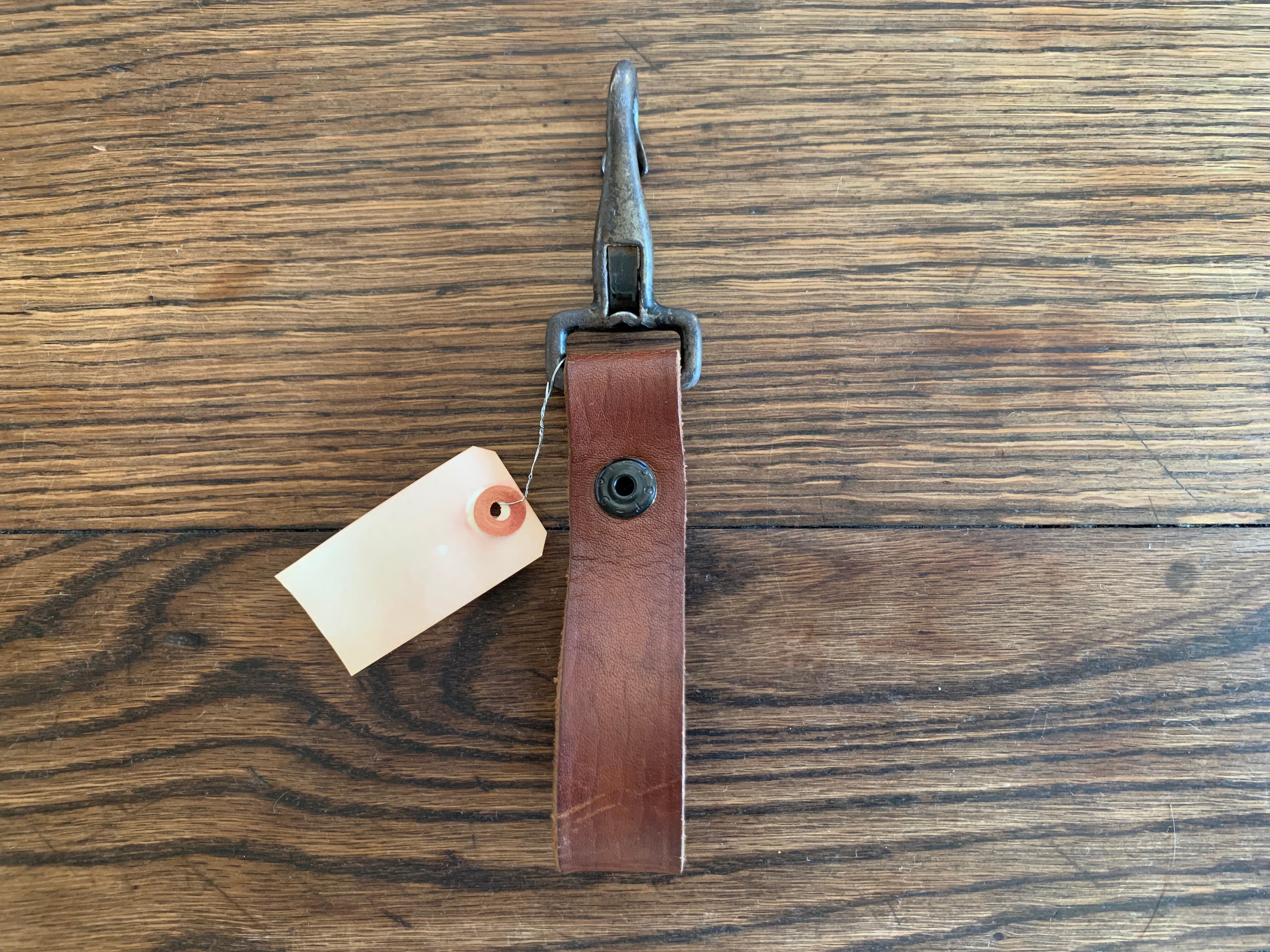 大ぶりのナスカンは、50年代のUS ARMYのダッフルバッグに使われていたヴィンテージのナスカンを使用。レザーストラップは70〜80年代頃のユーロミリタリーレザーベルトをカットし磨いた物をつけています。