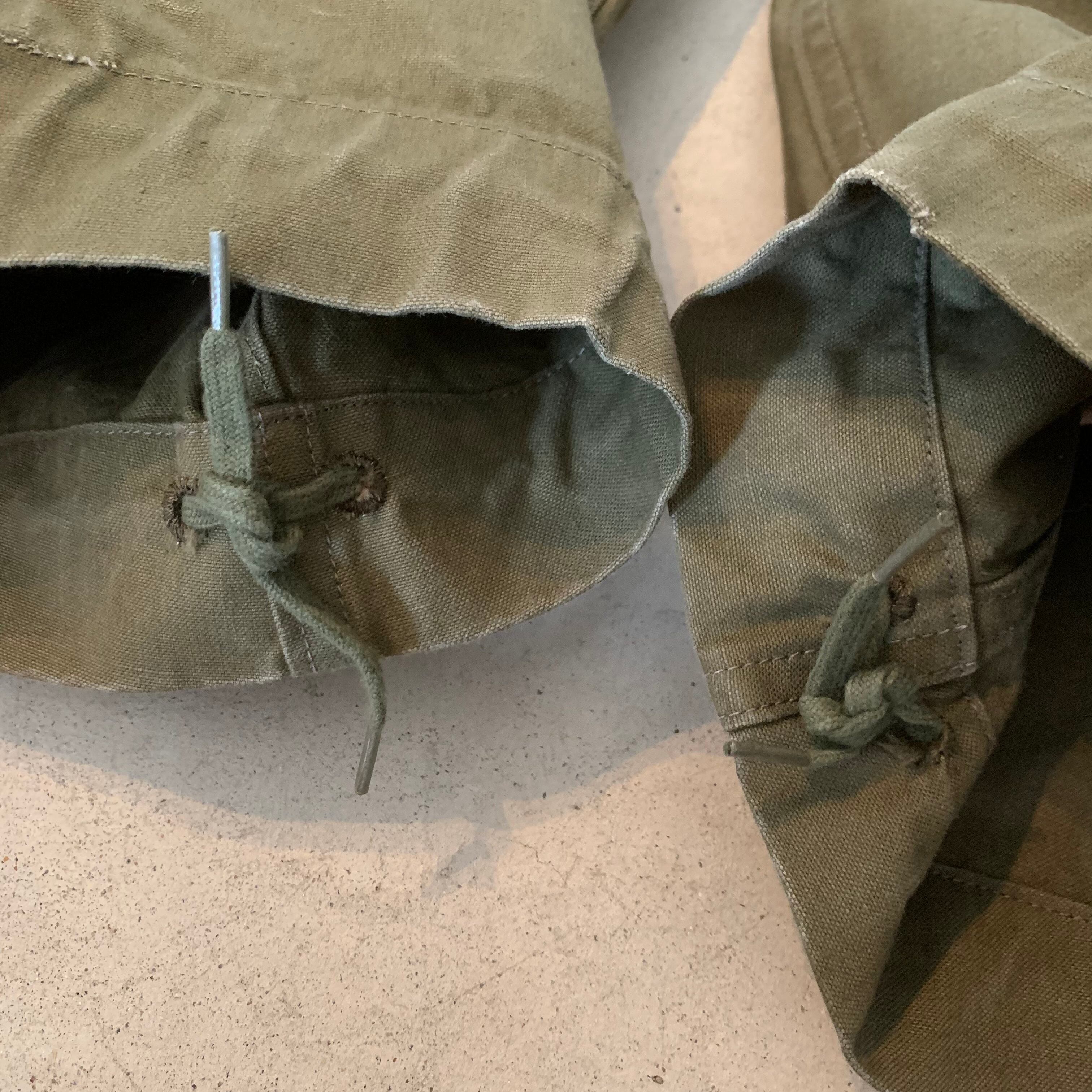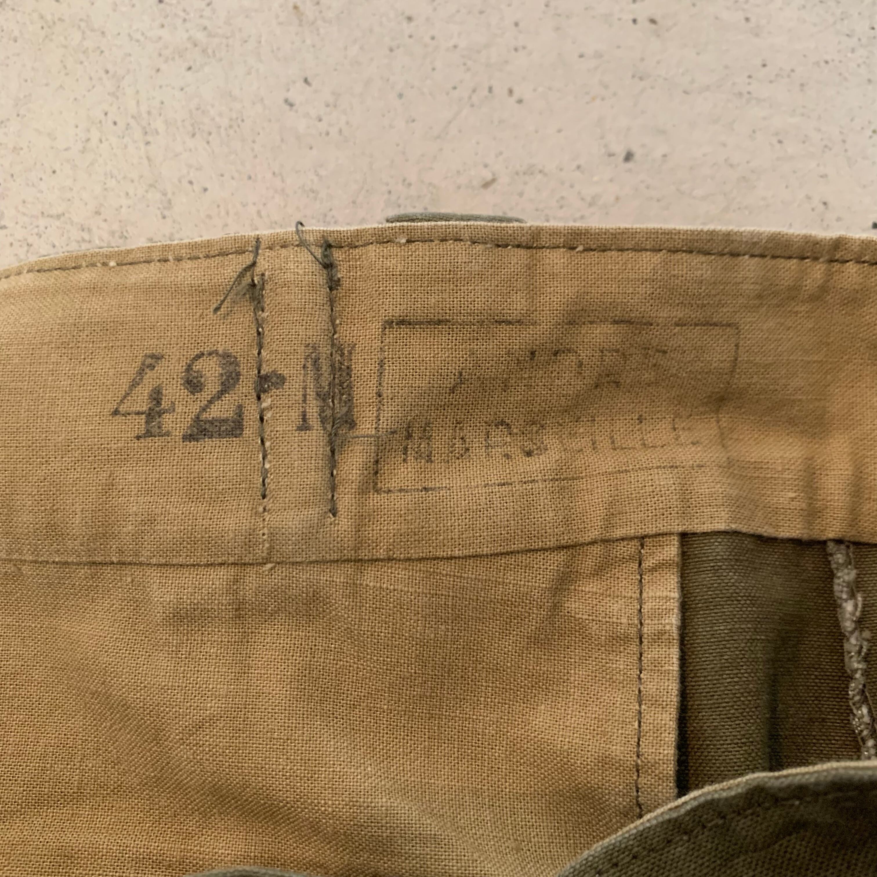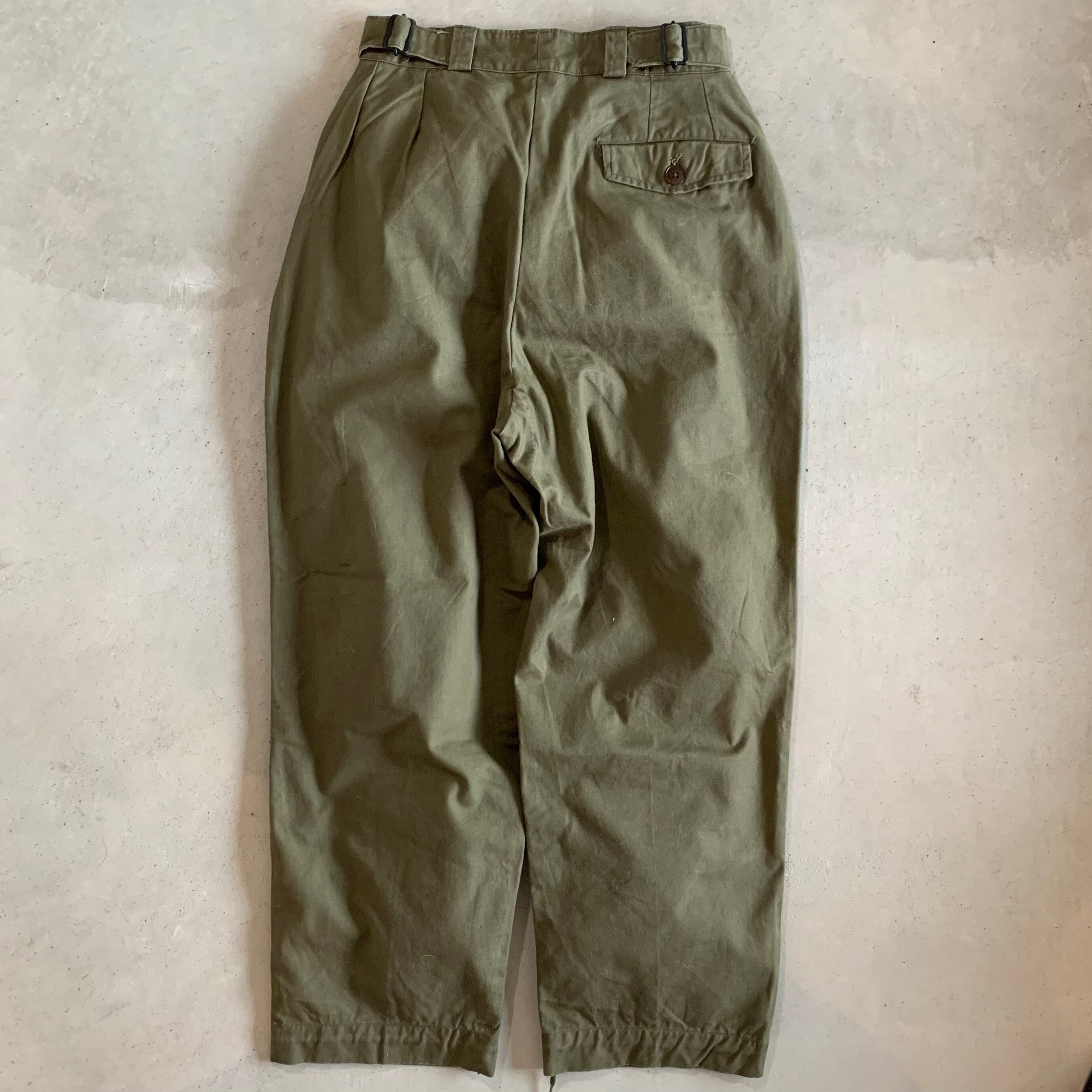 フランス軍のオーバーパンツ。イギリス軍のグルカパンツに似た人気のデザインです。ウエストにタックが入るので、ふわりとしたシルエットが楽しめます。後ろのアジャスターでサイズ調整可能です。サイズ的に女性にもおすすめな一枚です。