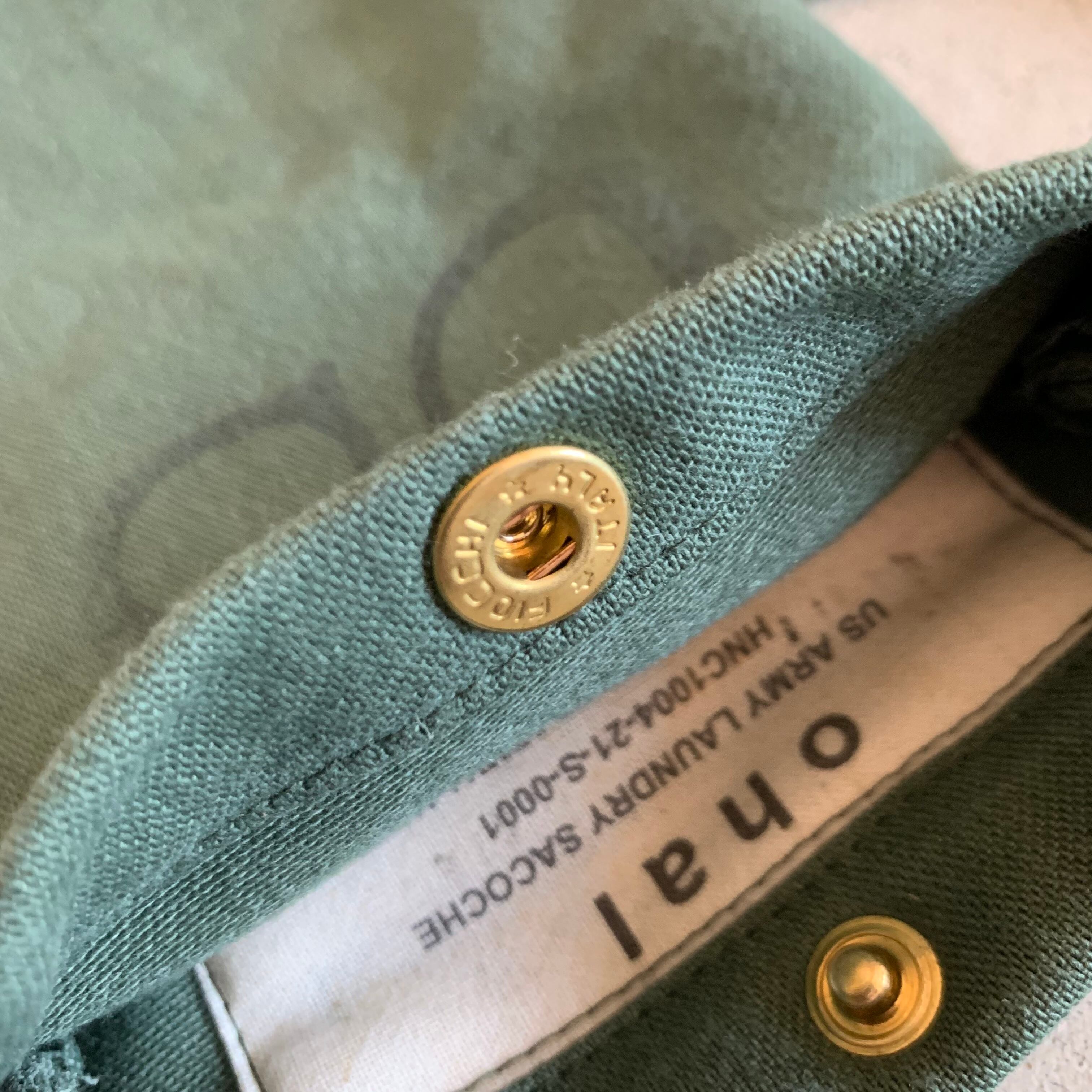 USロゴが入る部分は、必然的に数が少なくなります。ドローコードも米軍で使われていた物を使用しております。スナップボタンはフィオッキ。イタリア系の高級ブランドが好んで使用していたボタンですが、今は生産されておらず、貴重なデッドストックの物を使用しております。