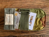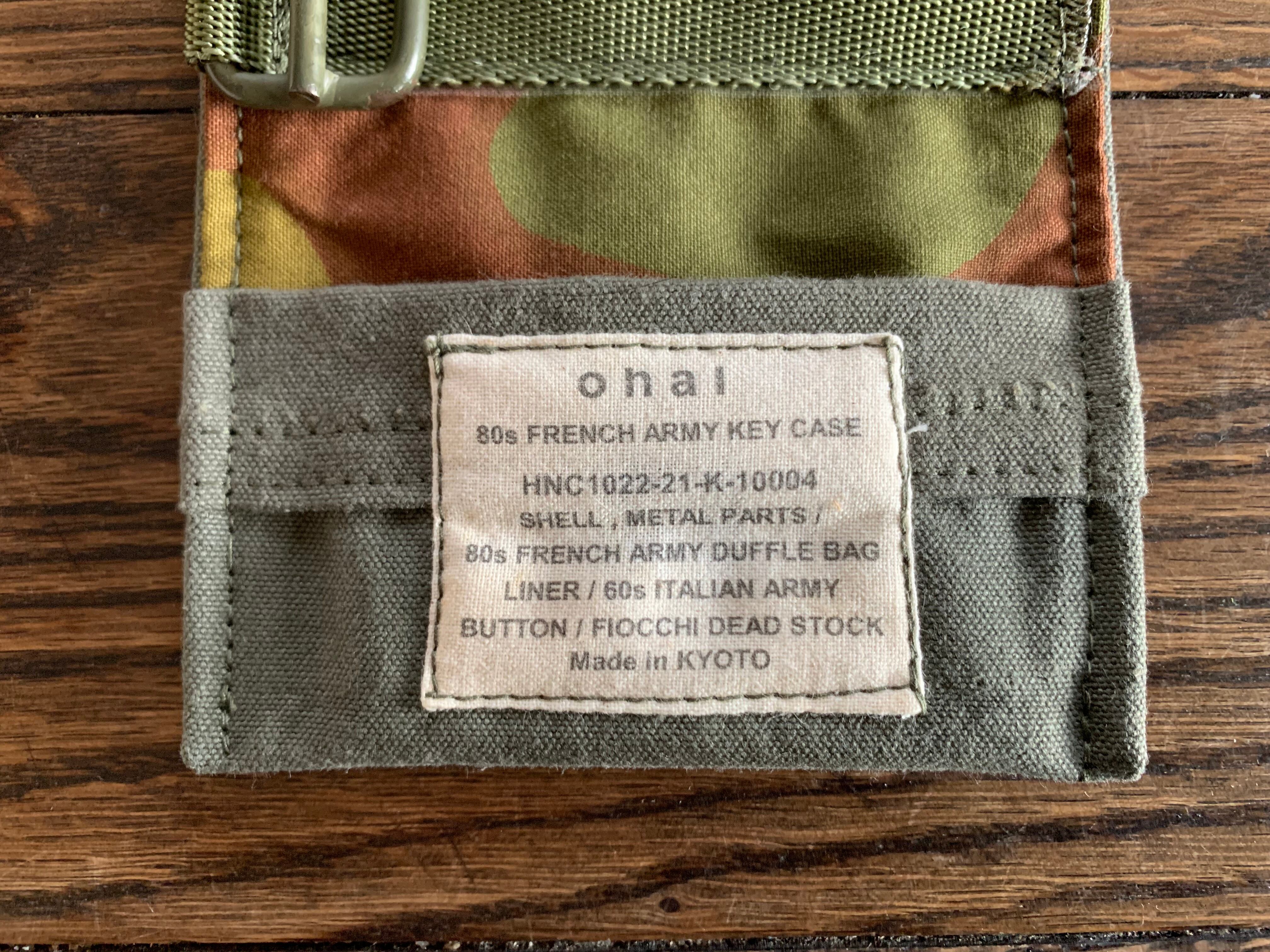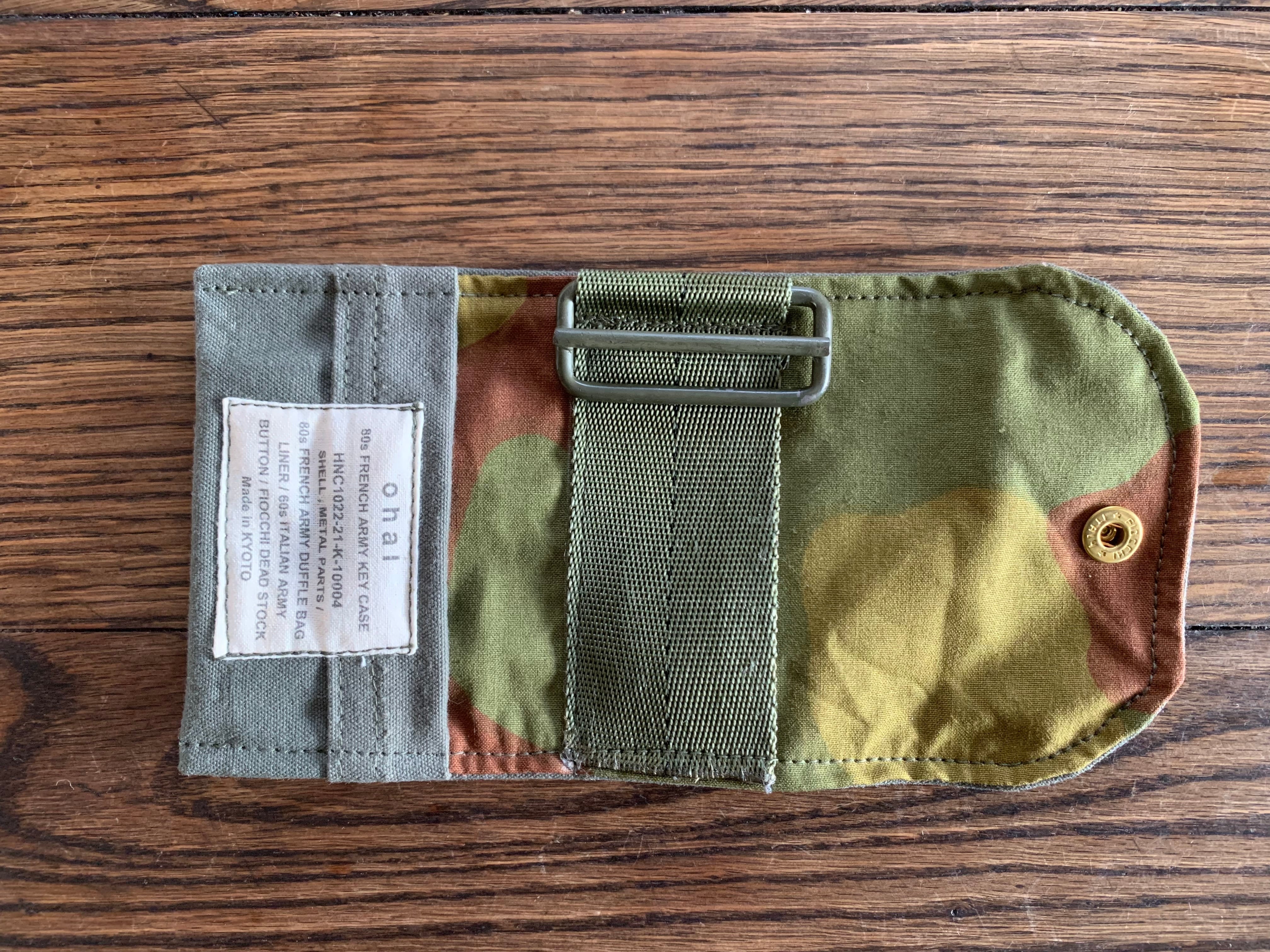 表地は80年代フランス軍のダッフルバッグの生地を使用、フラップ部分に納入された年の"1984"のステンシルが入っております。裏地は60年代イタリア軍のサンマルコカモの生地を使用しております。