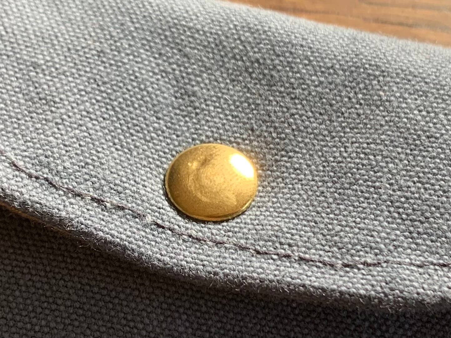 スナップボタンはフィオッキ。イタリア系の高級ブランドが好んで使用していたボタンですが、今は生産されておらず、貴重なデッドストックの物を使用しております。スナップボタンの表面に若干の凹み傷がございます。画像でご確認ください。