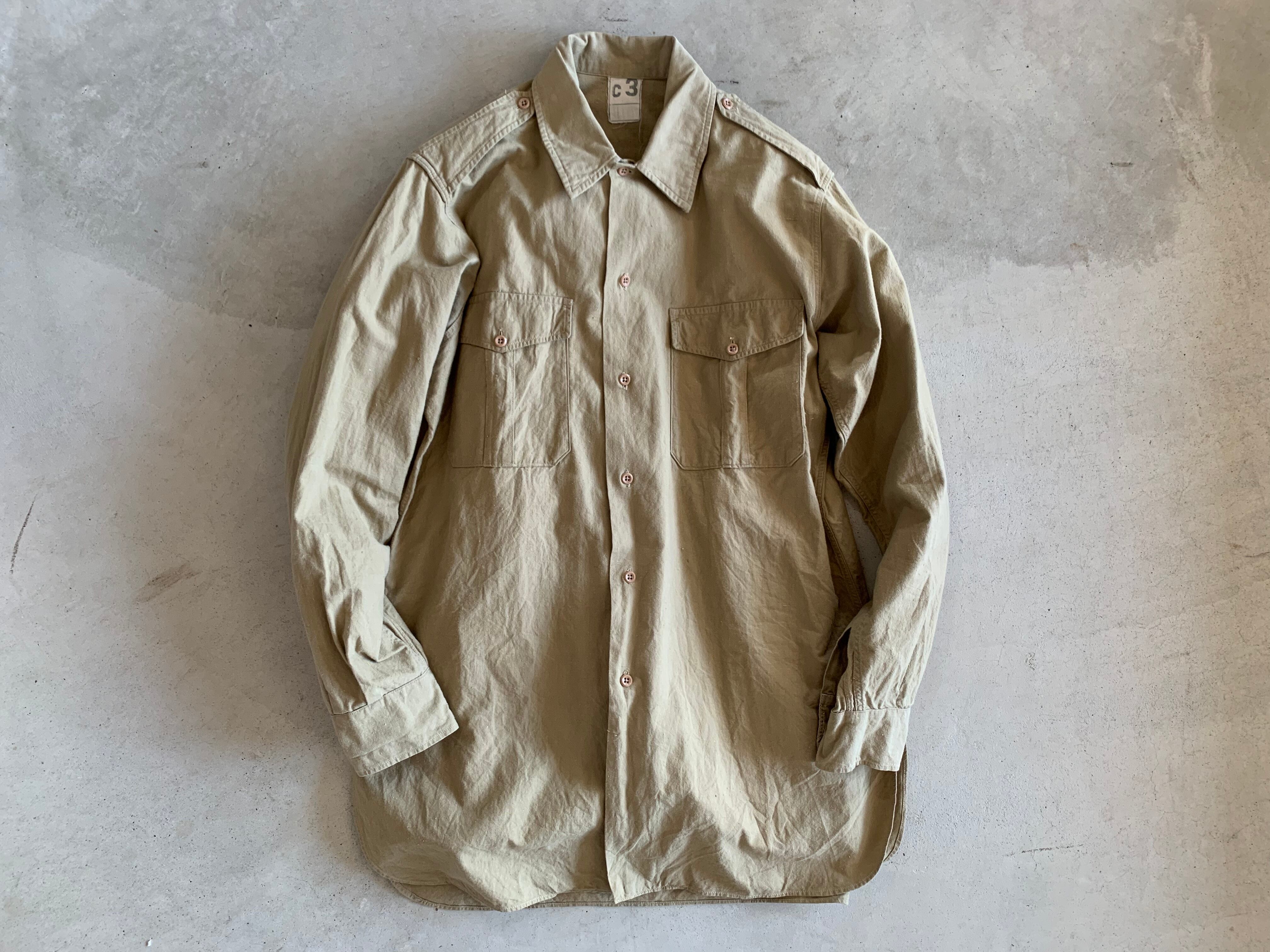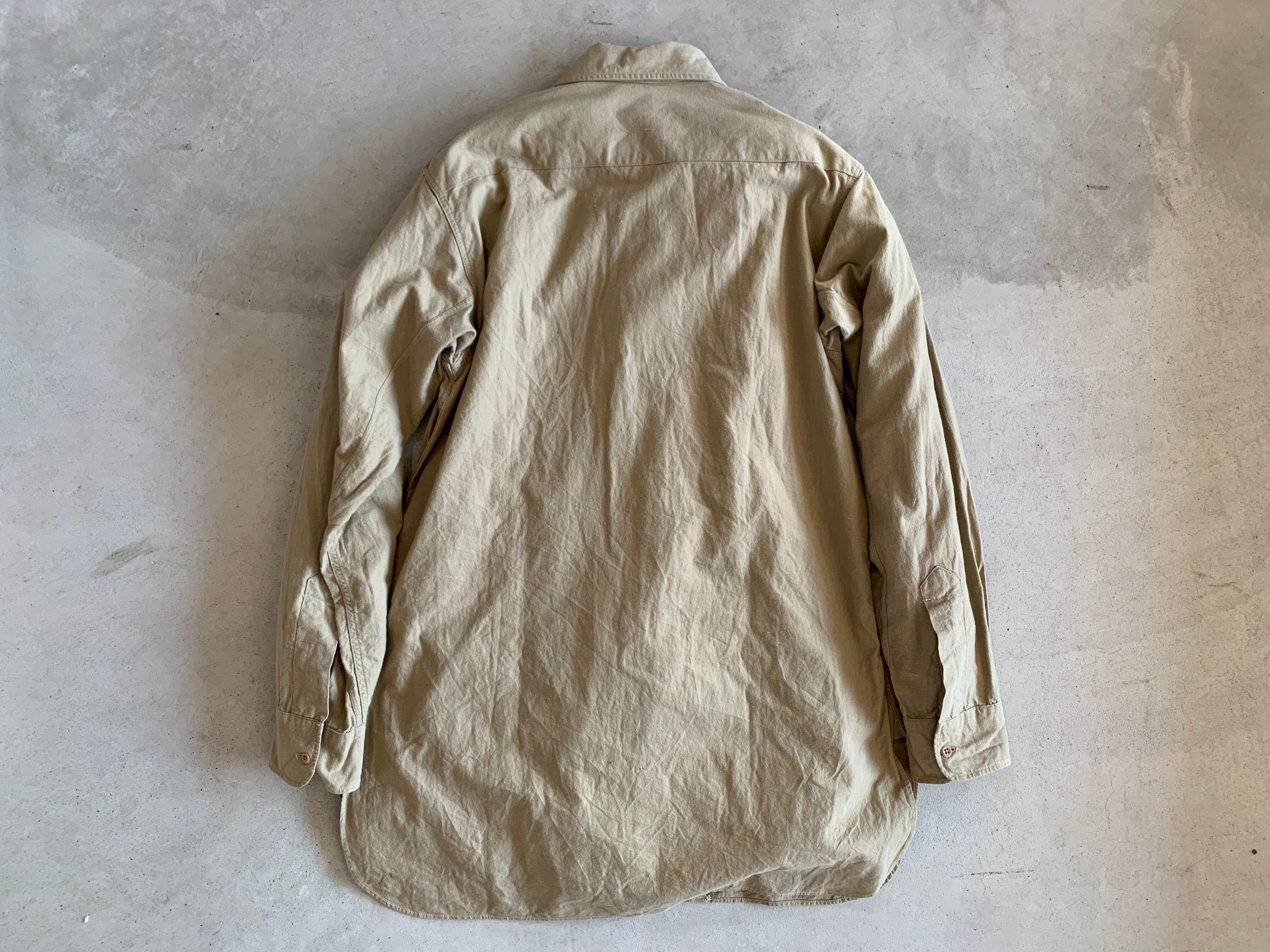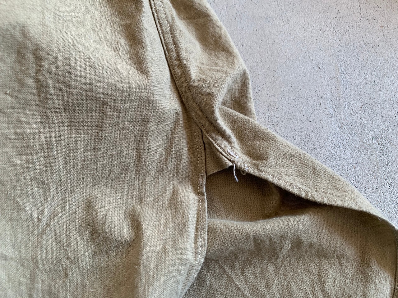 40〜50年代頃のシャツで、さすがミリタリー物と思わせる作り。サイドはダブルステッチ、裏側はチェーンステッチで頑丈に縫われており、この年代の特徴として見られる、マチがついてるのもうれしいところ!