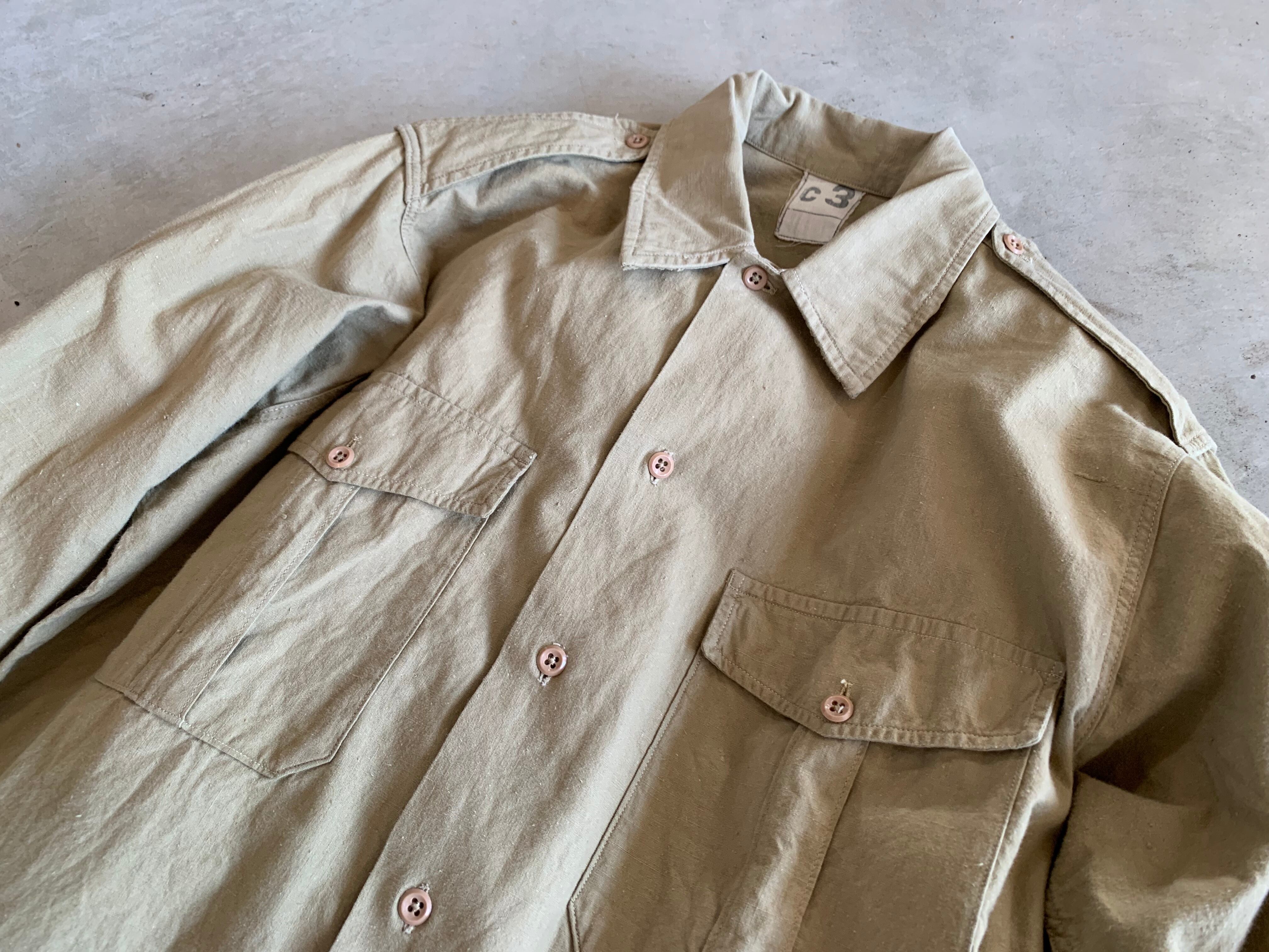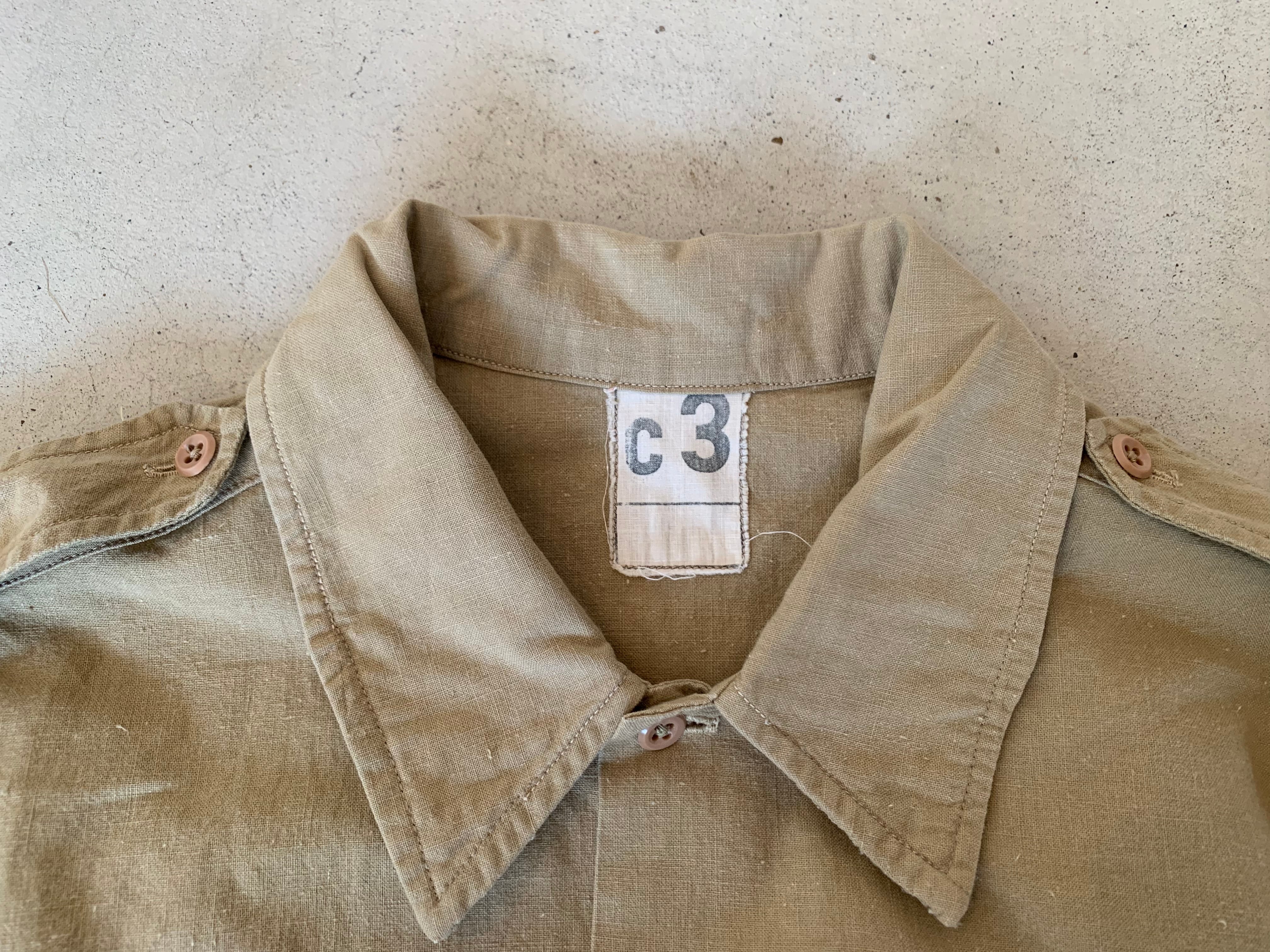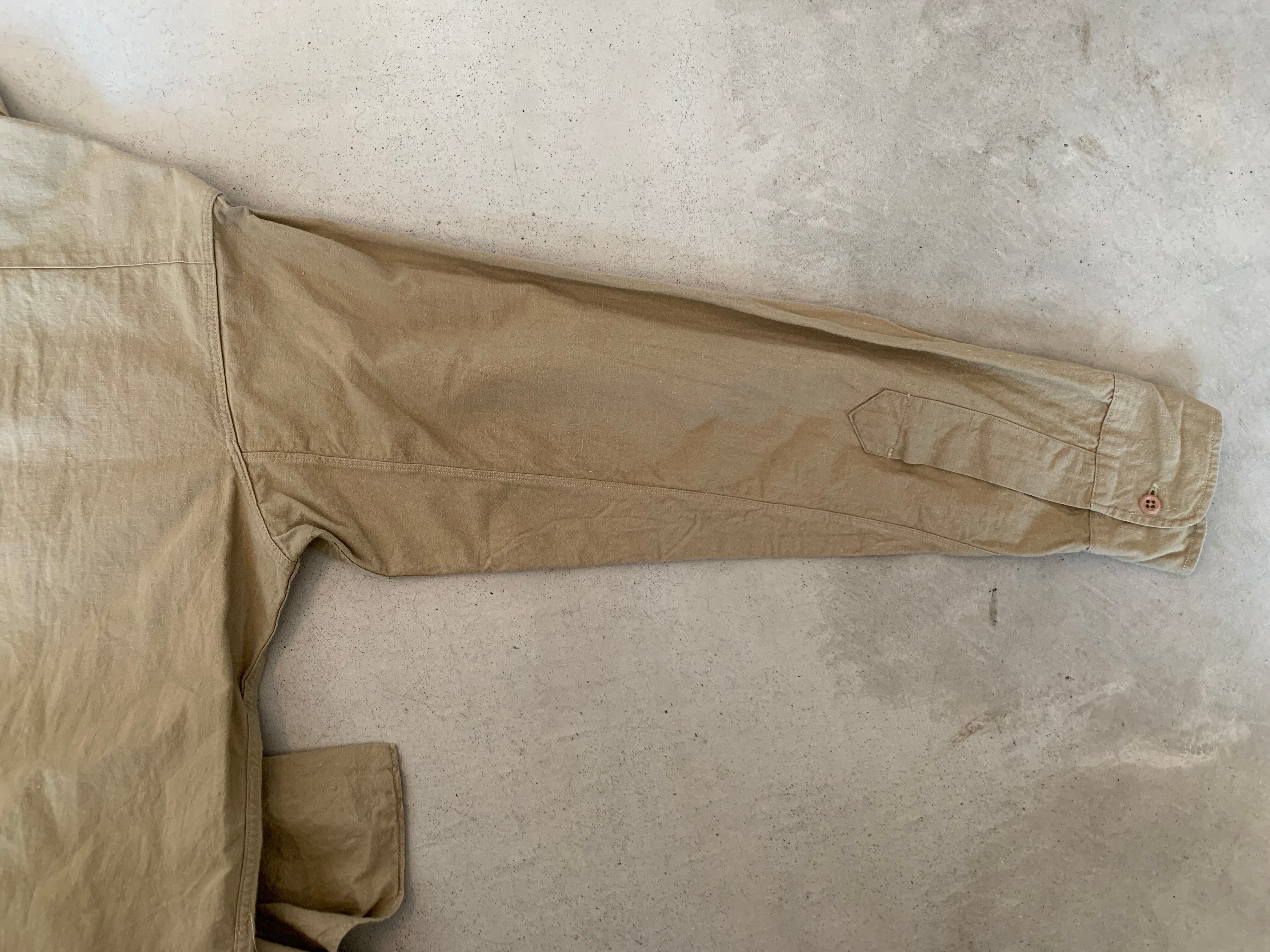 40〜50年代頃のシャツで、さすがミリタリー物と思わせる作り。サイドはダブルステッチ、裏側はチェーンステッチで頑丈に縫われており、この年代の特徴として見られる、マチがついてるのもうれしいところ!